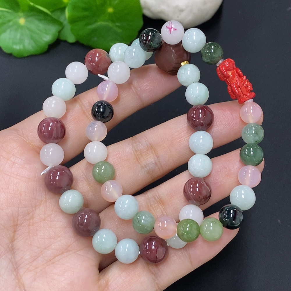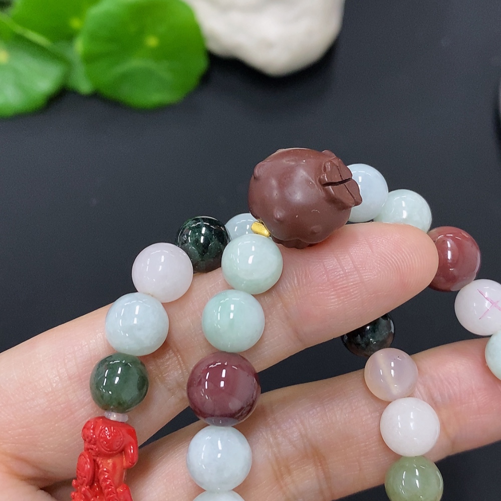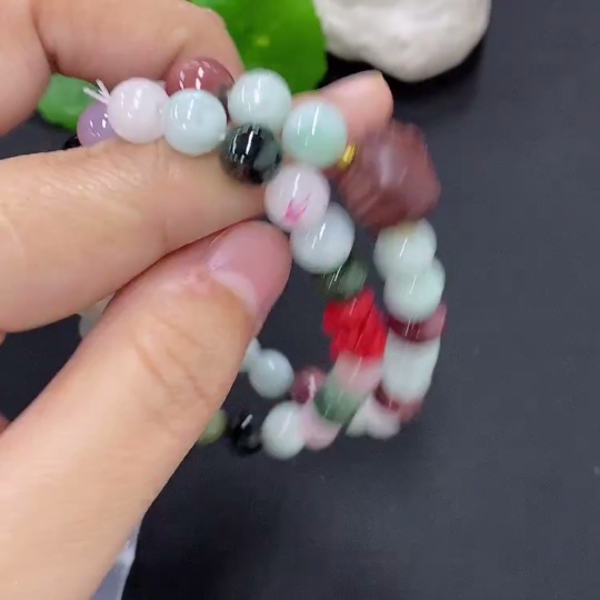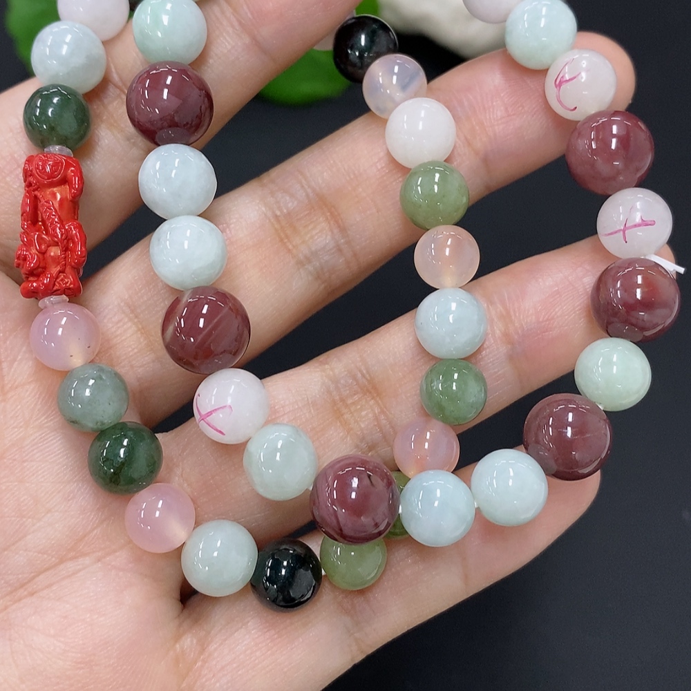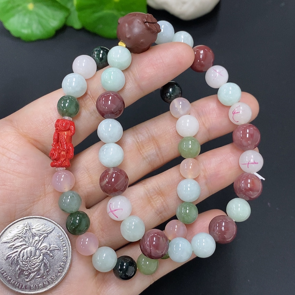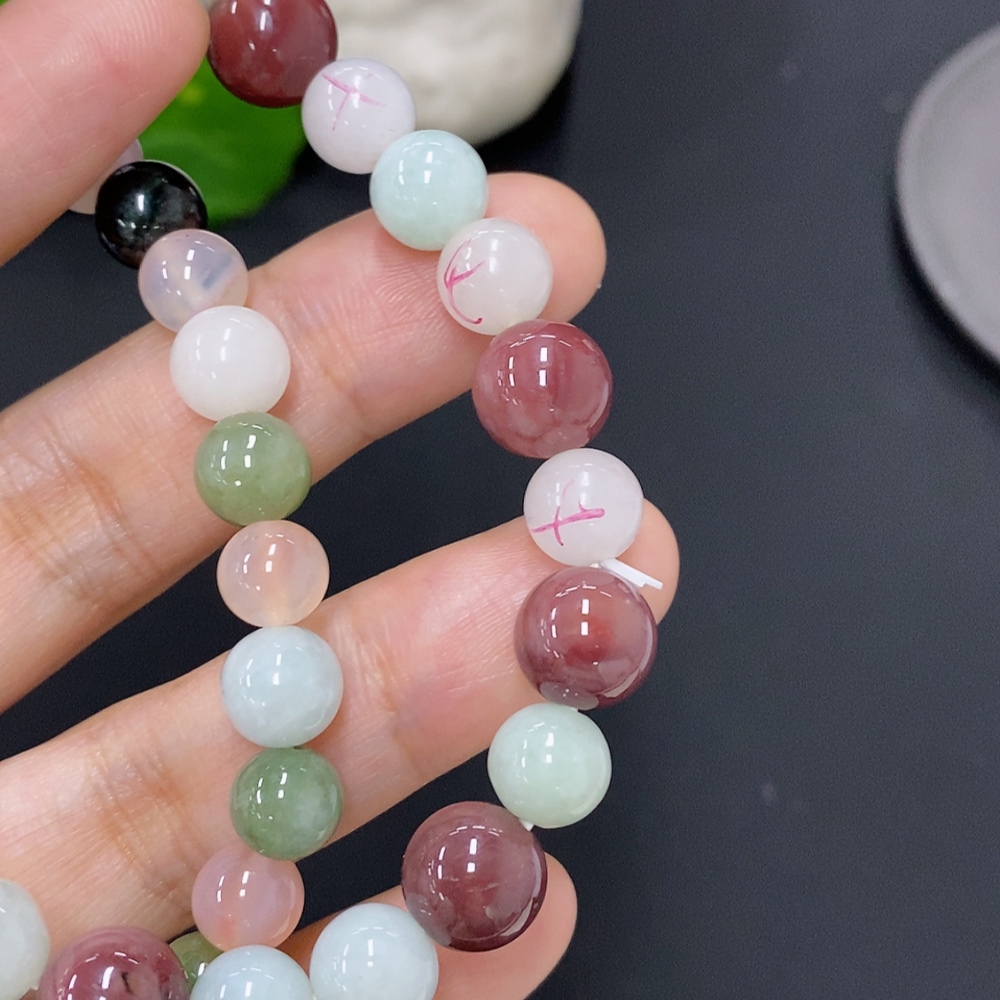 Jadeite Beads Sell as a Lot Total Weight Approx.46.9g (Non-Grade A with Accessory Stones) (Mixed Stones)