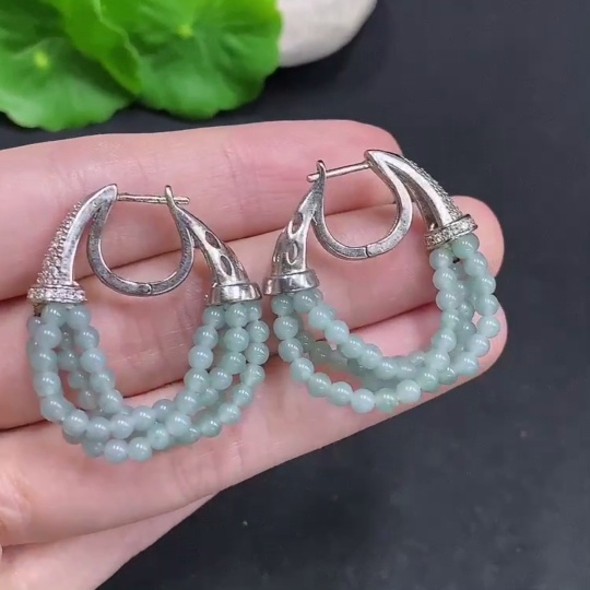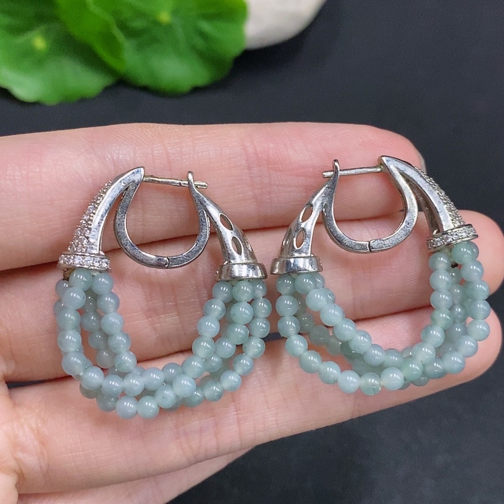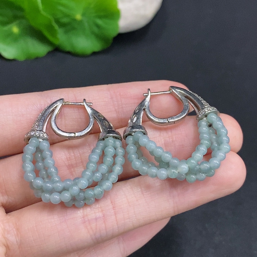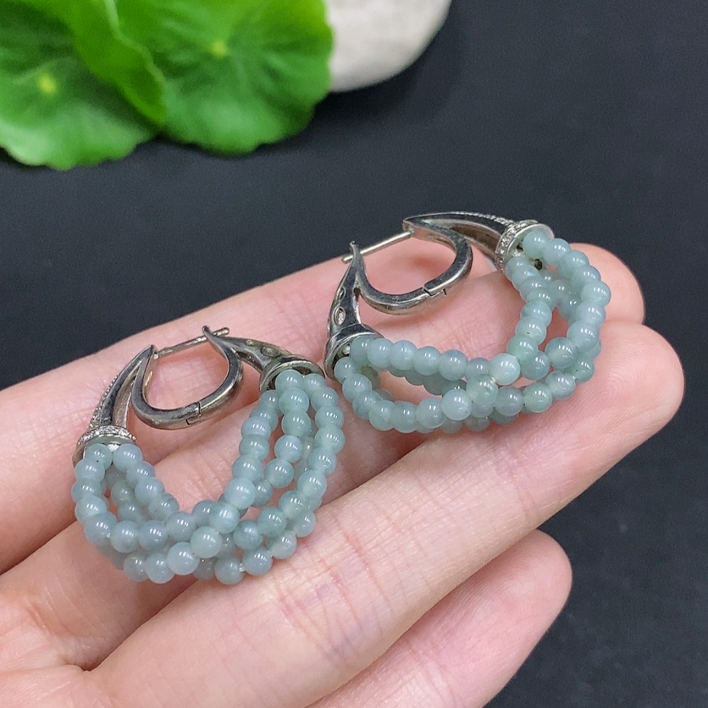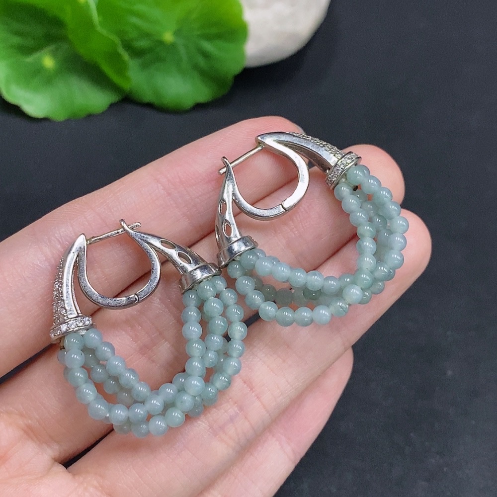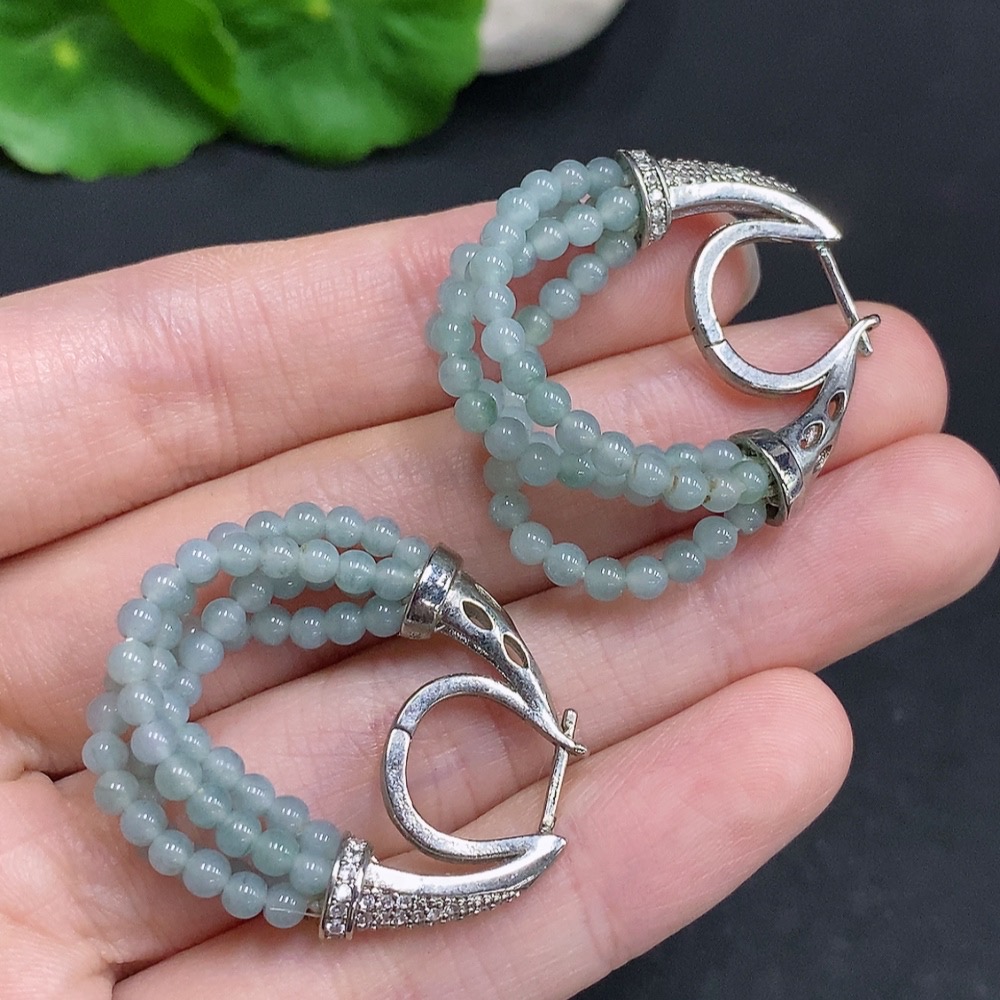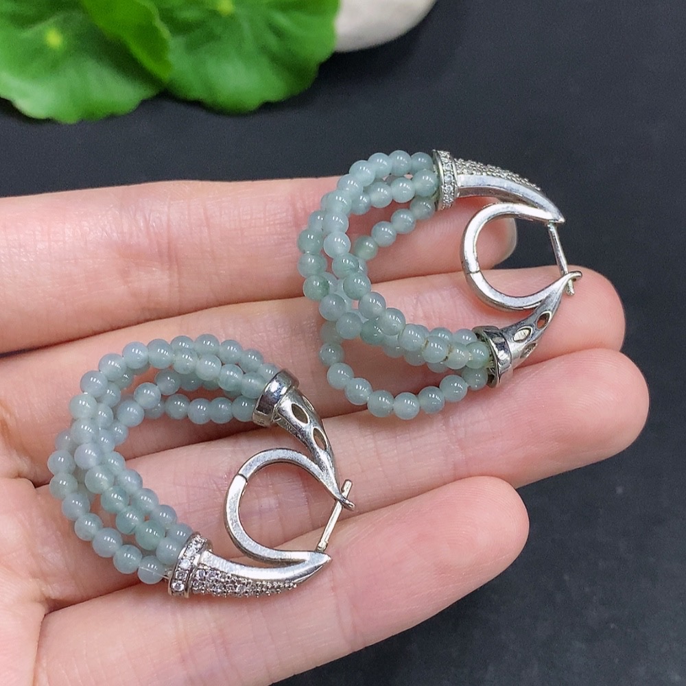 Jadeite Single Bead Inlaid Earrings Non-Gold Inlaid Total Weight Approx. 10.2g