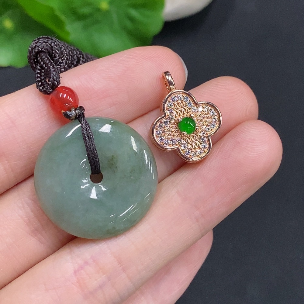 Jadeite Safety Buckle + Cabochon Inlay Pendant Sell as a Lot Non-Gold Inlay