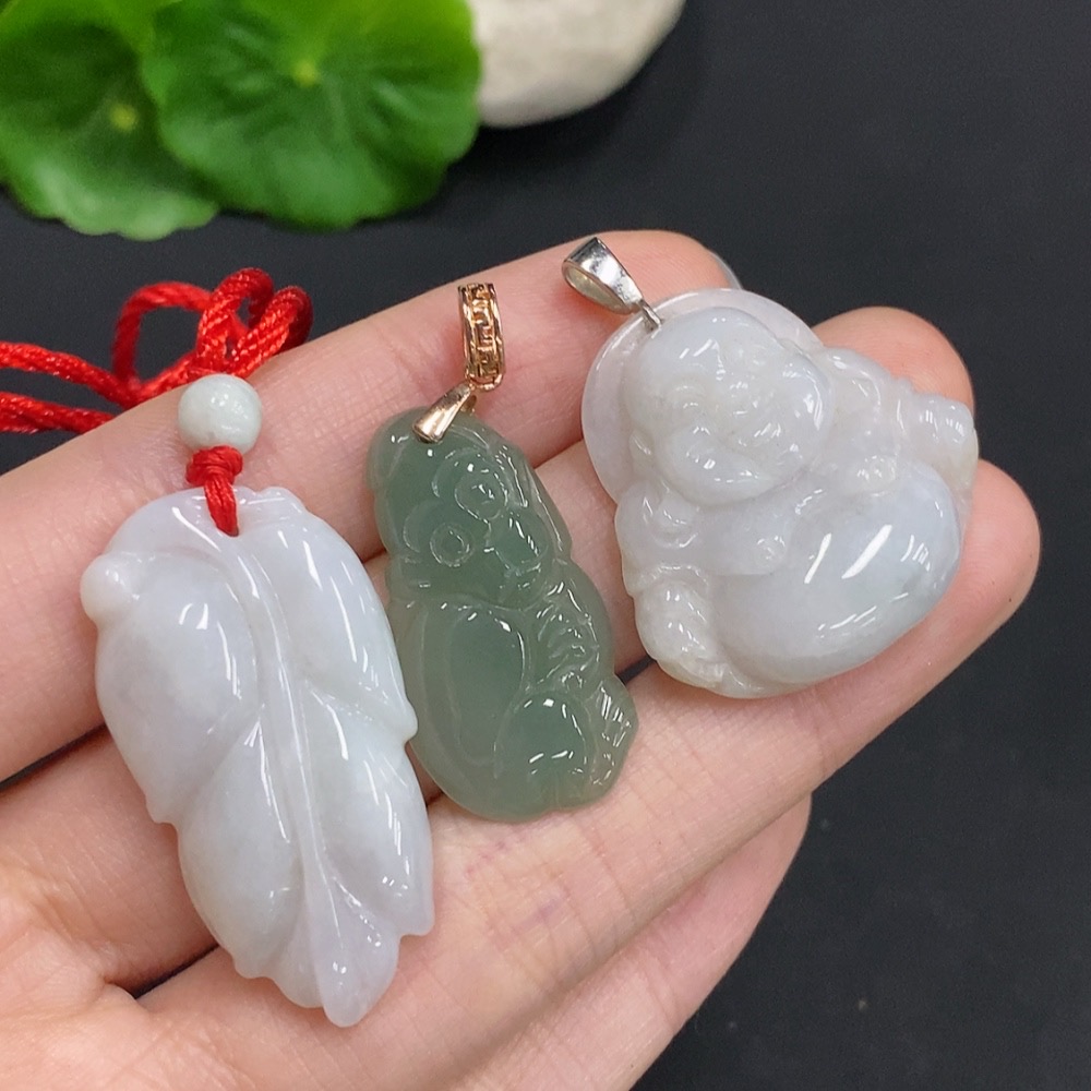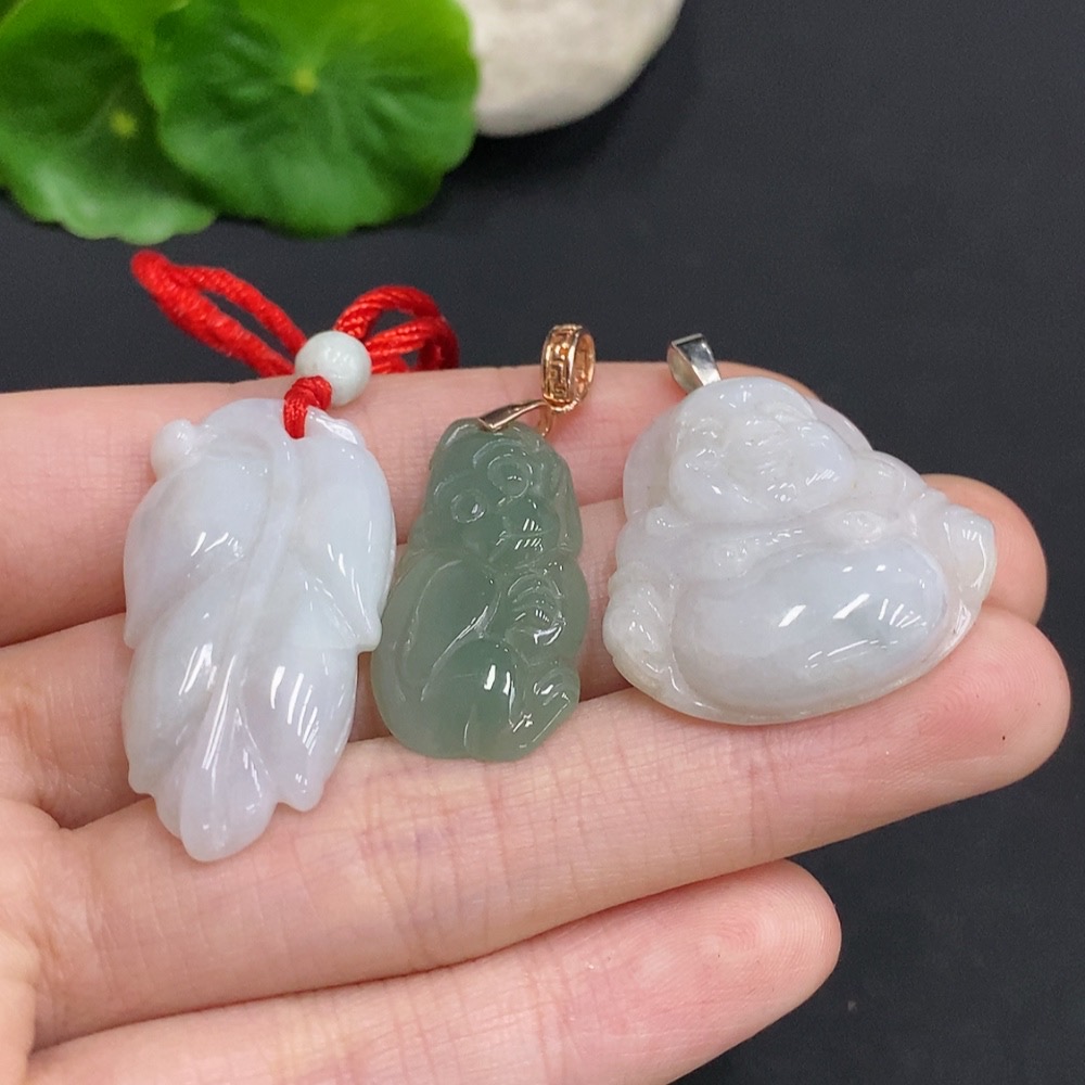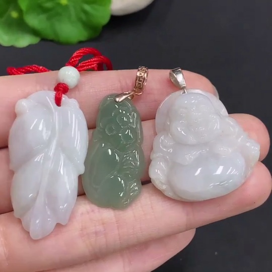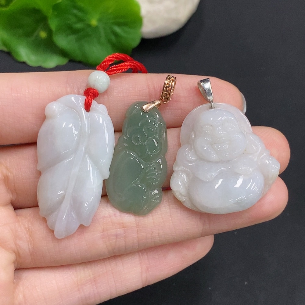 Jadeite Pendants Sell as a Lot Non-Gold Inlaid