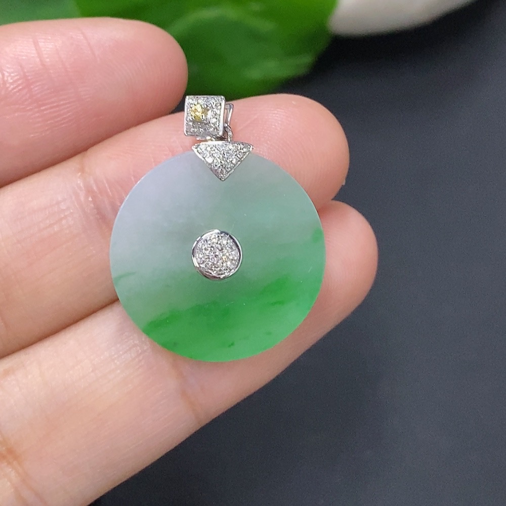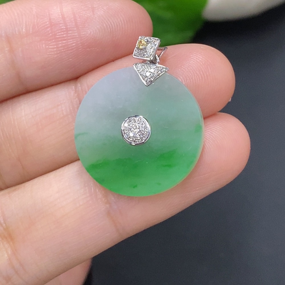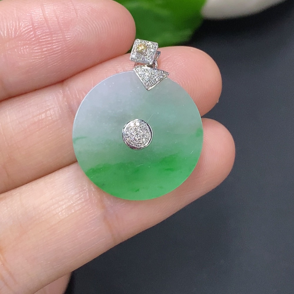 Jadeite Pendant Clasp 18k with Diamond Accents Colorless Total Weight Approx. 3.2g