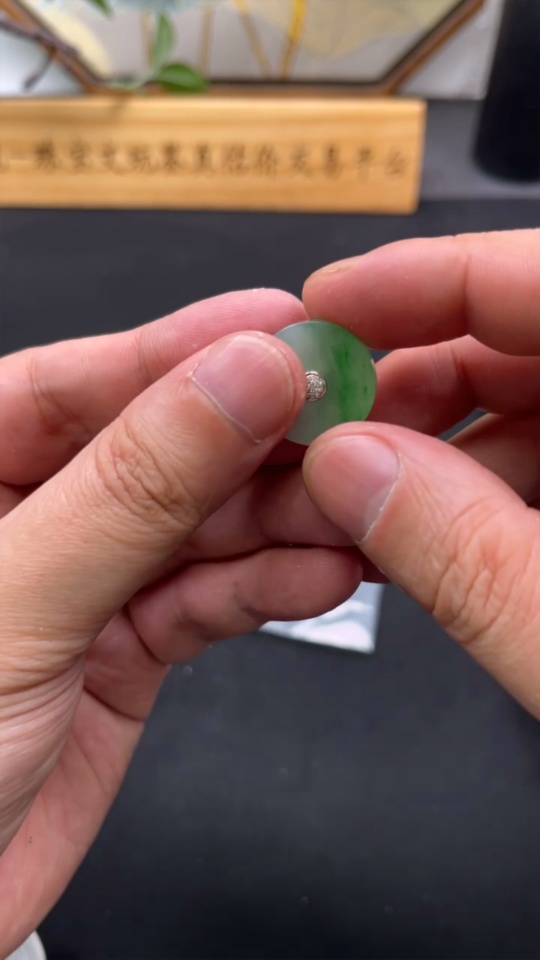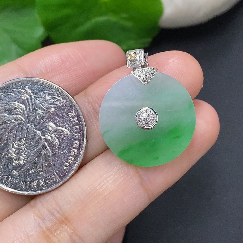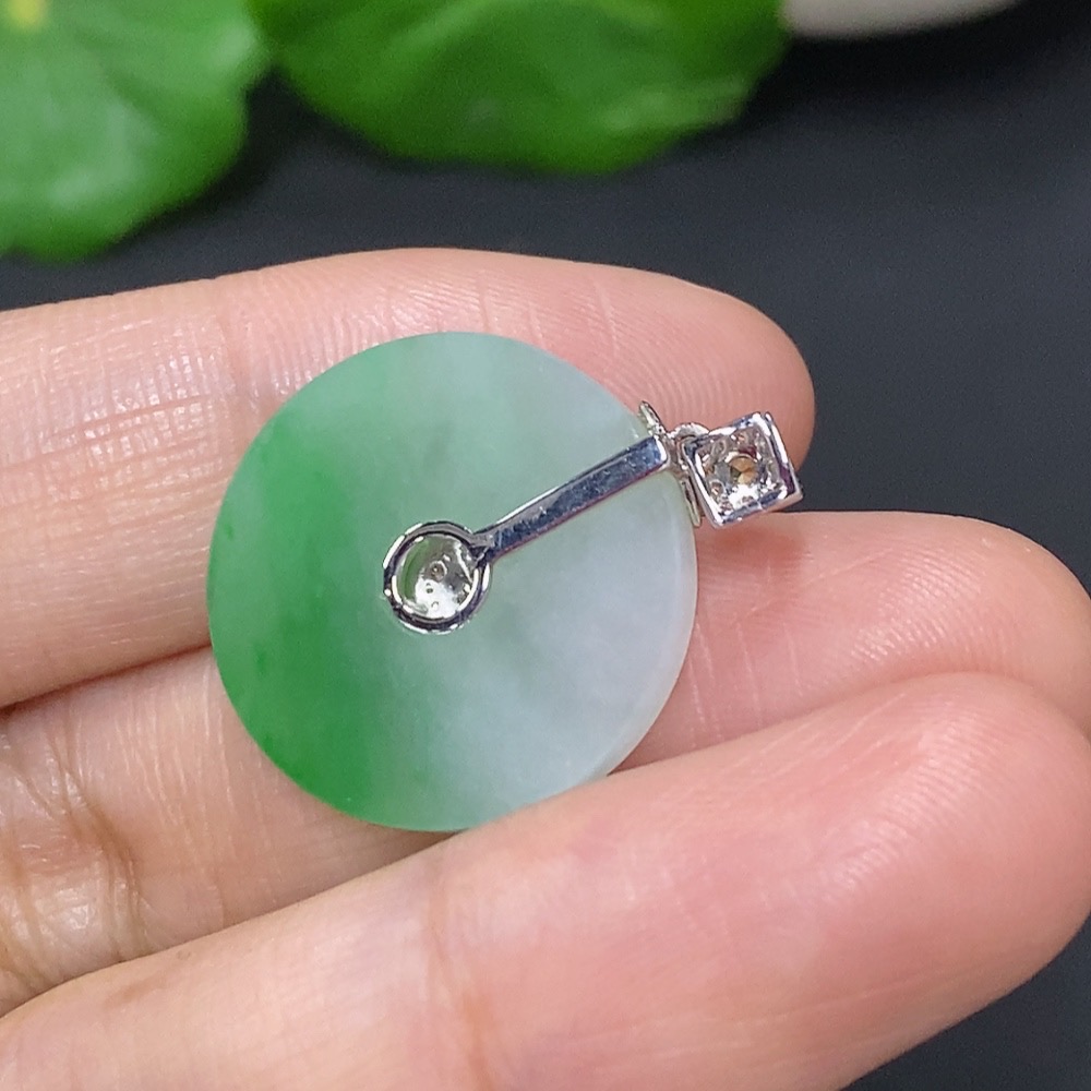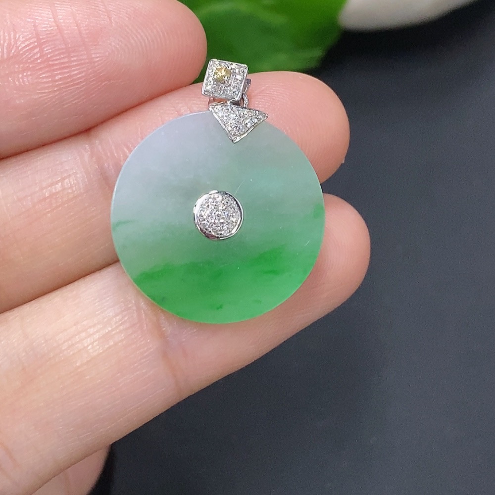 Jadeite Pendant Clasp 18k with Diamond Accents Colorless Total Weight Approx. 3.2g