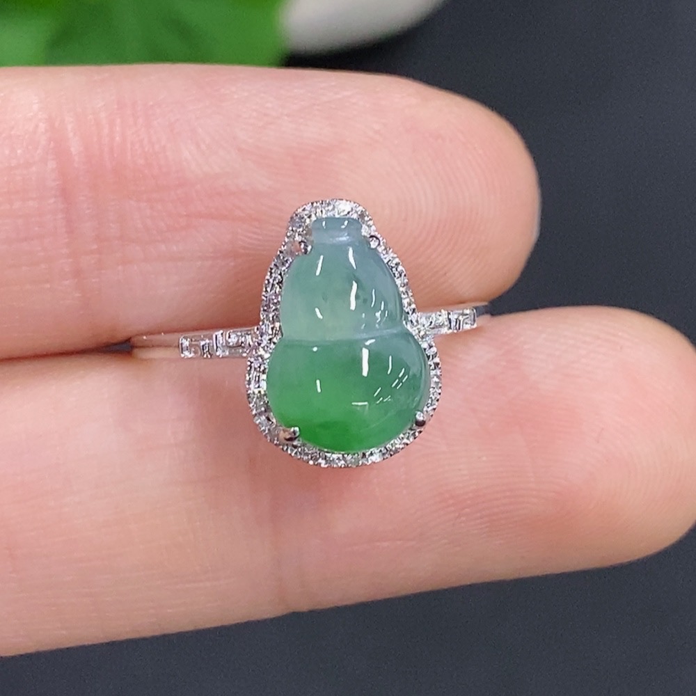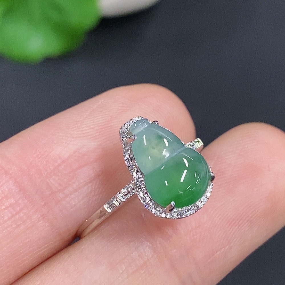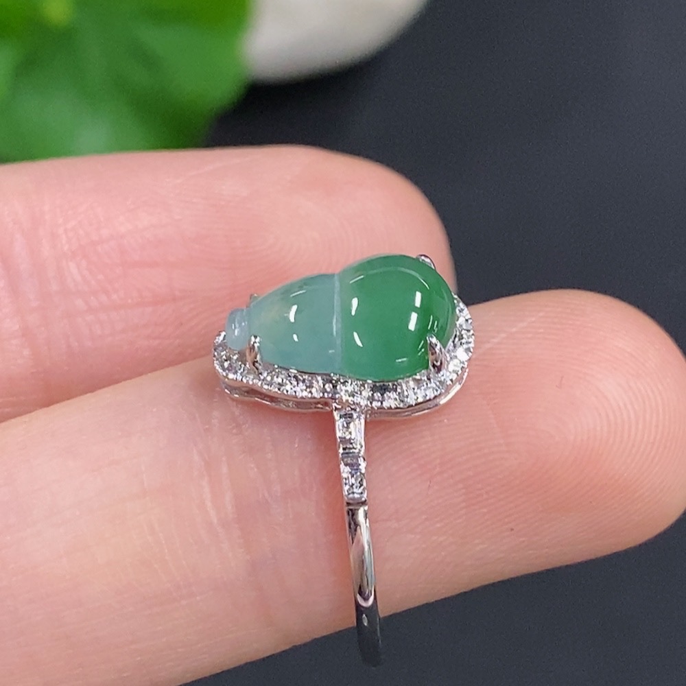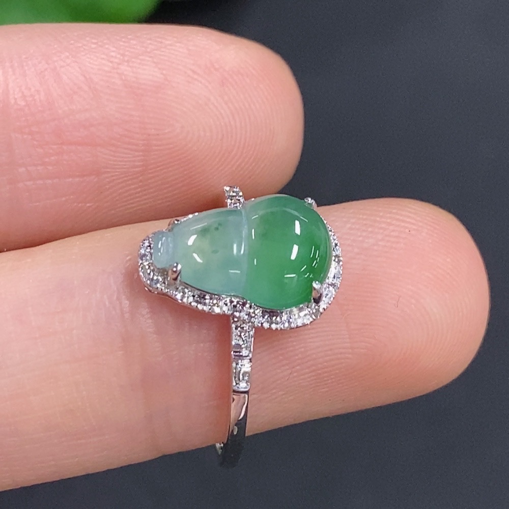 Jadeite Gourd Inlaid Ring 18k Gold Total Weight Approx. 2.09g Size 13 With Diamond Accents