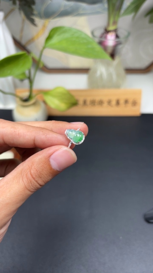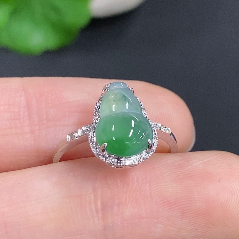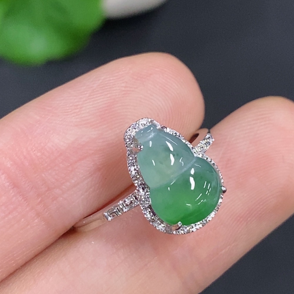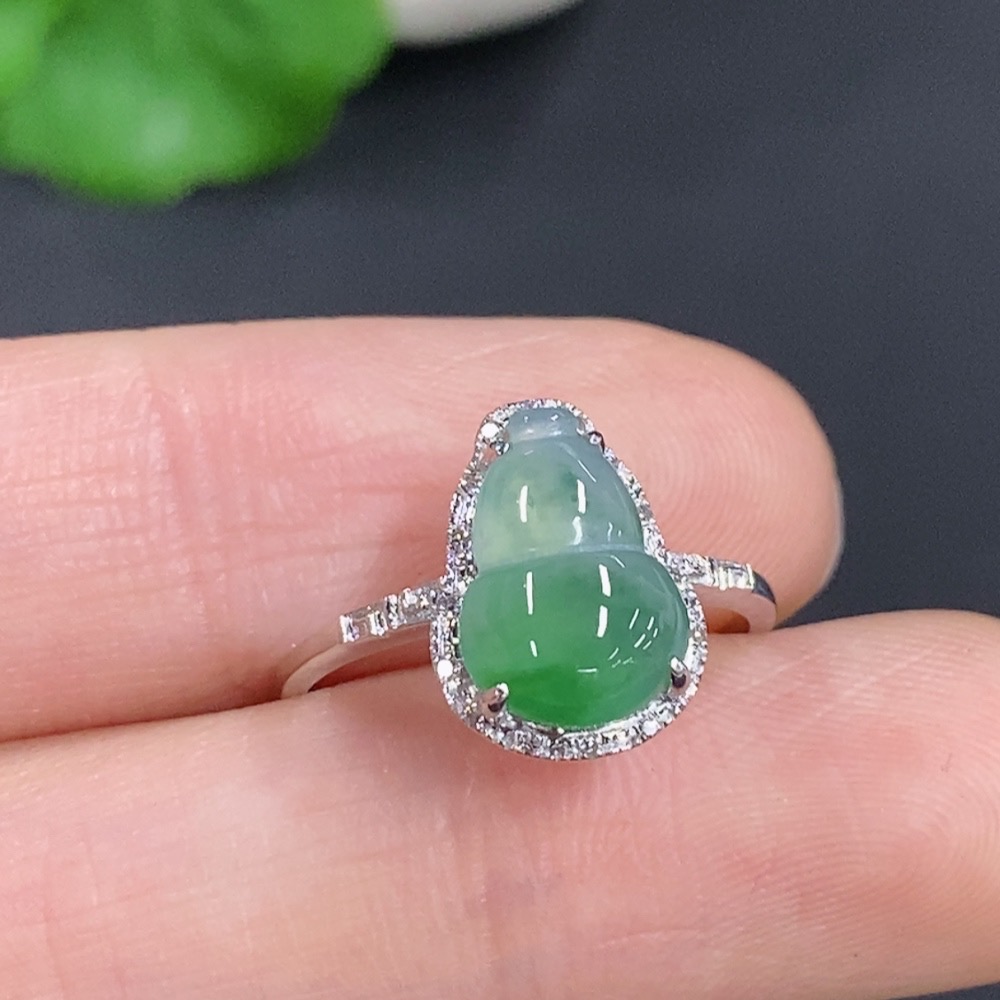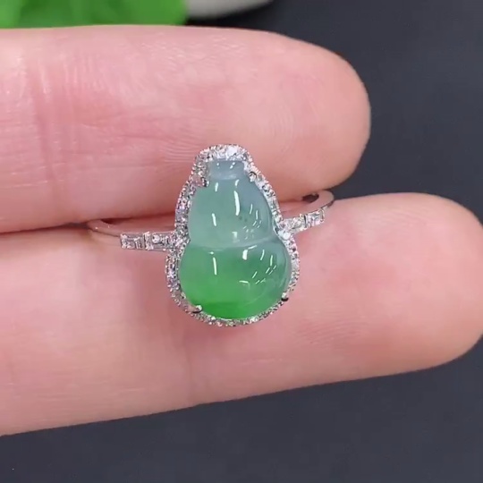 Jadeite Gourd Inlaid Ring 18k Gold Total Weight Approx. 2.09g Size 13 With Diamond Accents