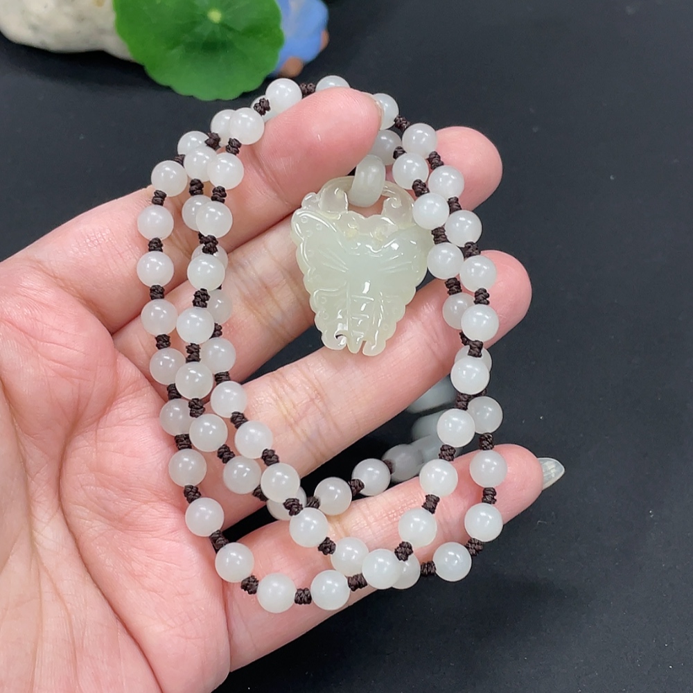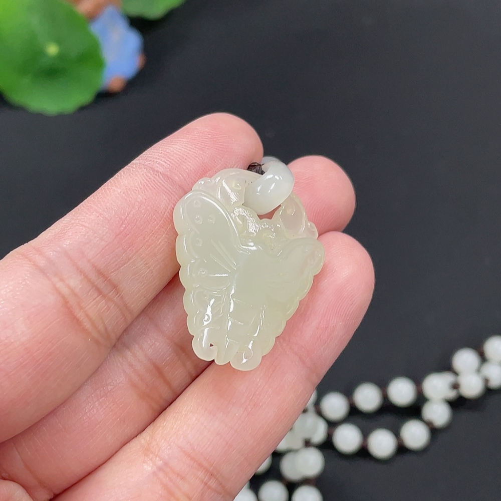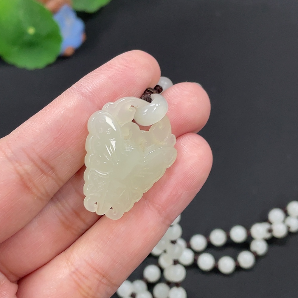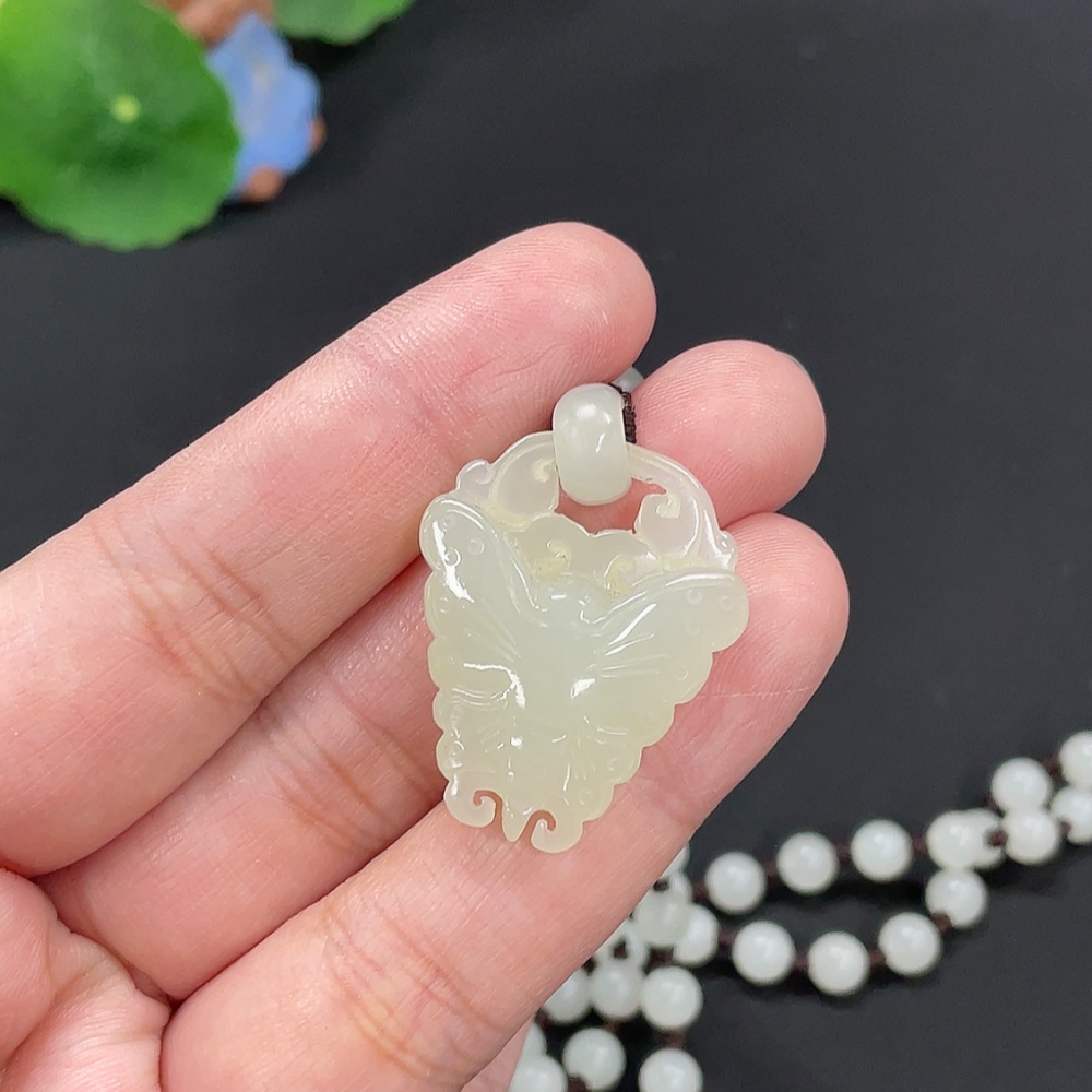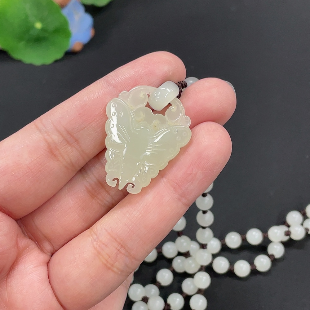 Hetian Jade Pendant Butterfly Total Weight Approx. [with chain] 32.4g