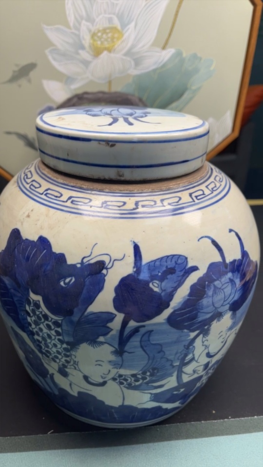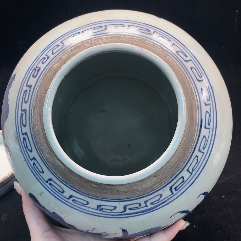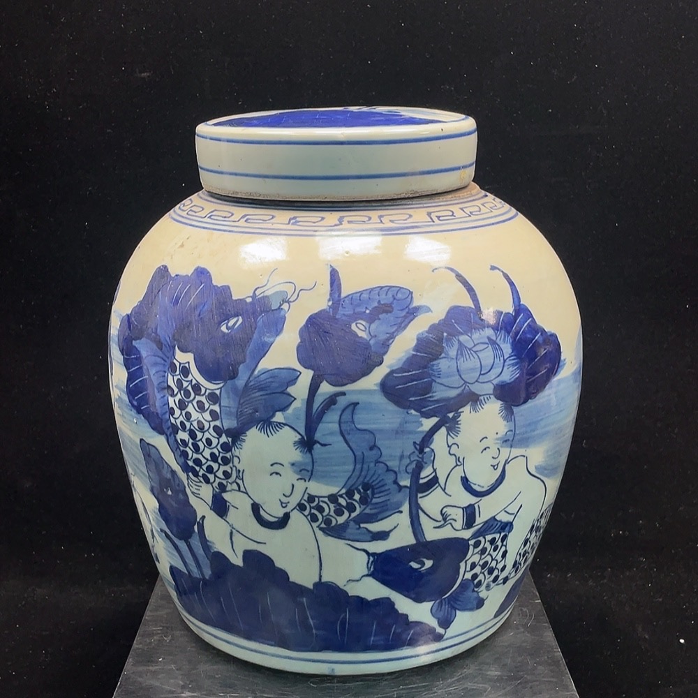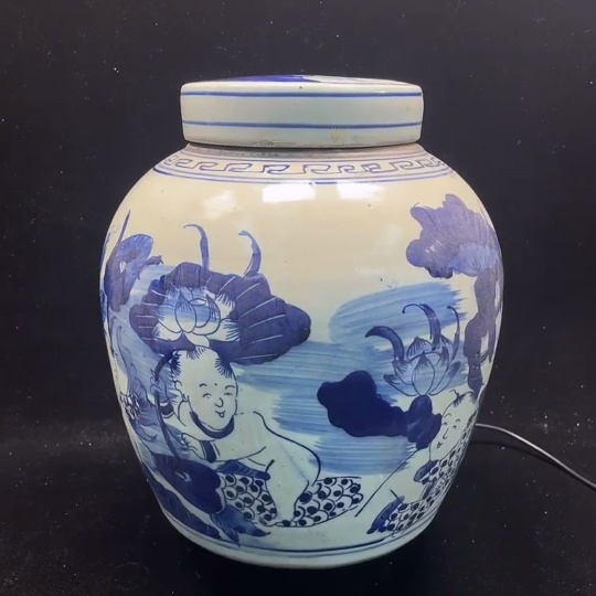 Ceramic 2-piece set, complete, modern blue-and-white jars