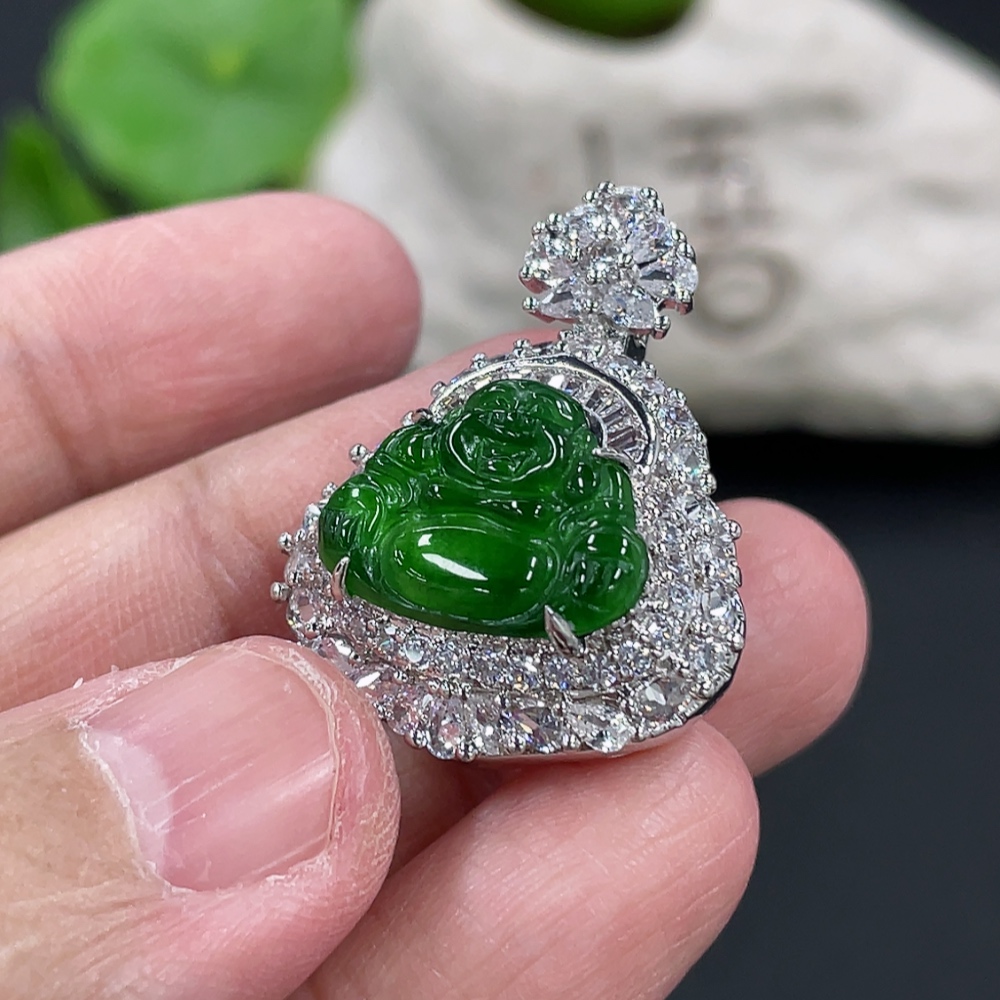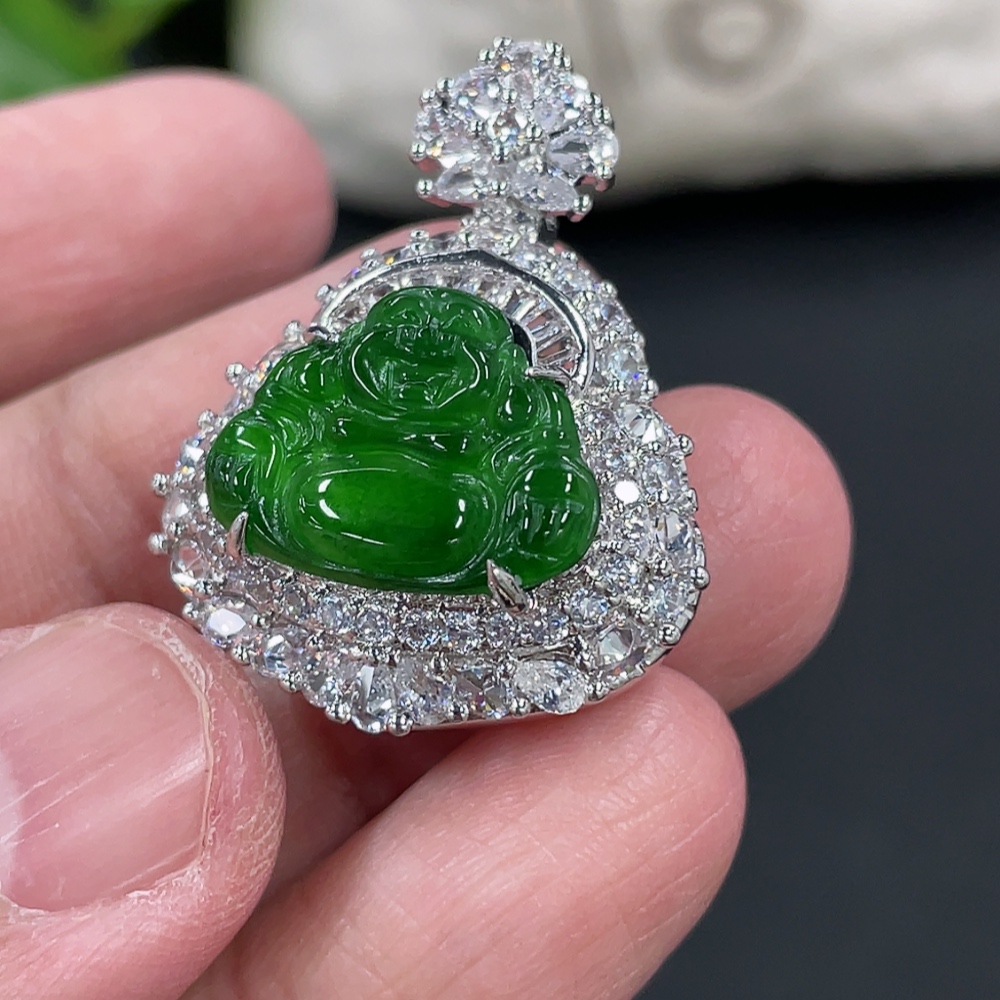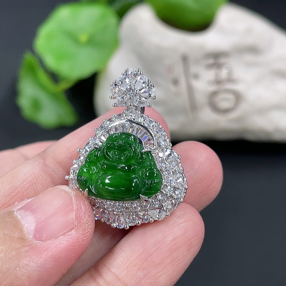 Jadeite Buddha Pendant Inlaid without Gold Total Weight Approx.13g