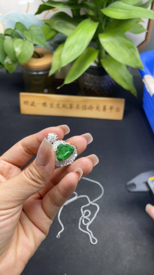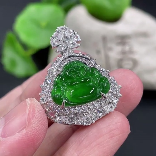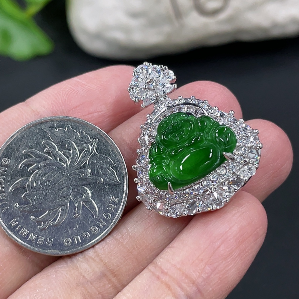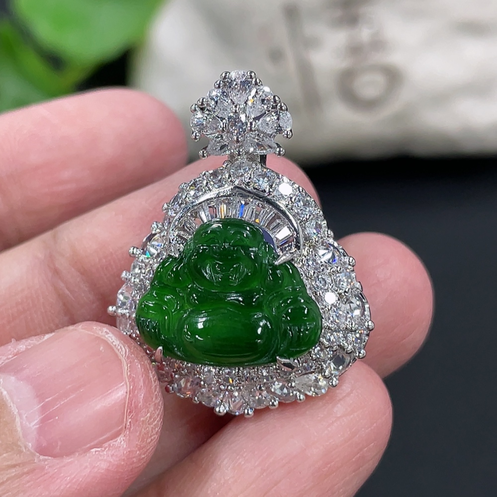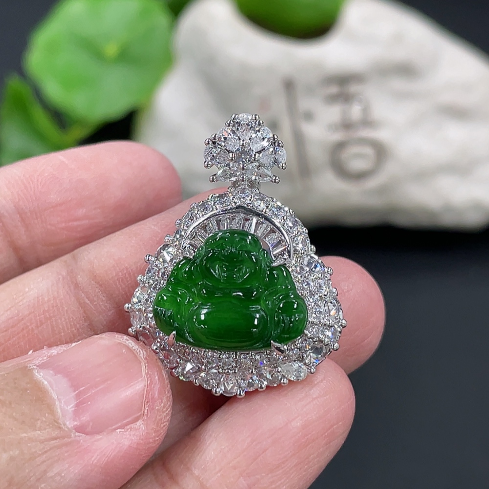 Jadeite Buddha Pendant Inlaid without Gold Total Weight Approx.13g
