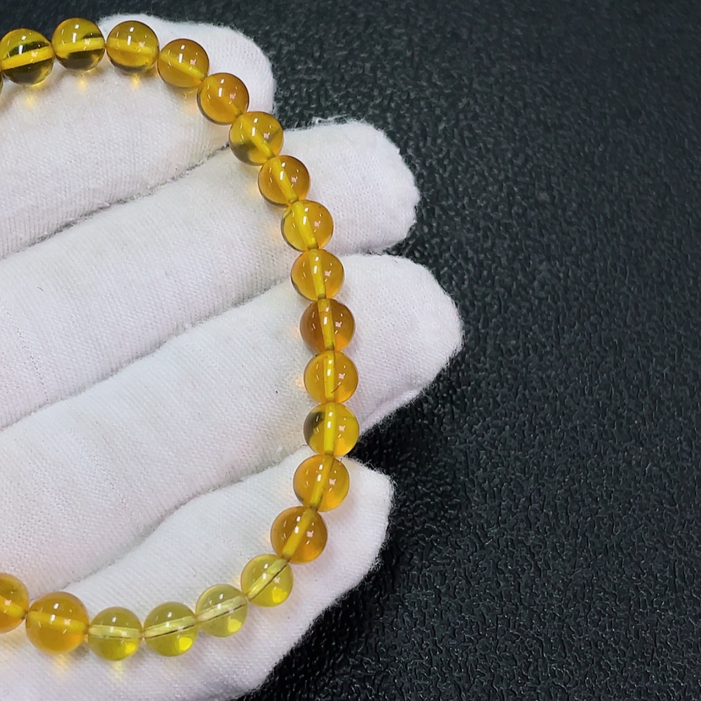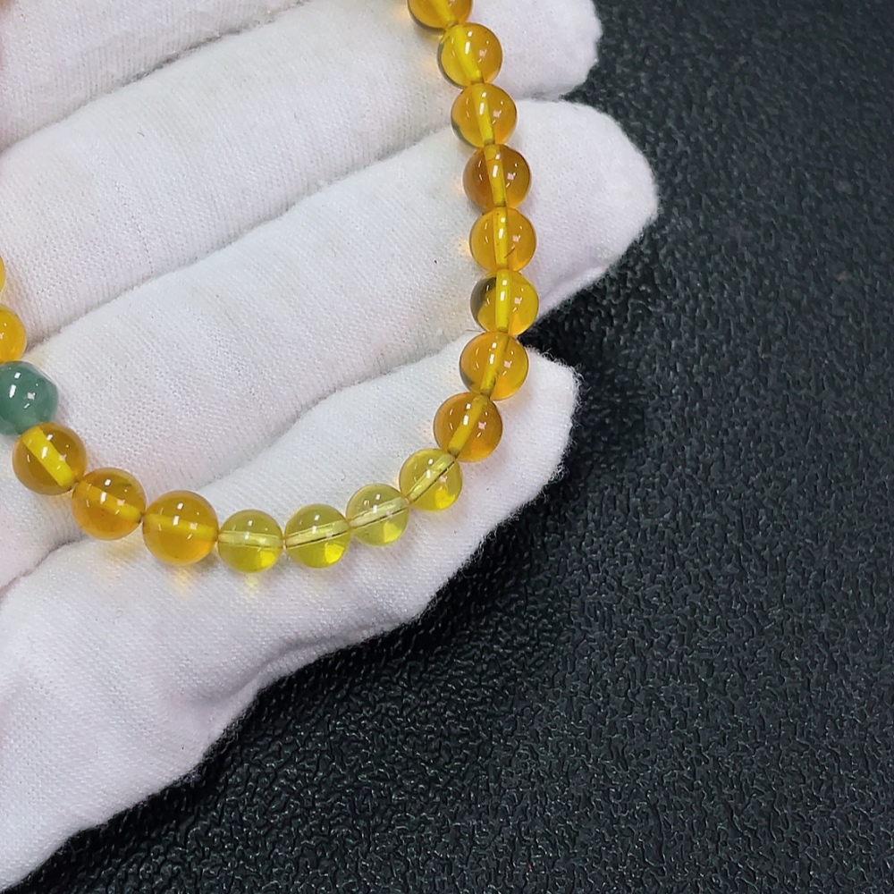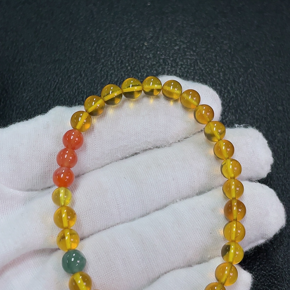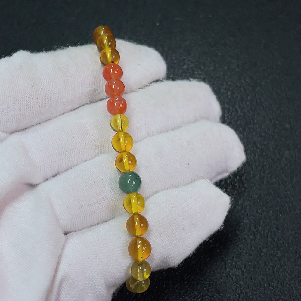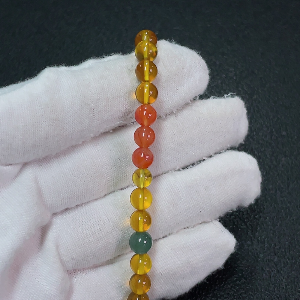 Amber Beeswax Bracelet, Total Weight Approx. 4.23g, Size 6mm, with Jadeite and Southern Red Agate
