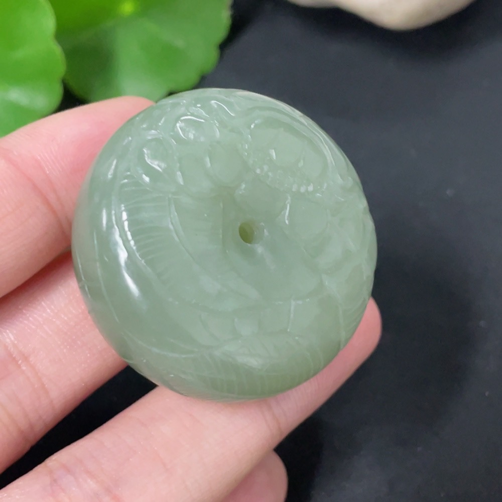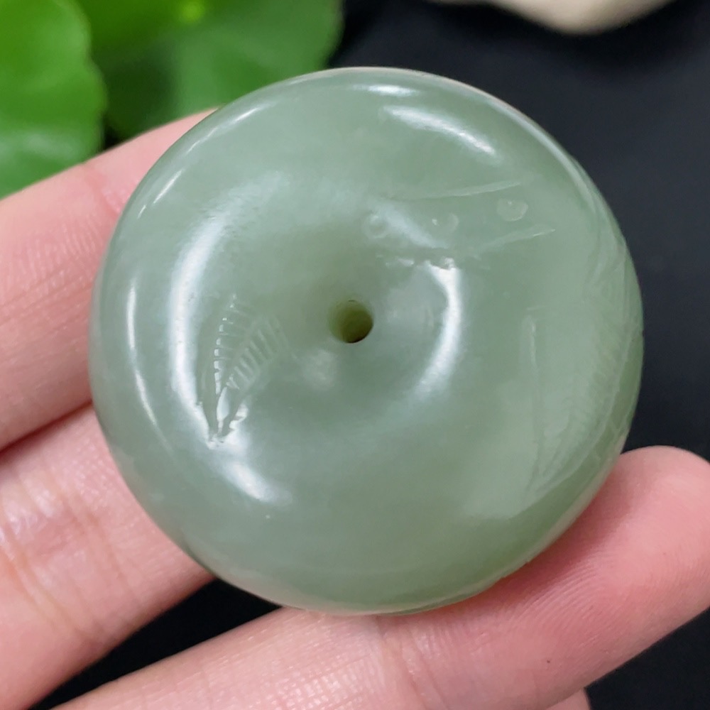 Hetian Jade Pendant Carved Flower Button Total Weight Approx. 45.8g