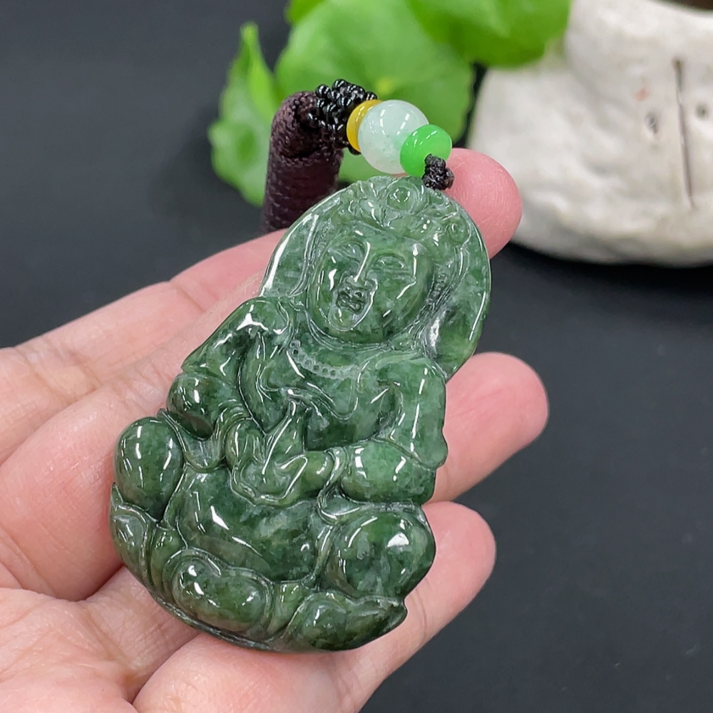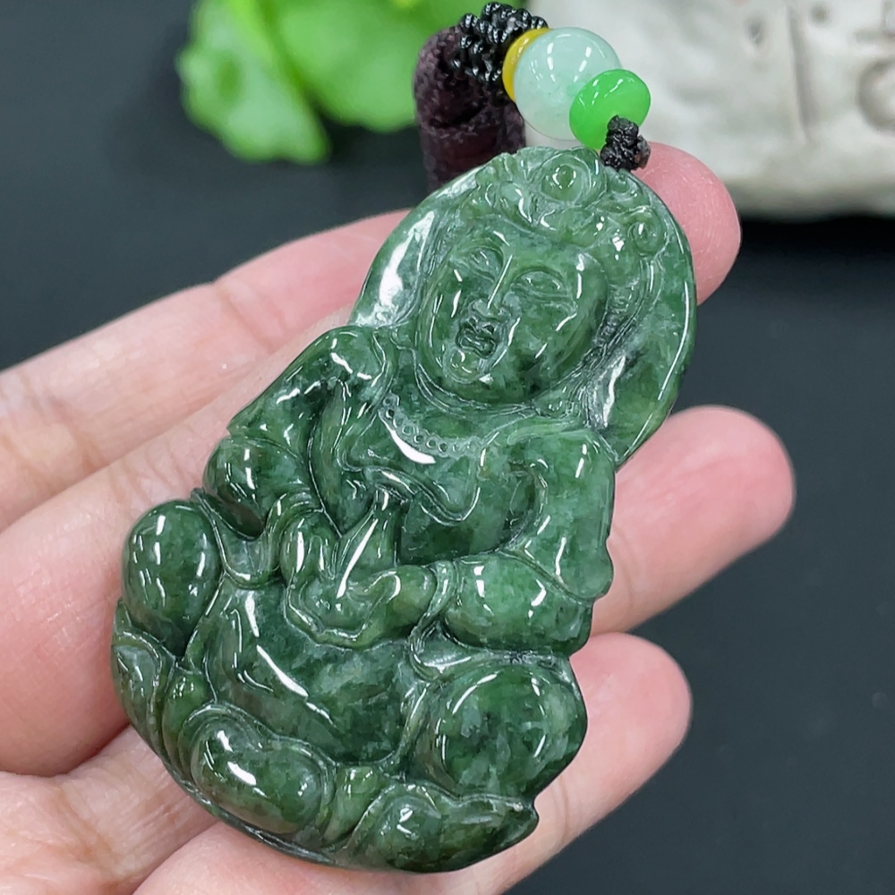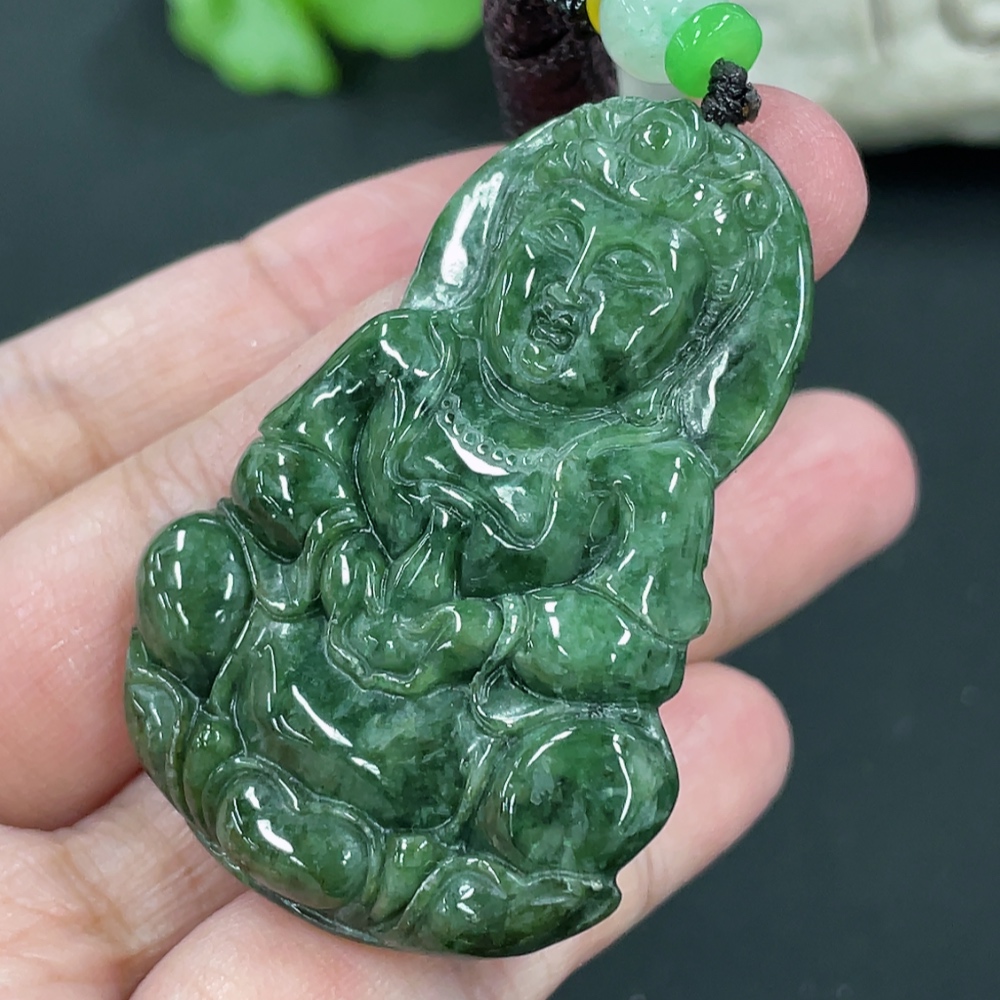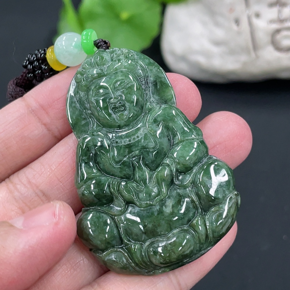 Jadeite Guanyin Pendant, Total Weight Approx. 25.59g