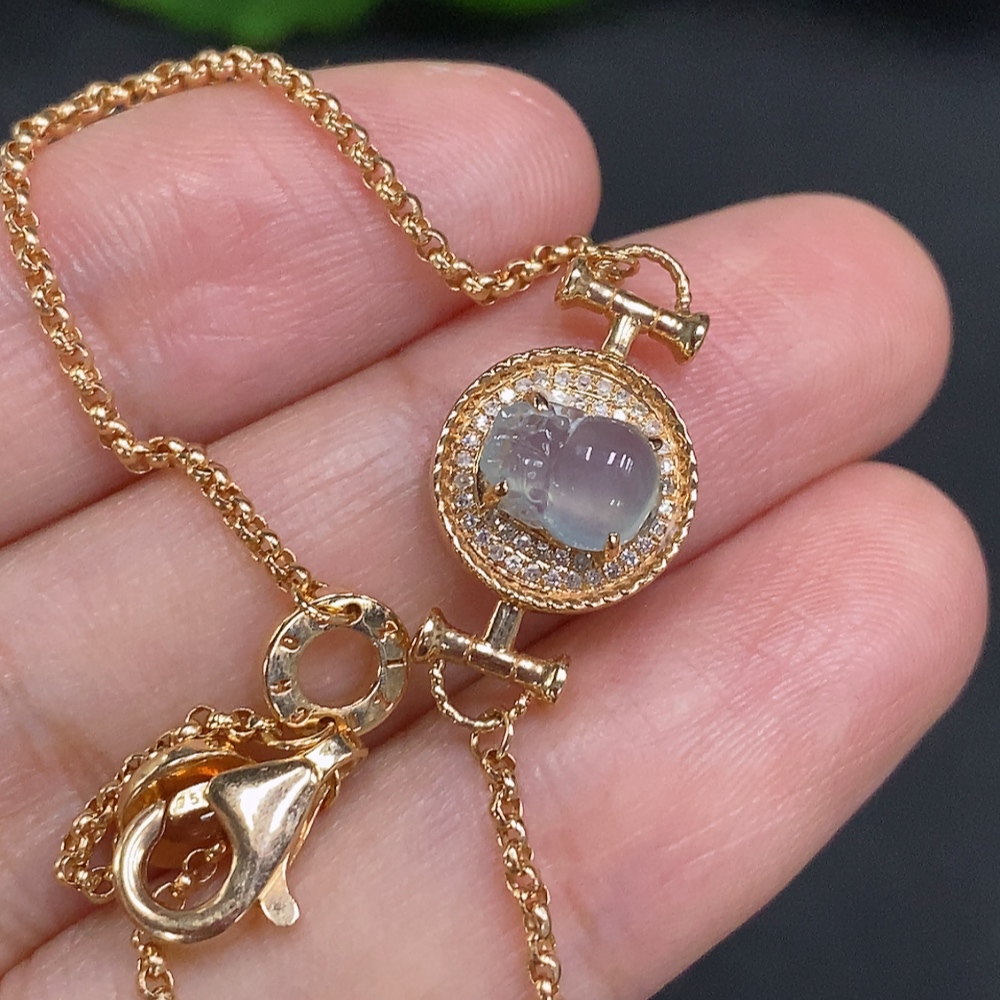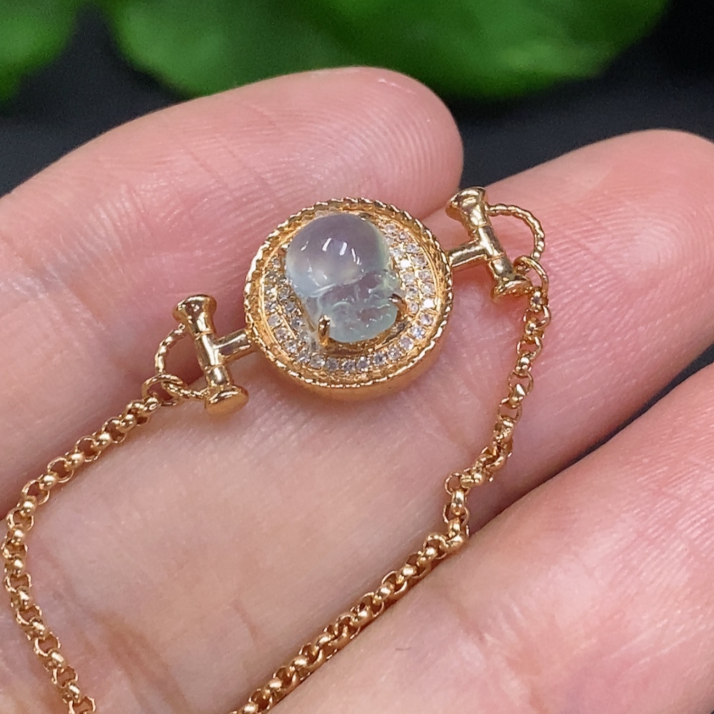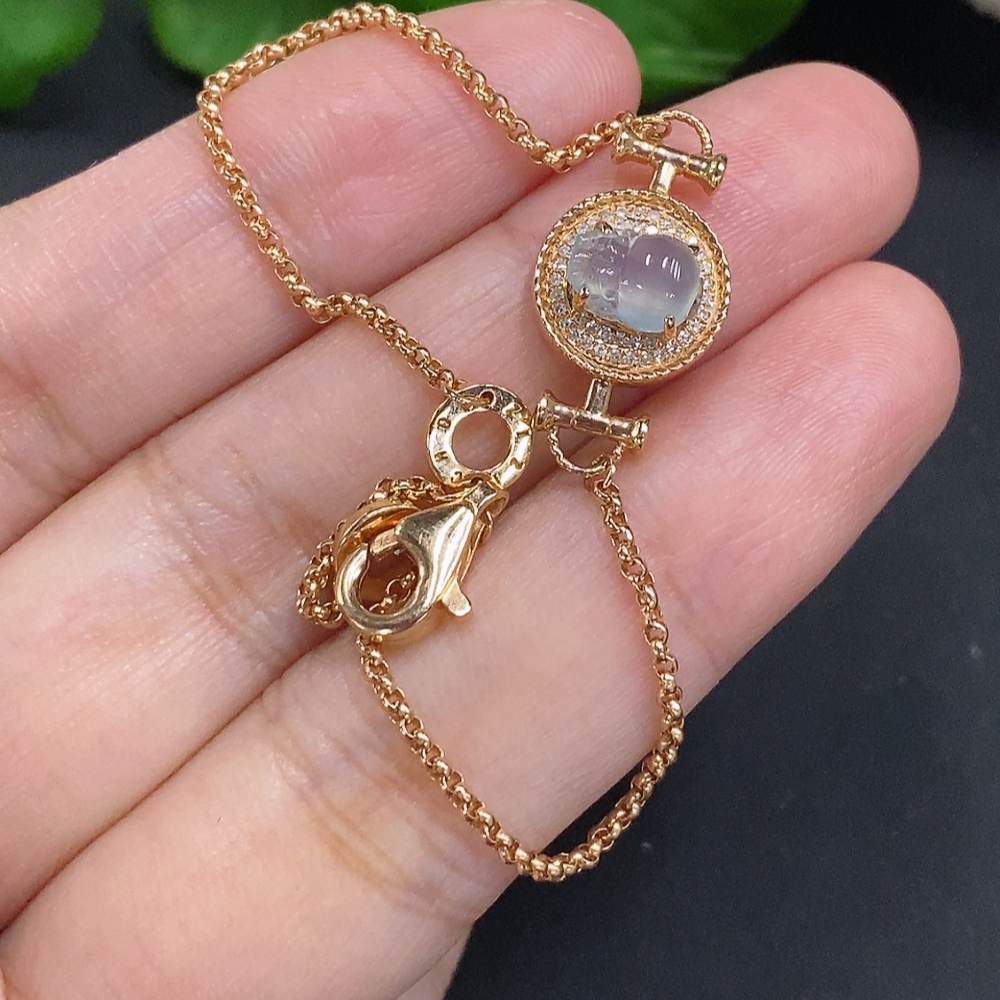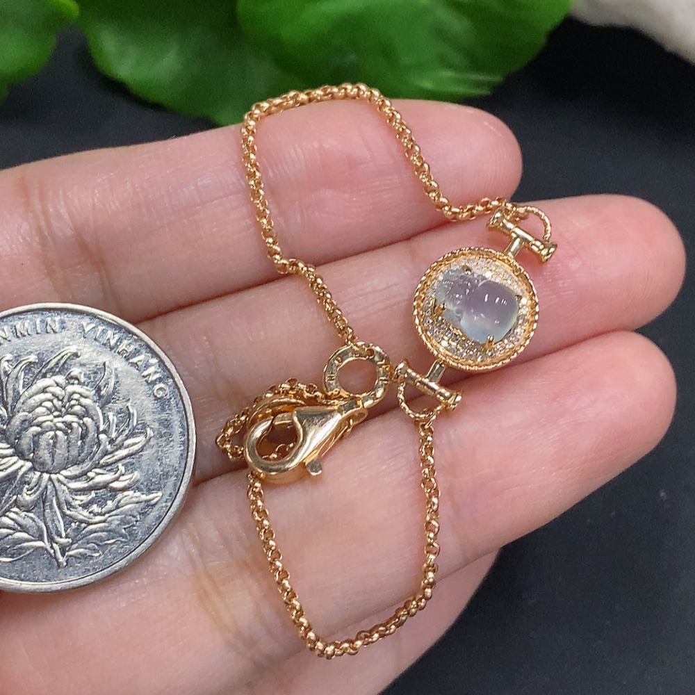 Jadeite Pi Xiu Inlaid Bracelet 18K Gold Total Weight Approx. 4.1g (With Diamond Accents)