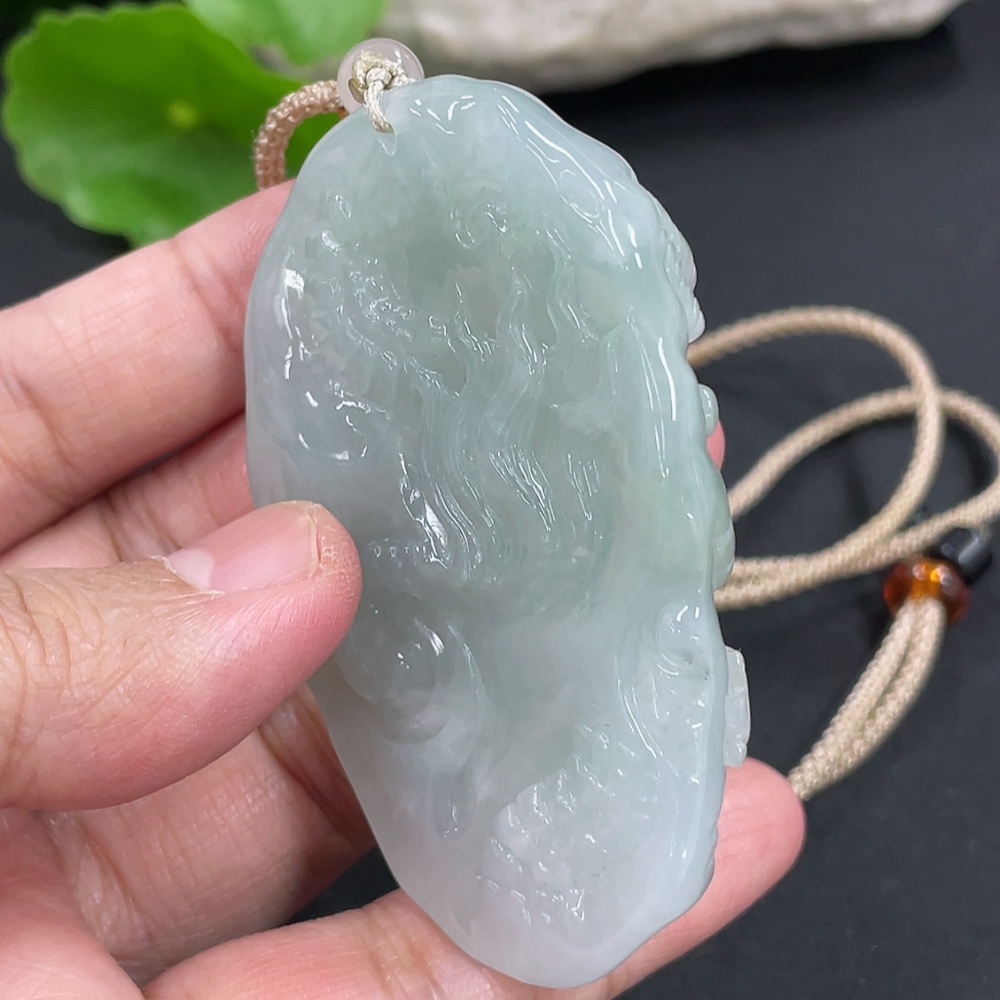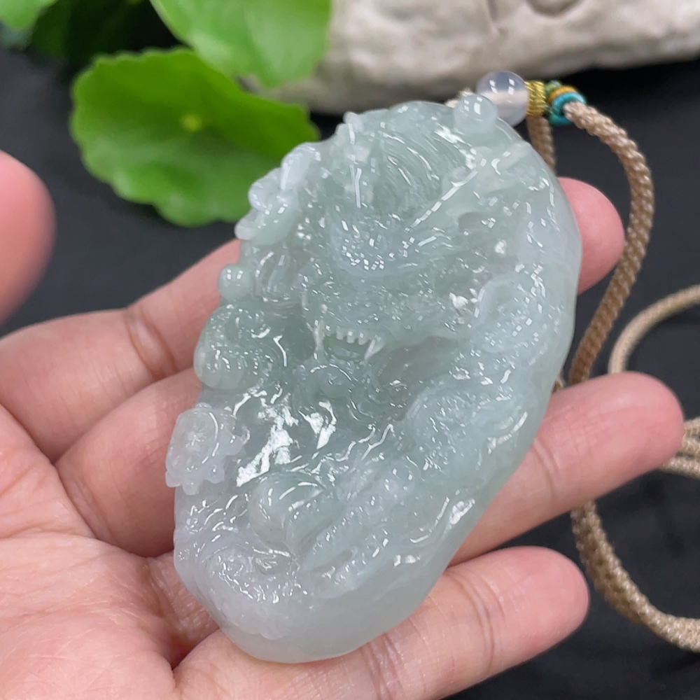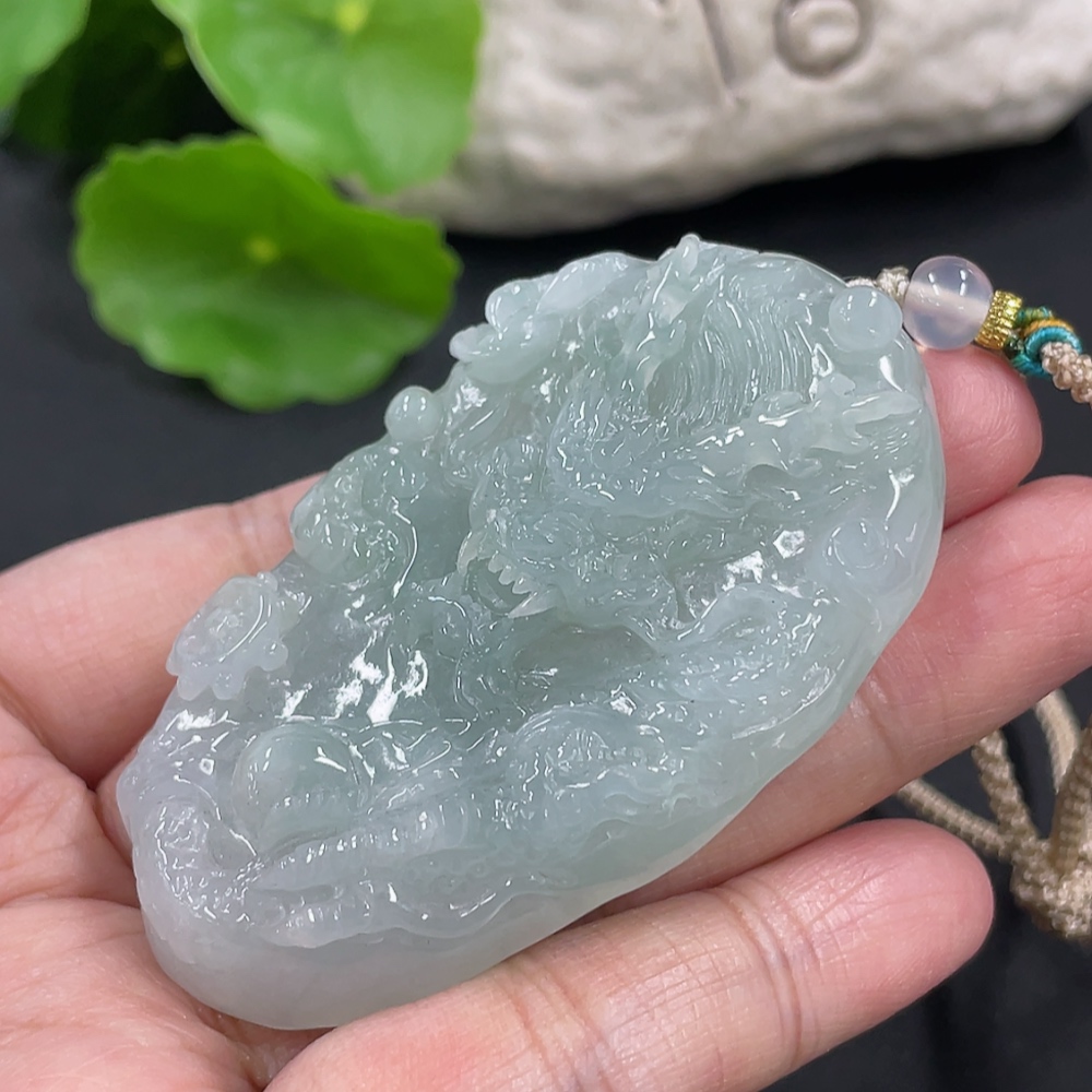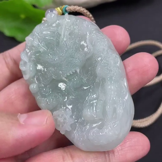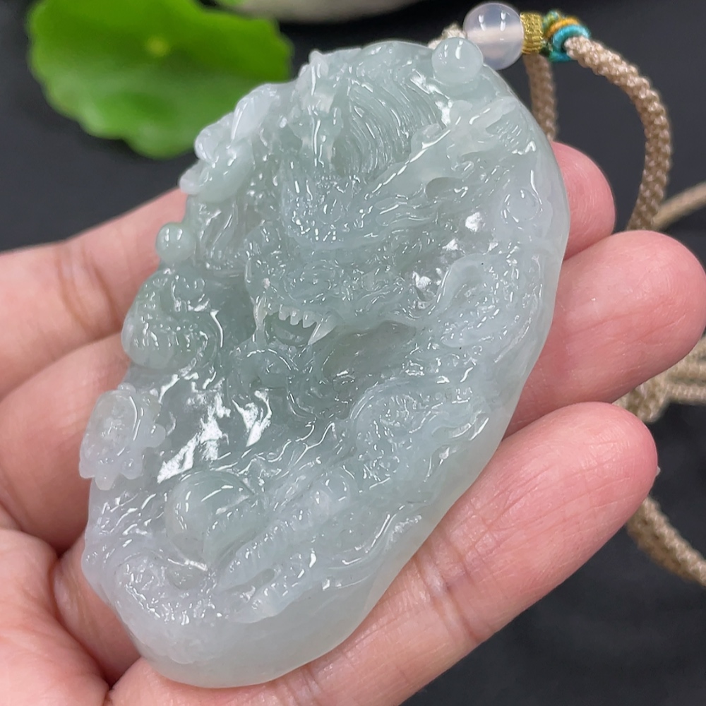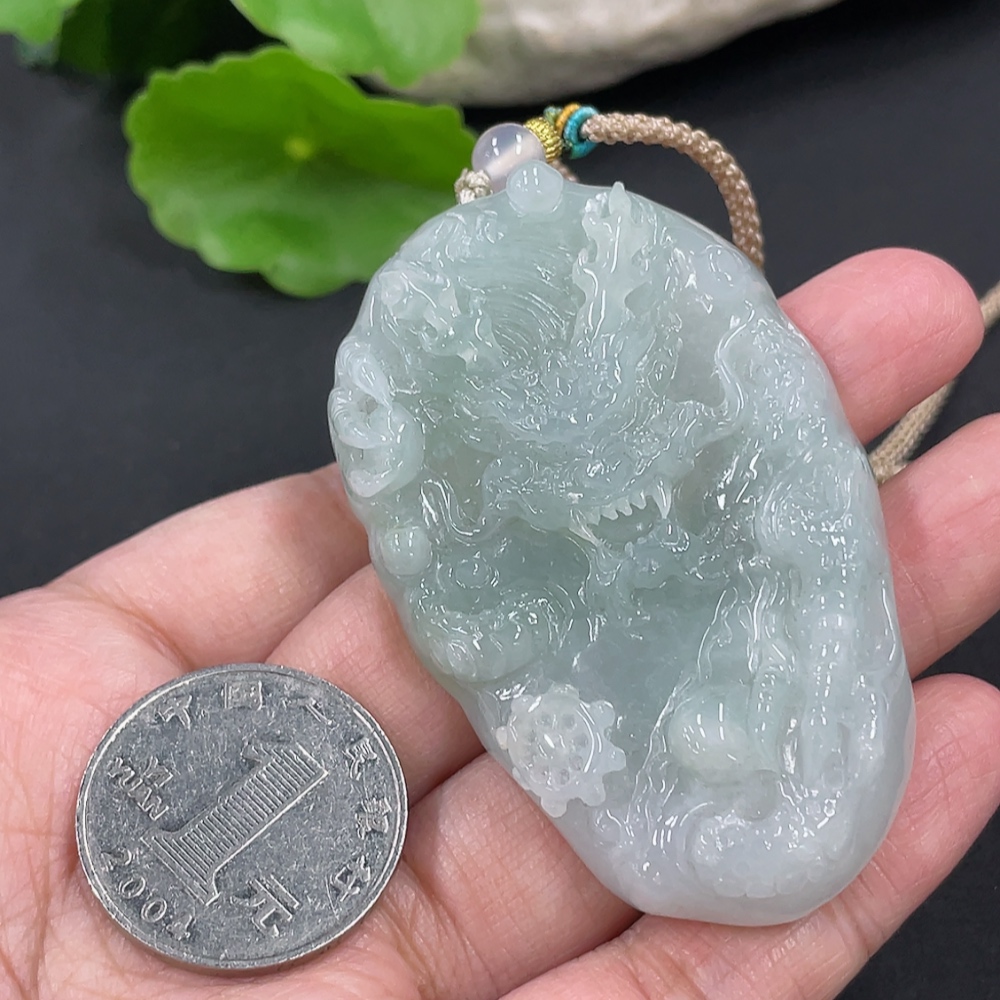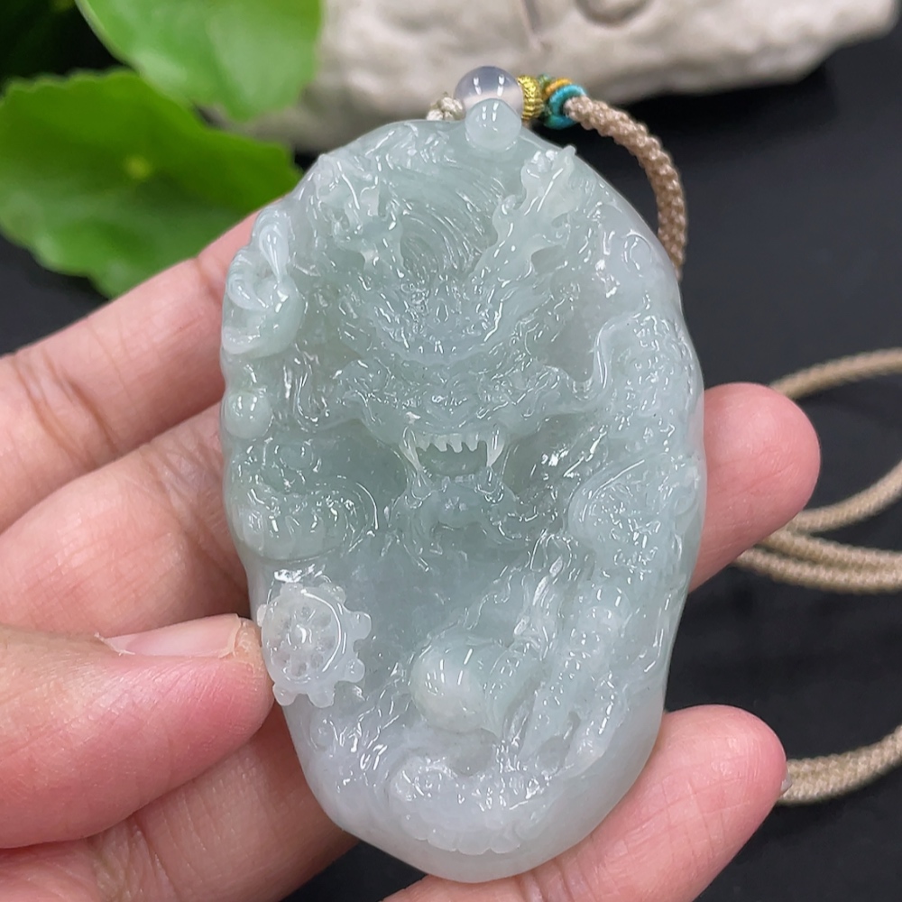 Jadeite Dragon Pendant Total Weight Approx. 49.4g With Non-Grade A Beads