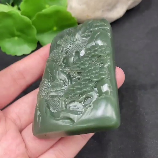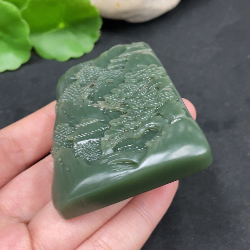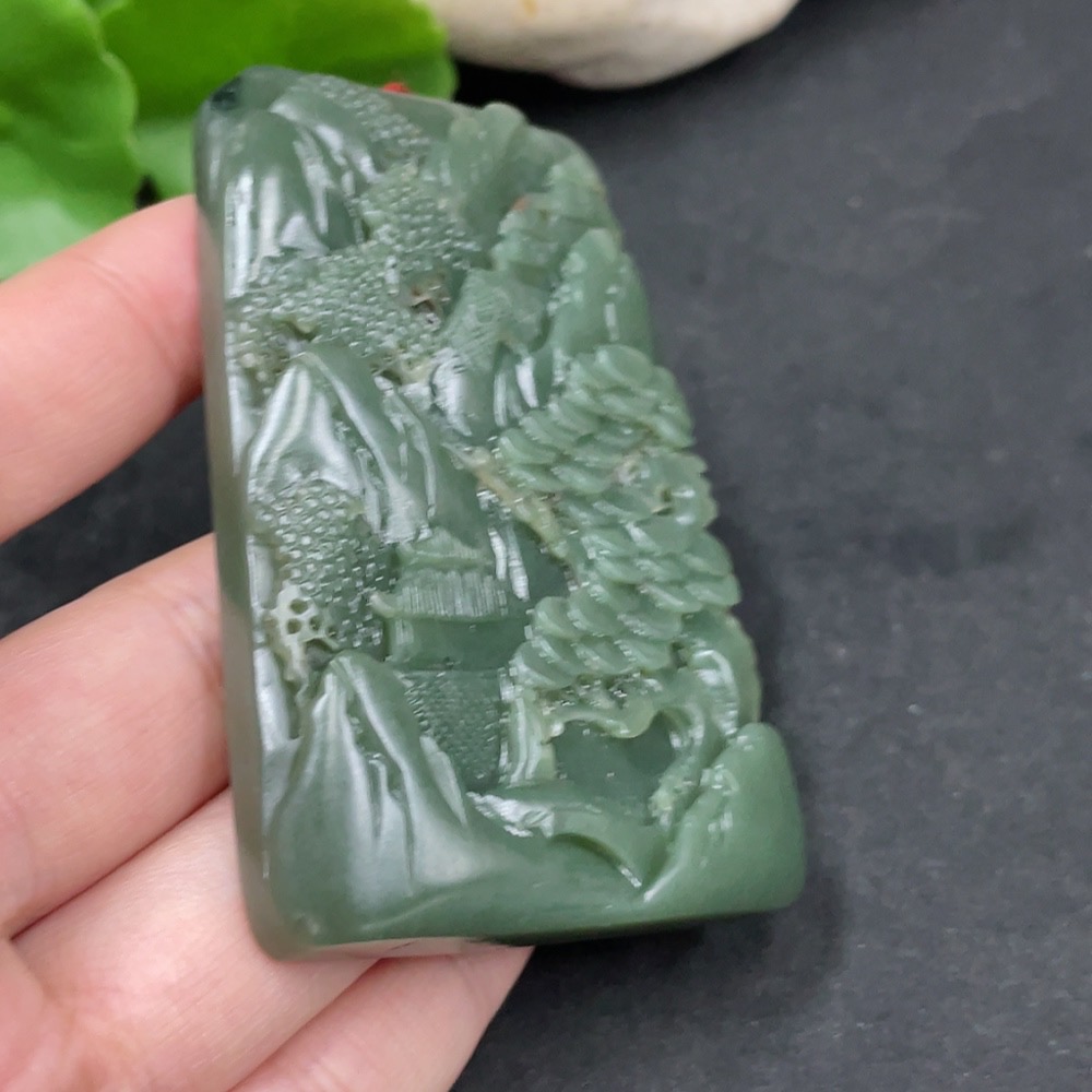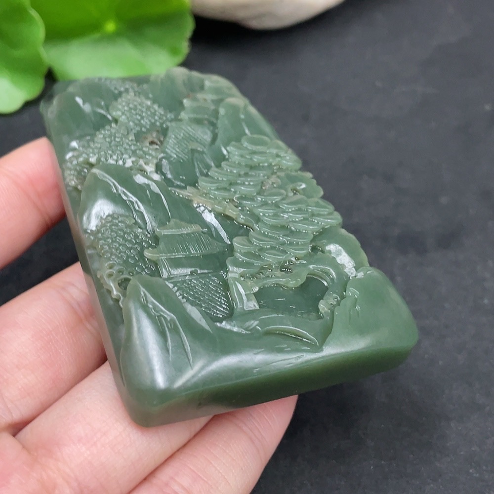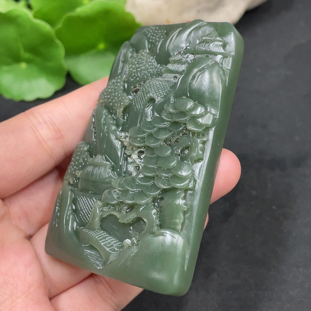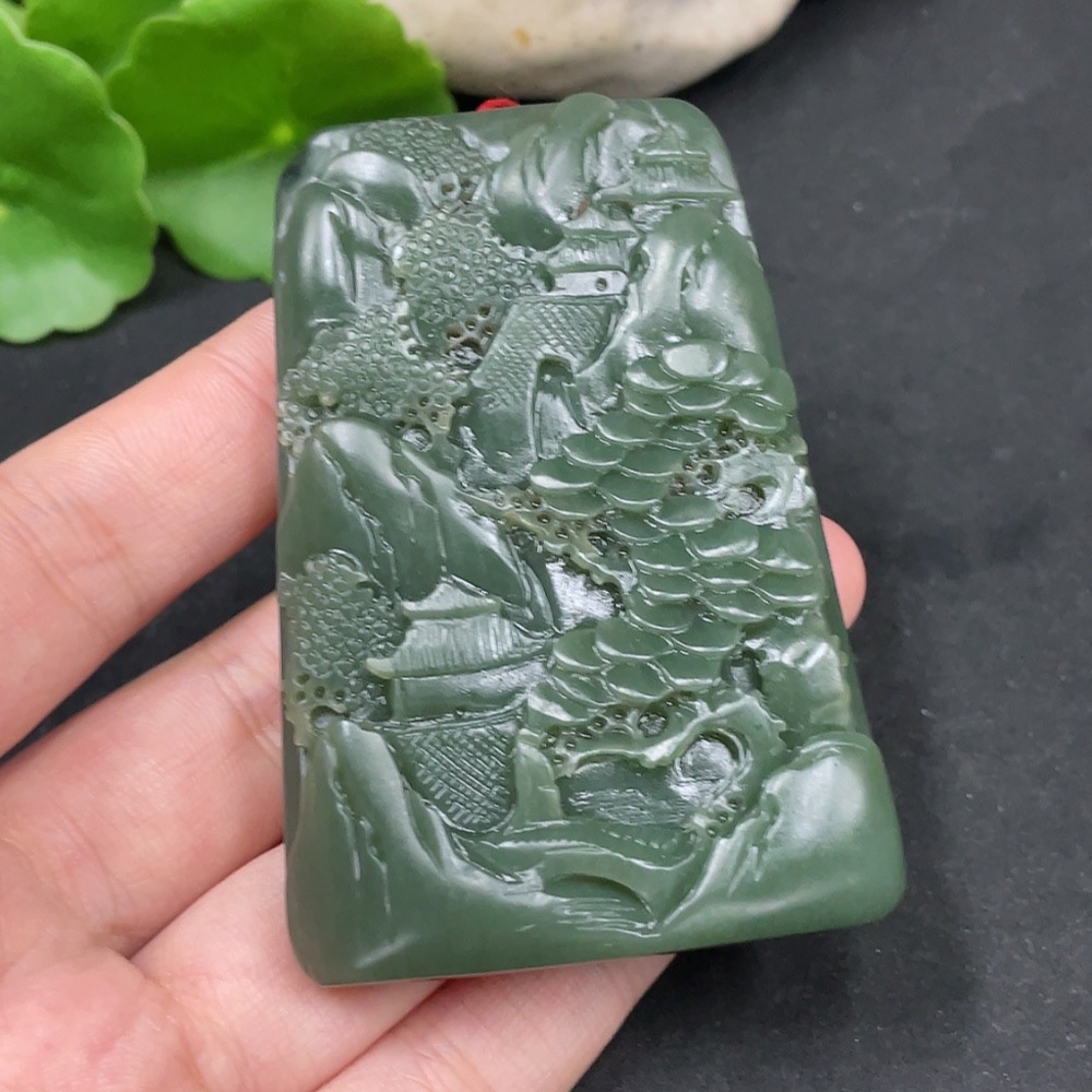Hetian Jade Pendant - Landscape Plaque with Non-Hetian Jade Beads, Total Weight Approx. 83g (Including Cord)