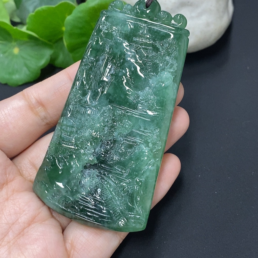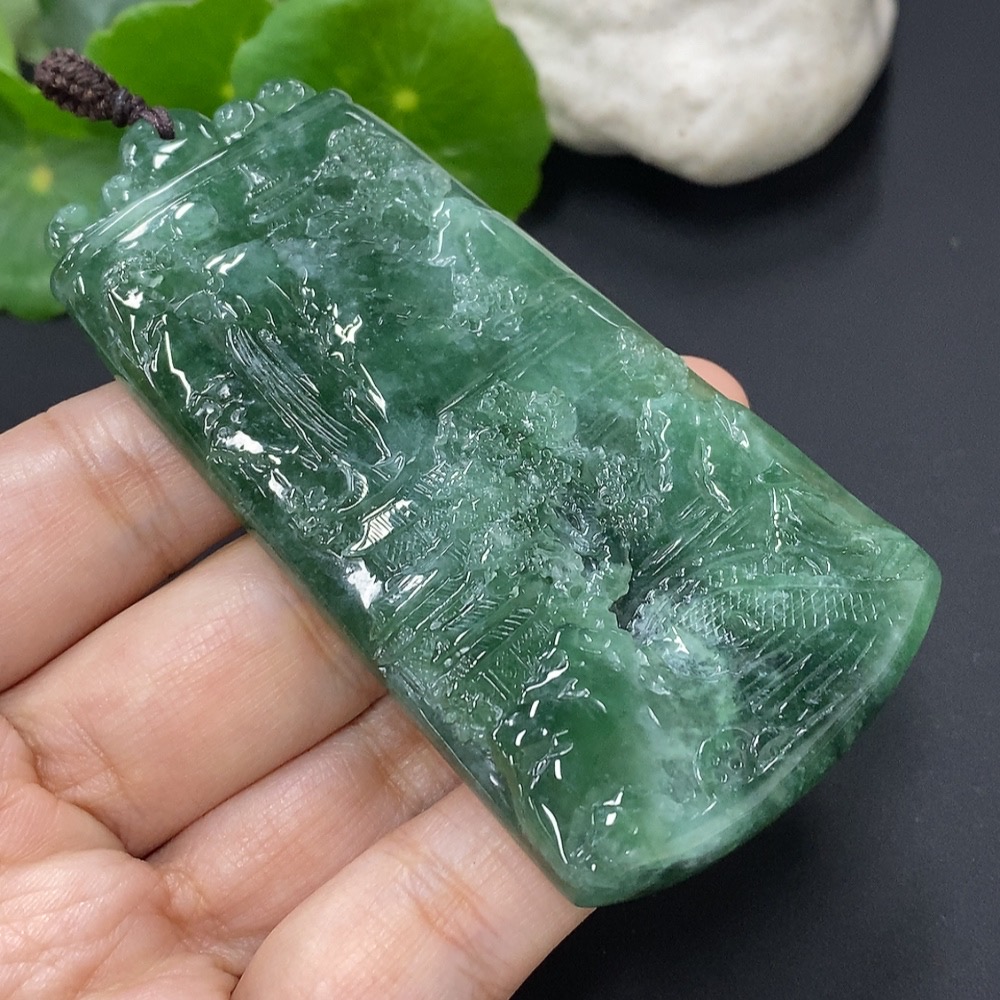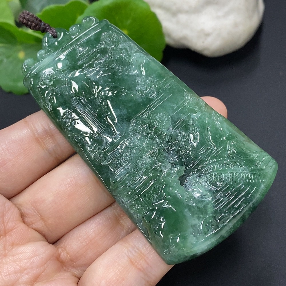 Jadeite Landscape Pendant, Total Weight Approximately 66.9g