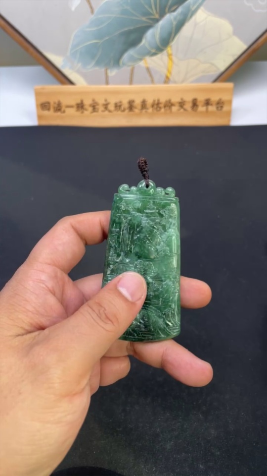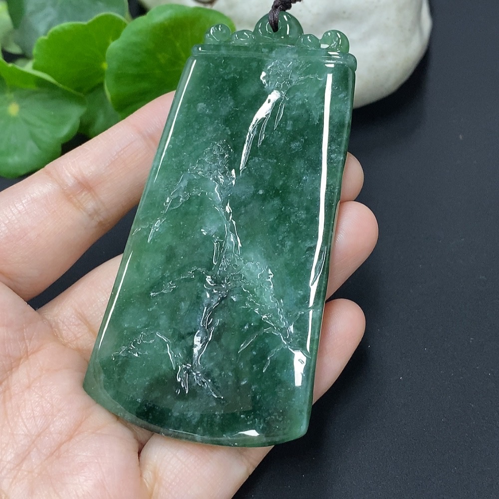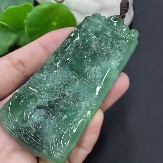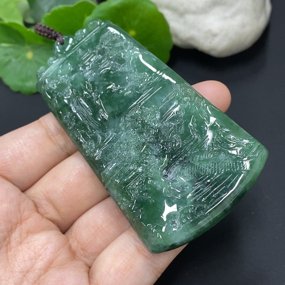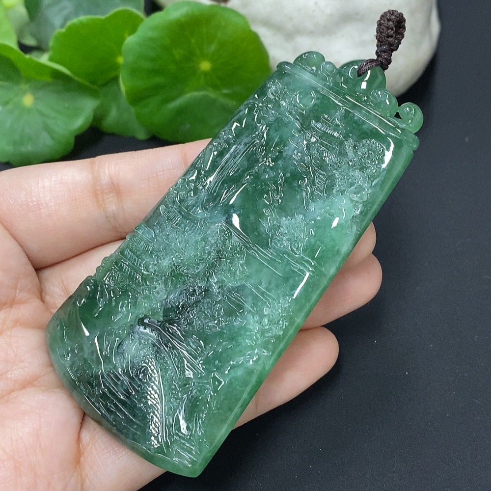 Jadeite Landscape Pendant, Total Weight Approximately 66.9g