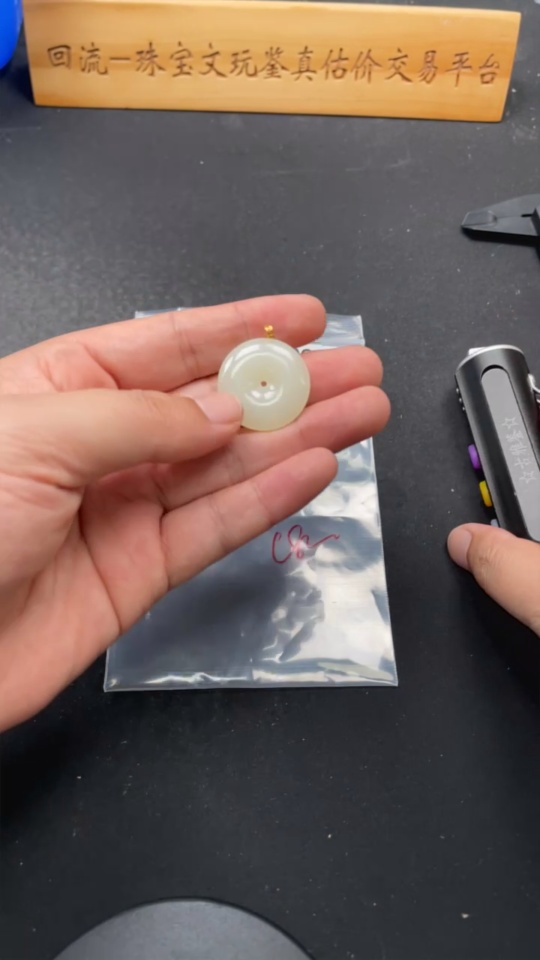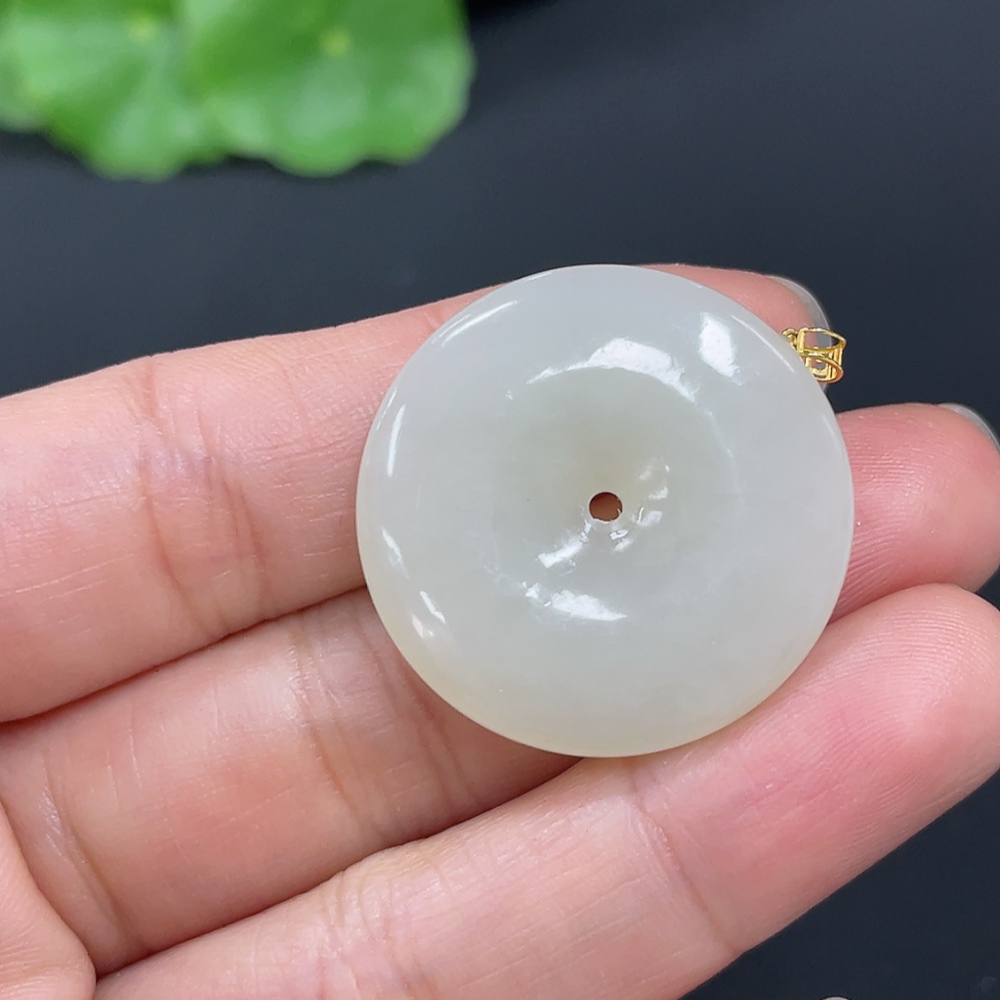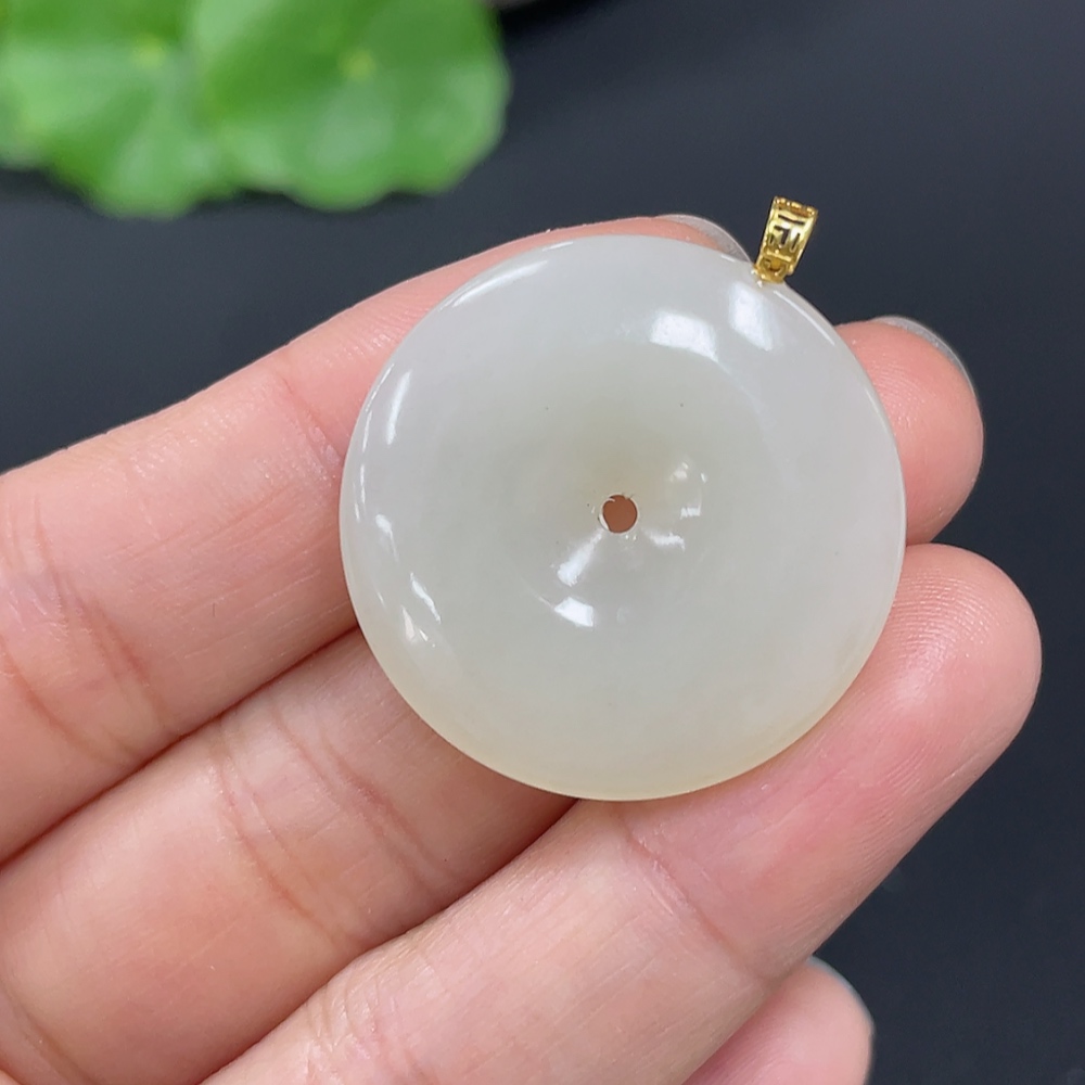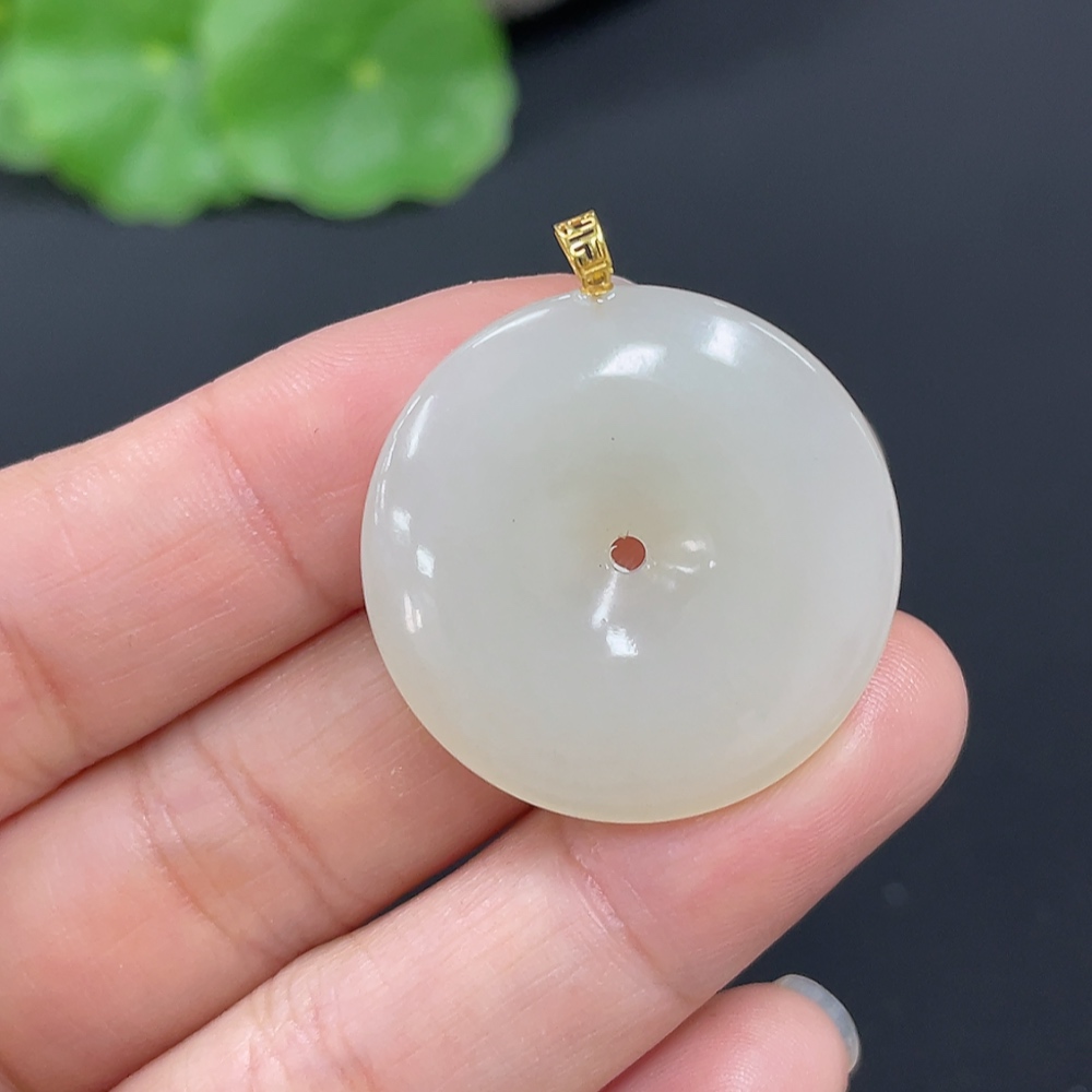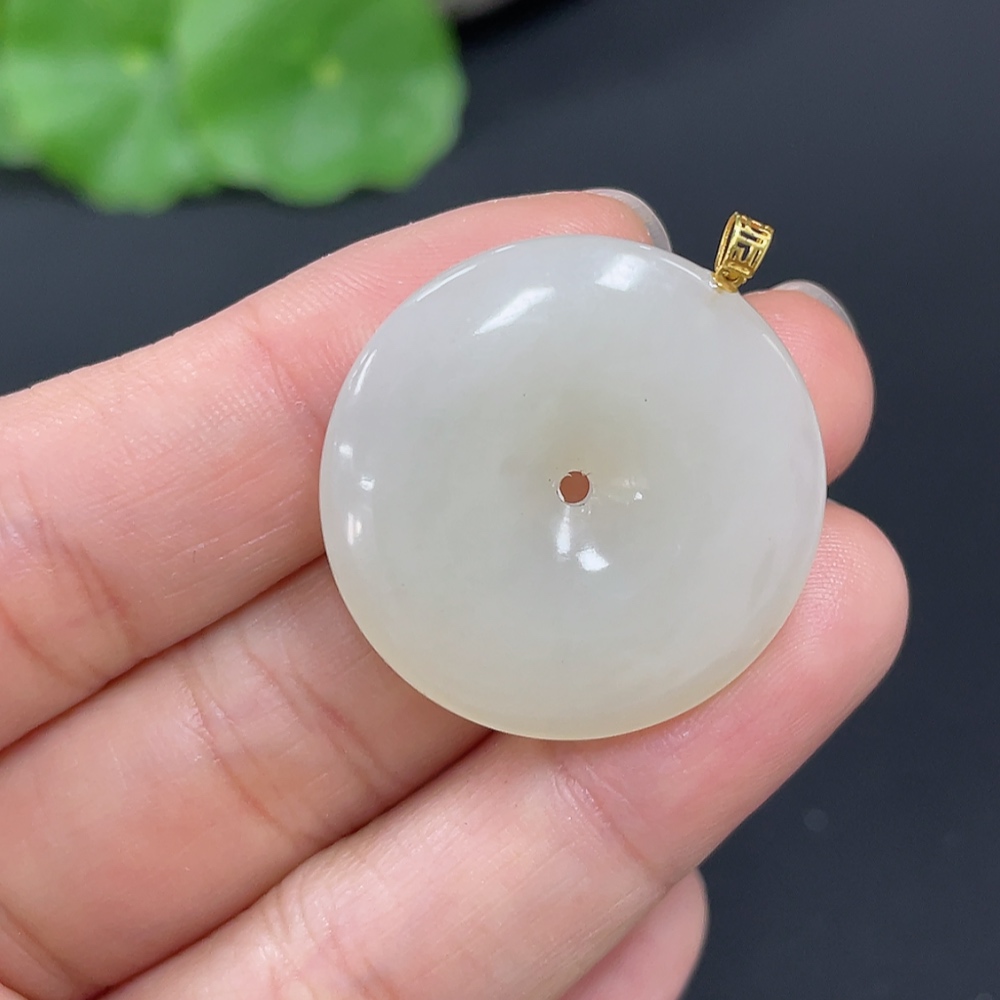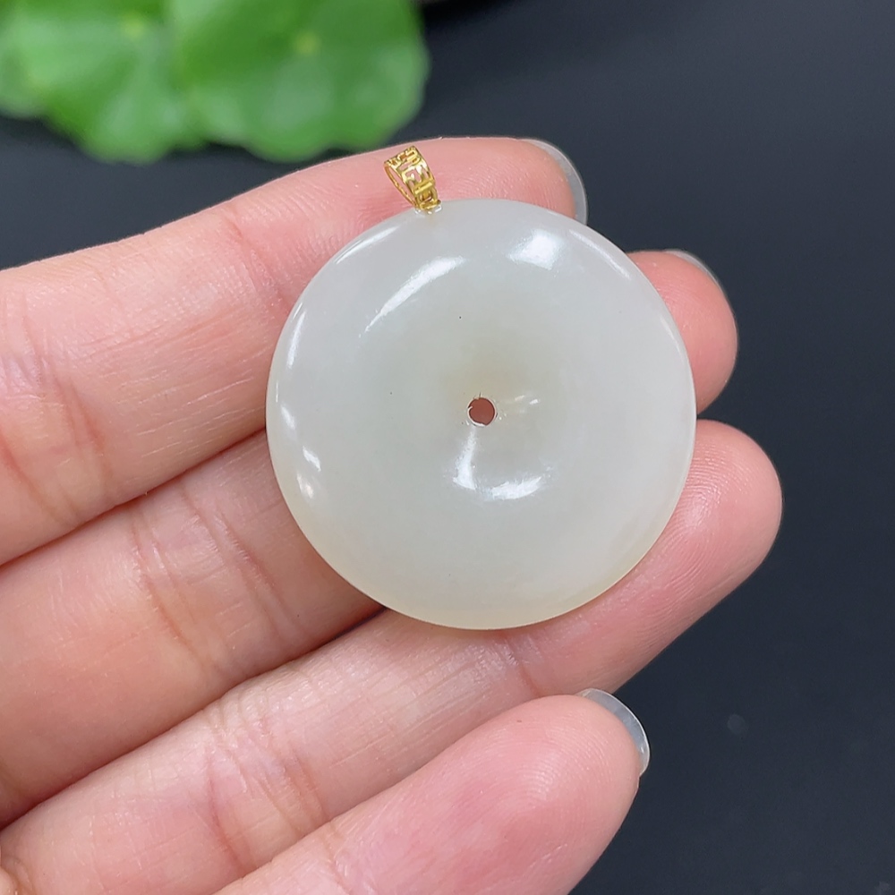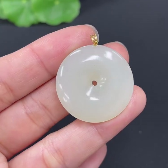 Hetian Jade Pendant, Peace Buckle, 18K Gold Clasp, Total Weight Approx. 6.9g