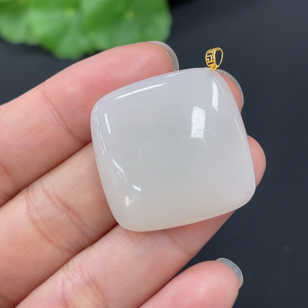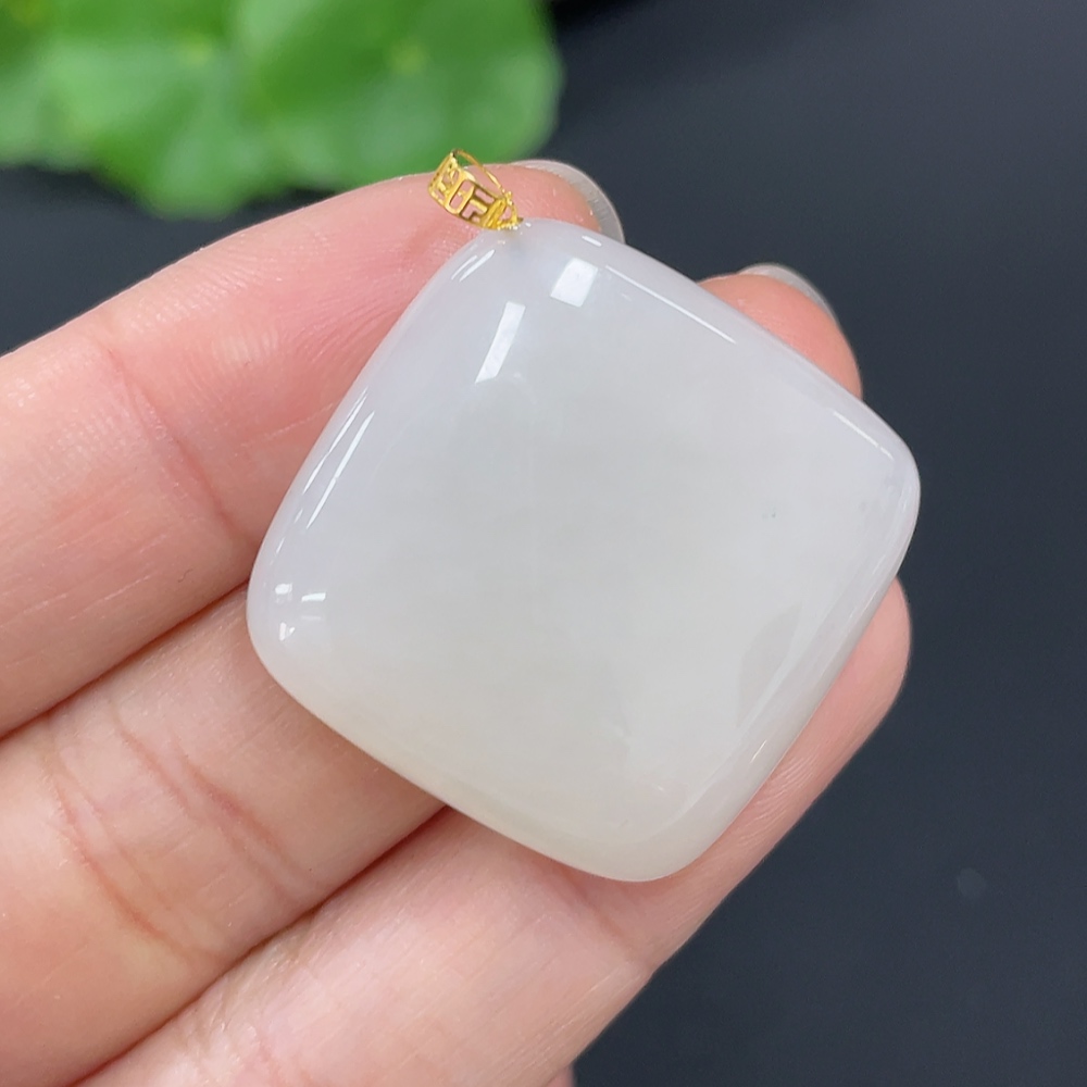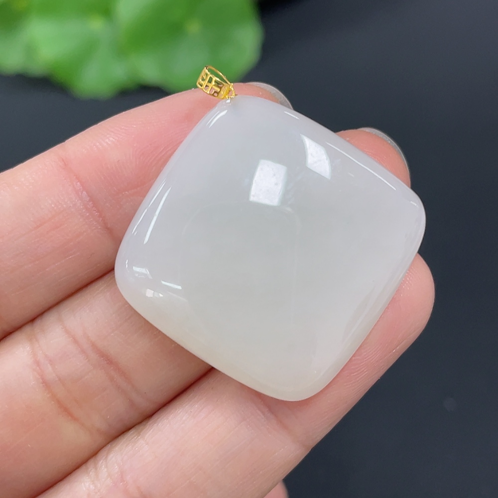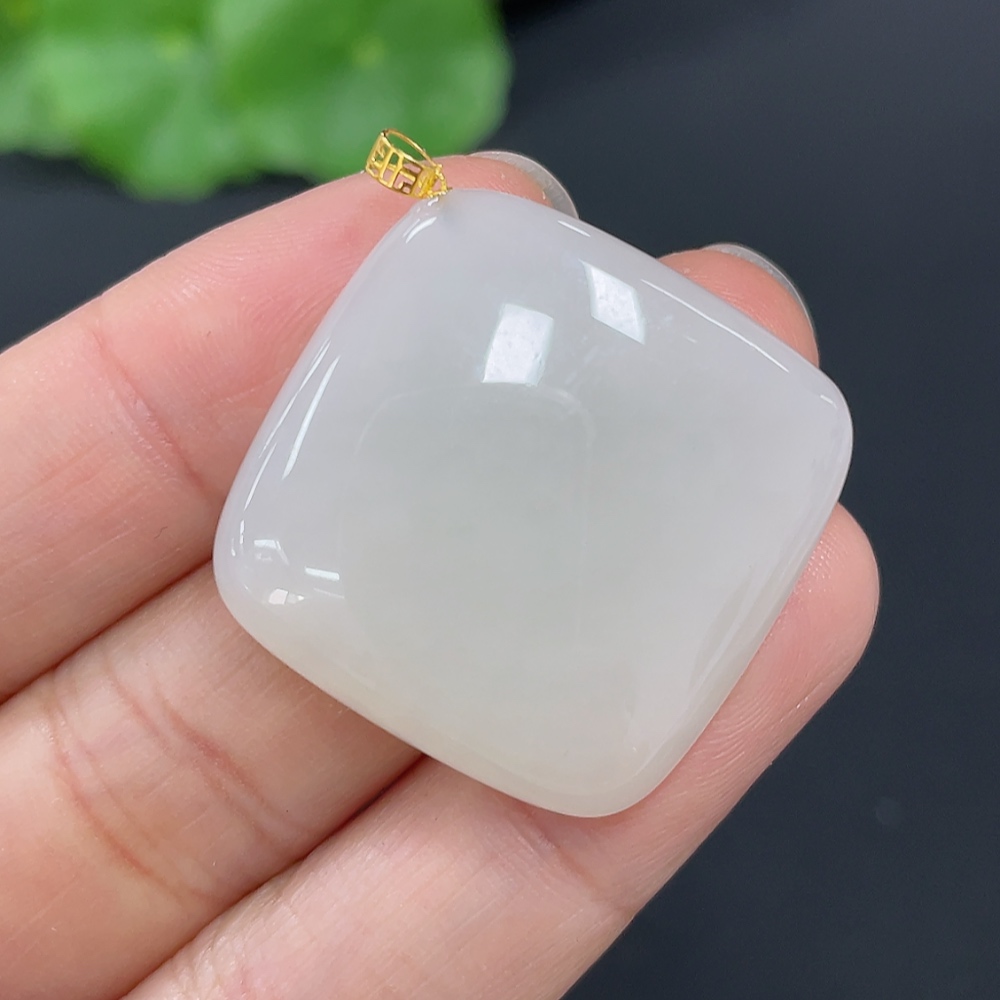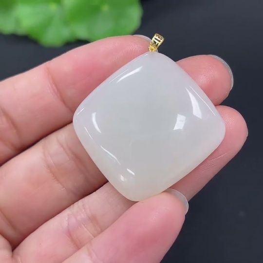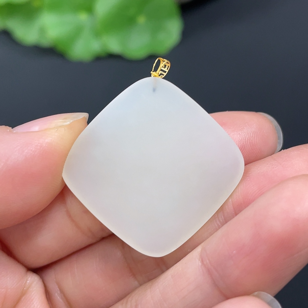 Hetian Jade Pendant, Plain Pendant with 18k Gold Clasp, Total Weight Approx. 7g