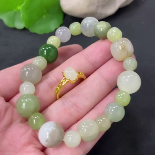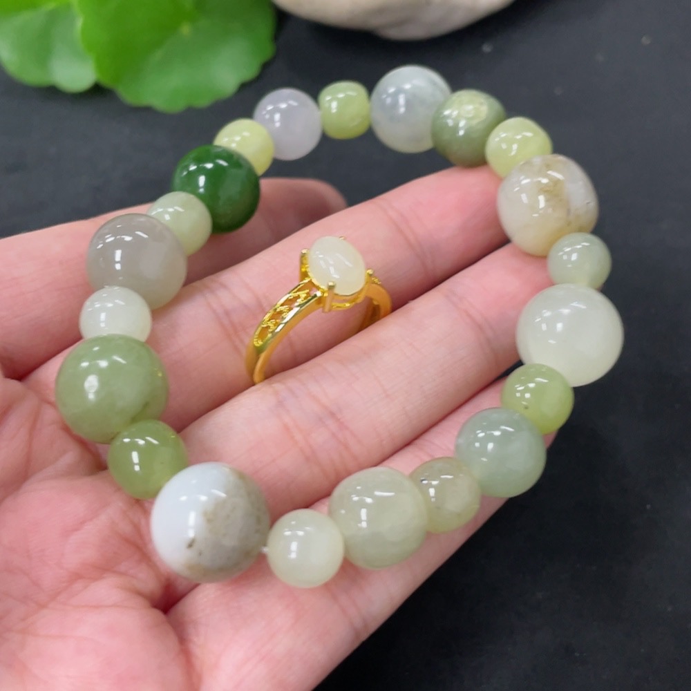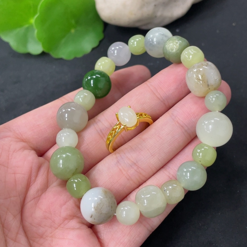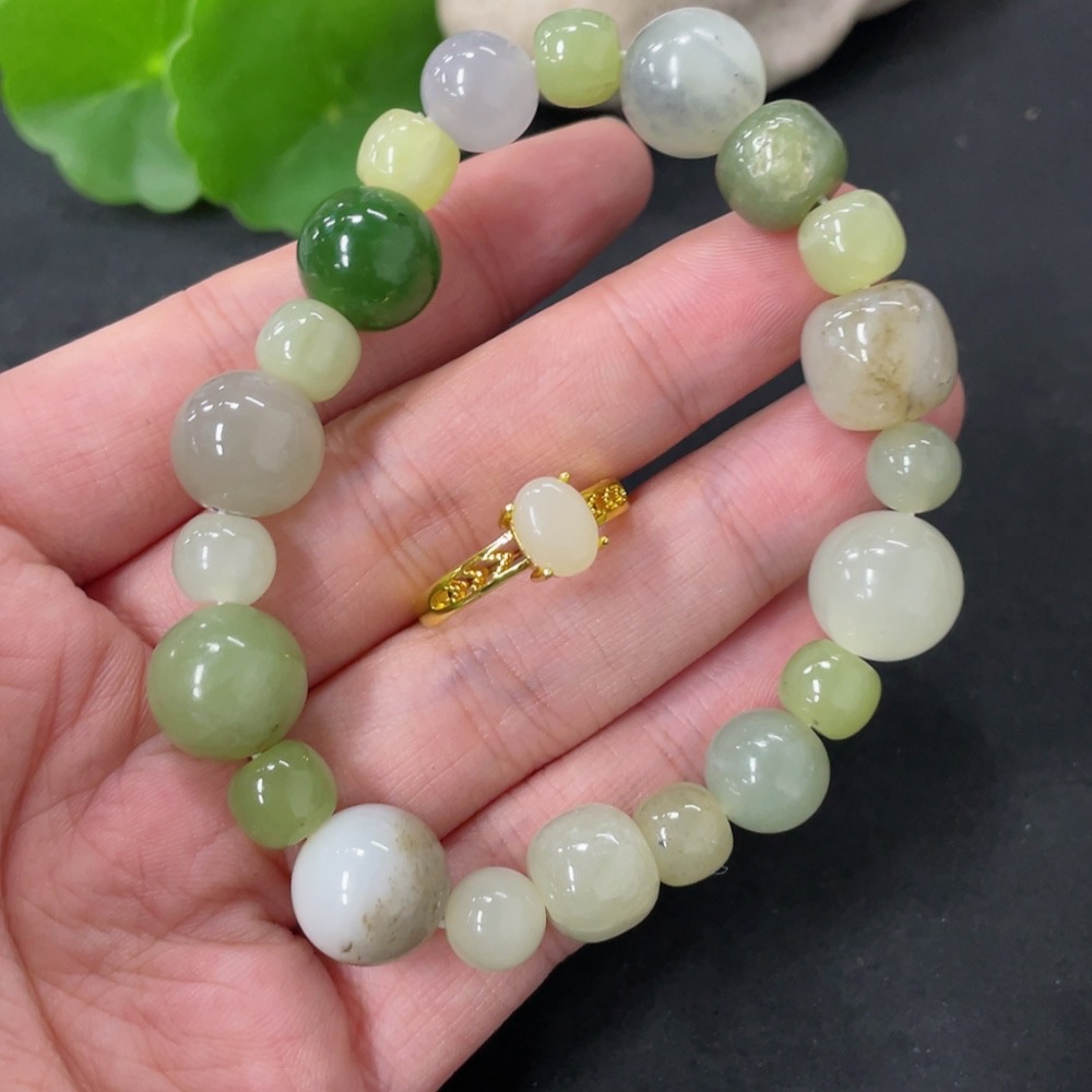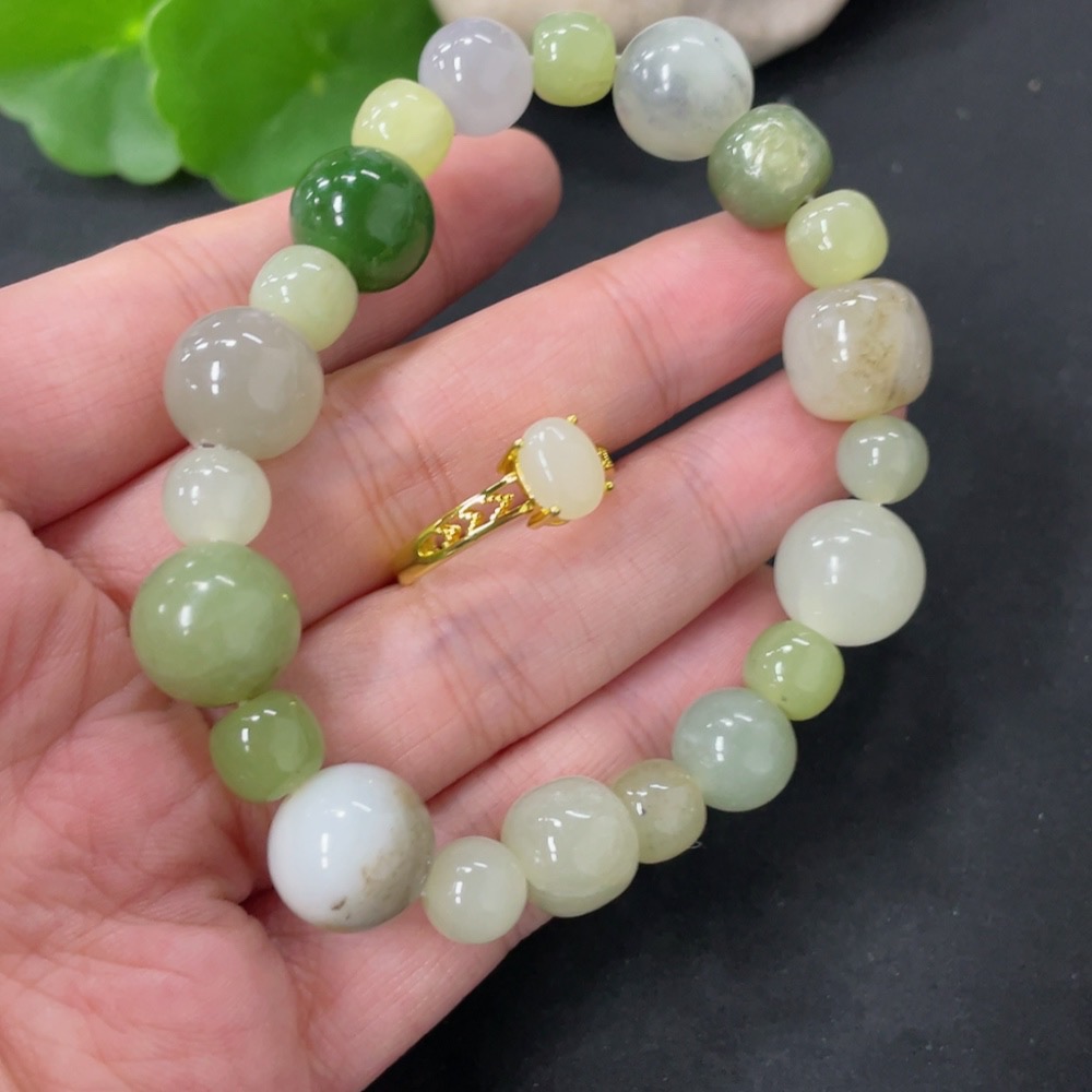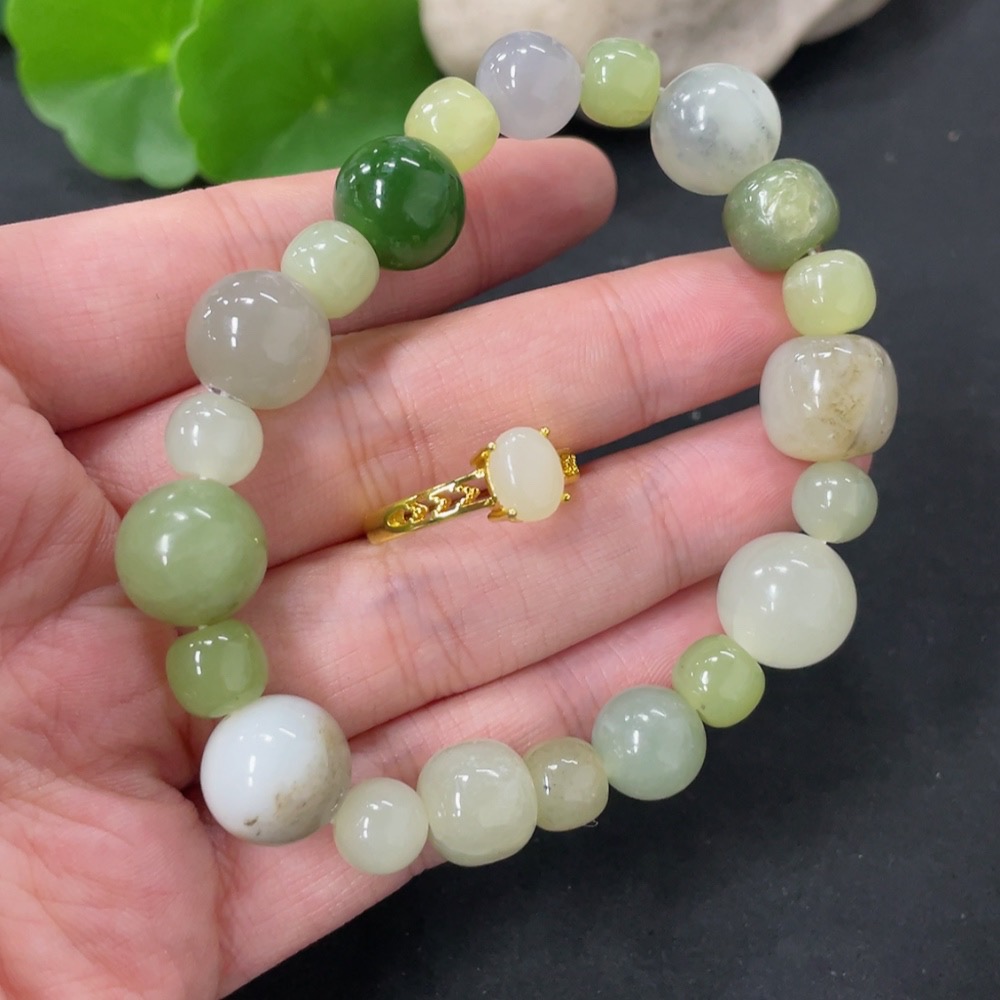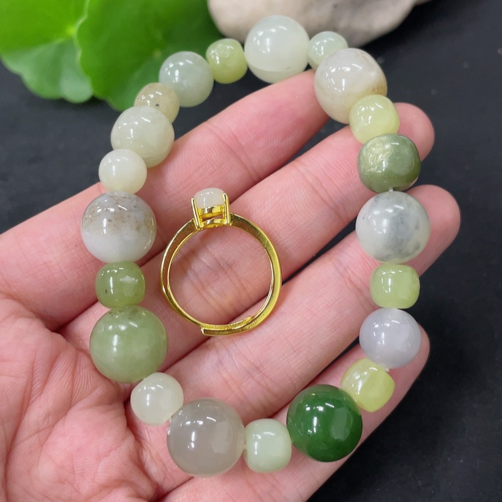 Hetian Jade Bracelet + Adjustable Inlaid Ring Non-Gold Total Weight Approx. 34.9g
