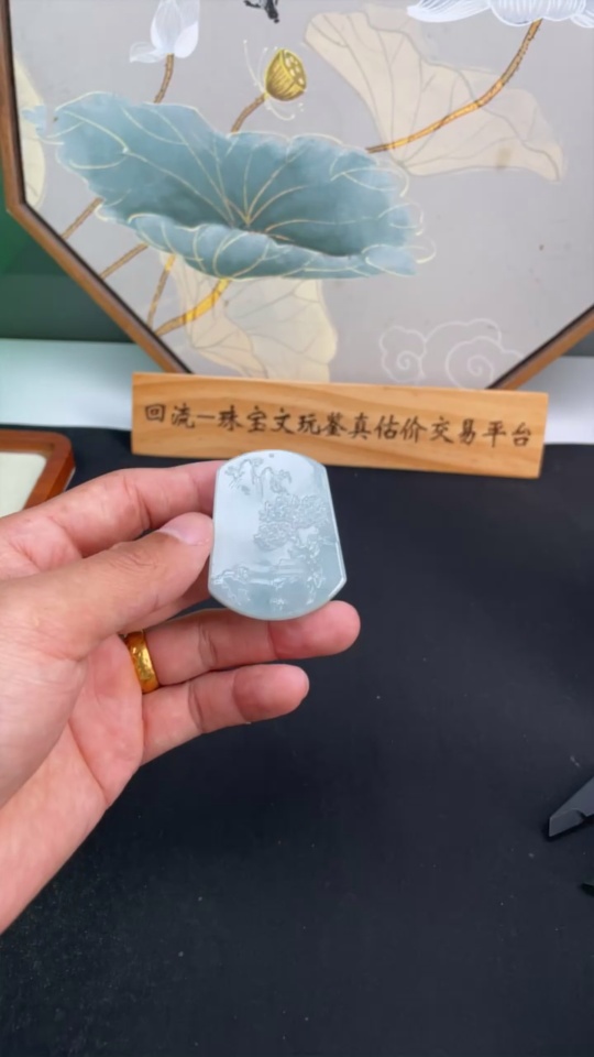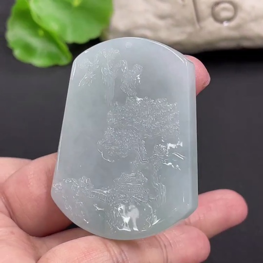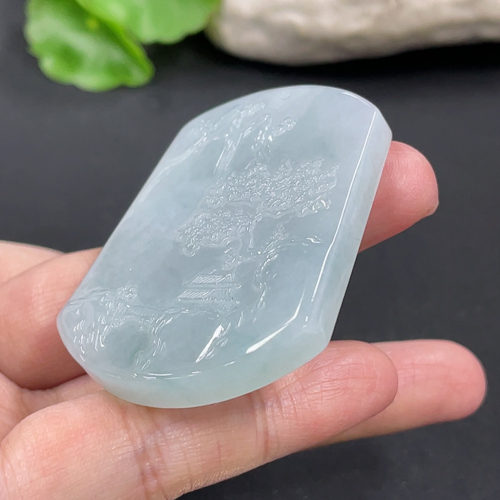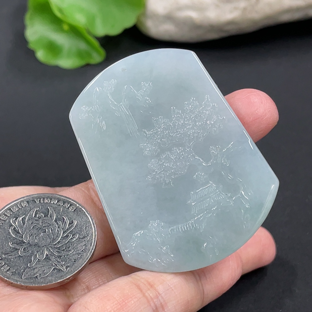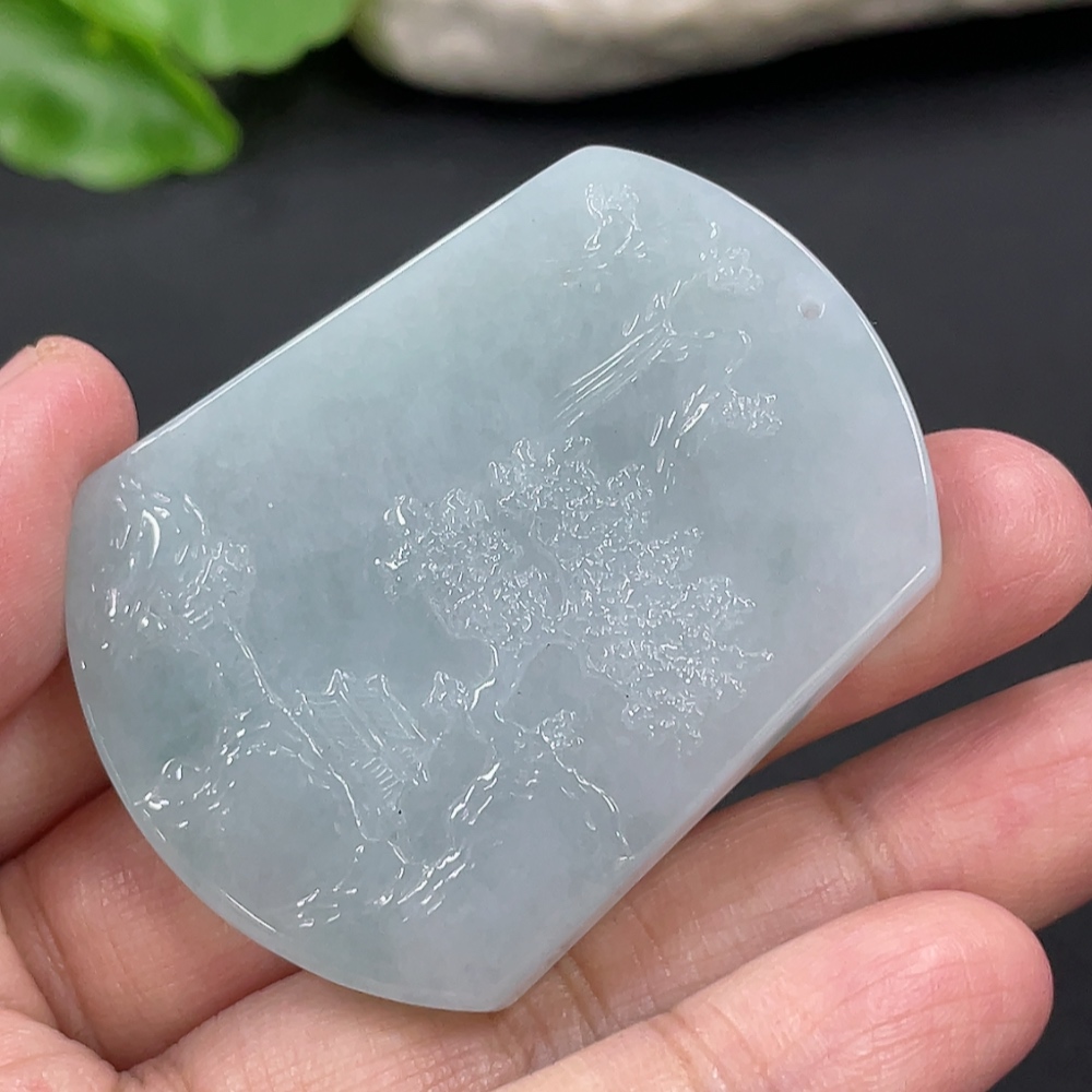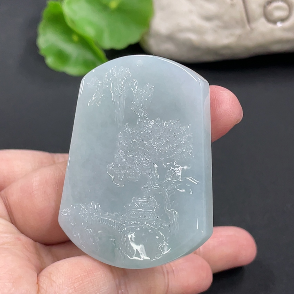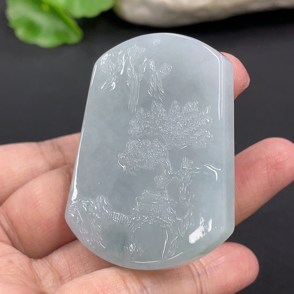 Jadeite Landscape Pendant, Total Weight Approximately 32.67g