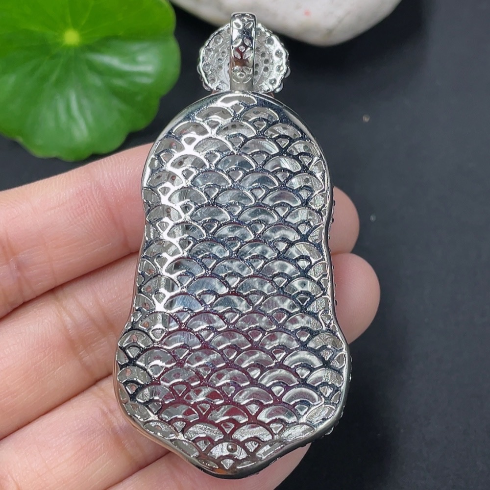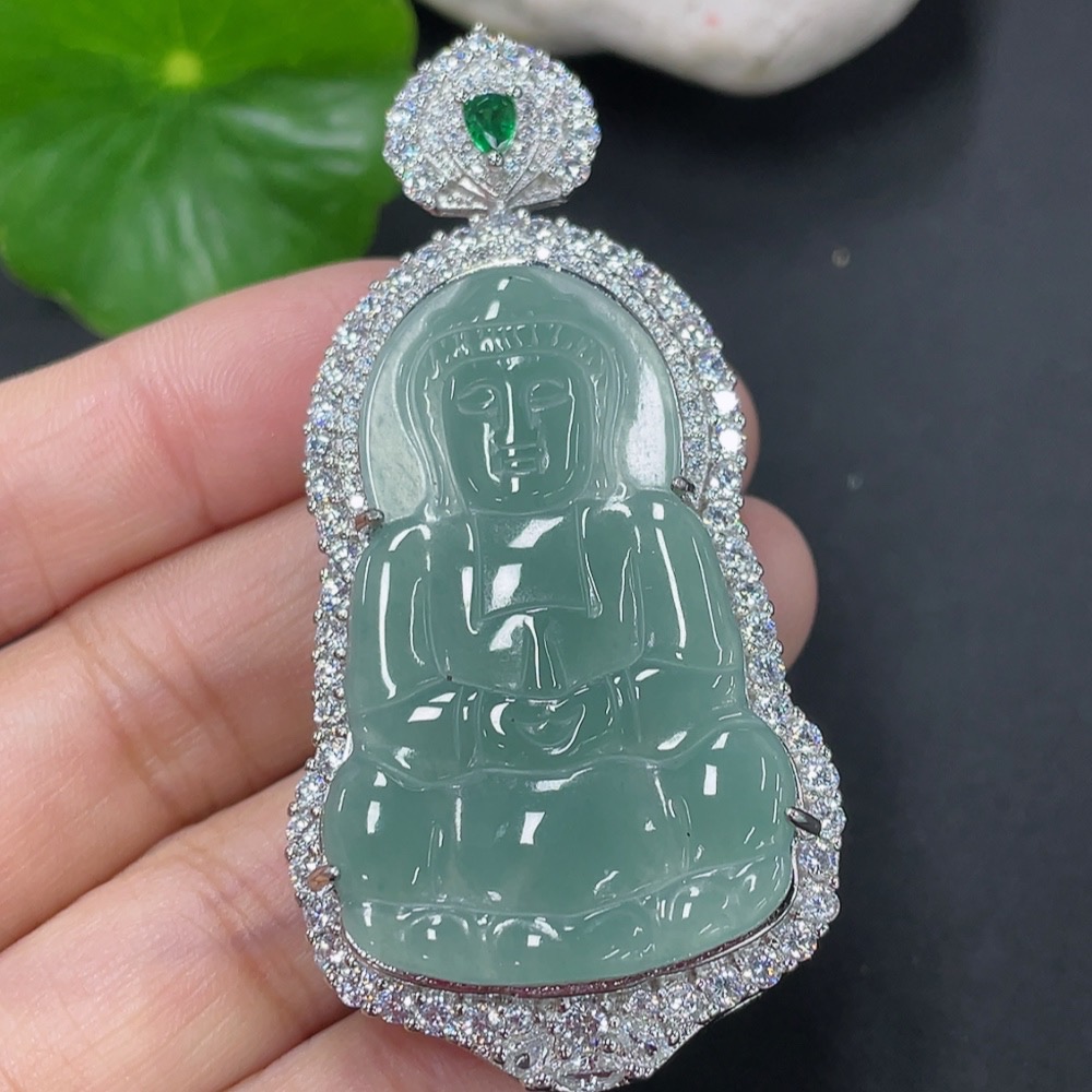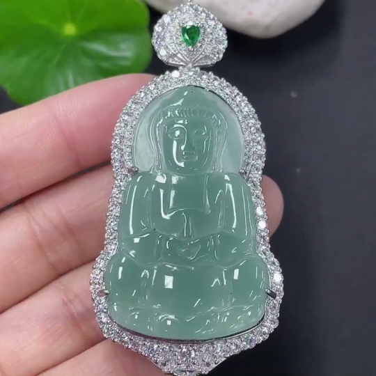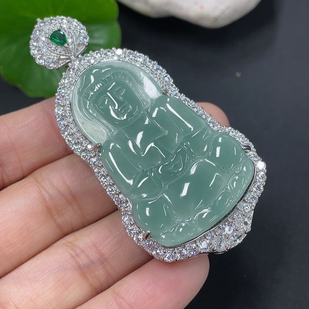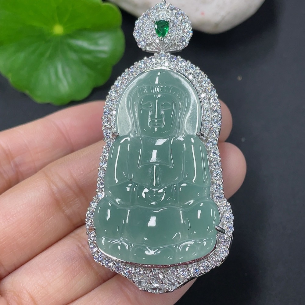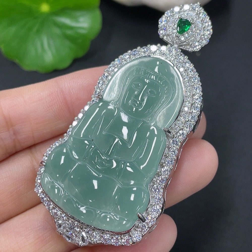 Jadeite Inlaid Guanyin Pendant Non-Gold Total Weight Approx. 20.14g Excluding Rope
