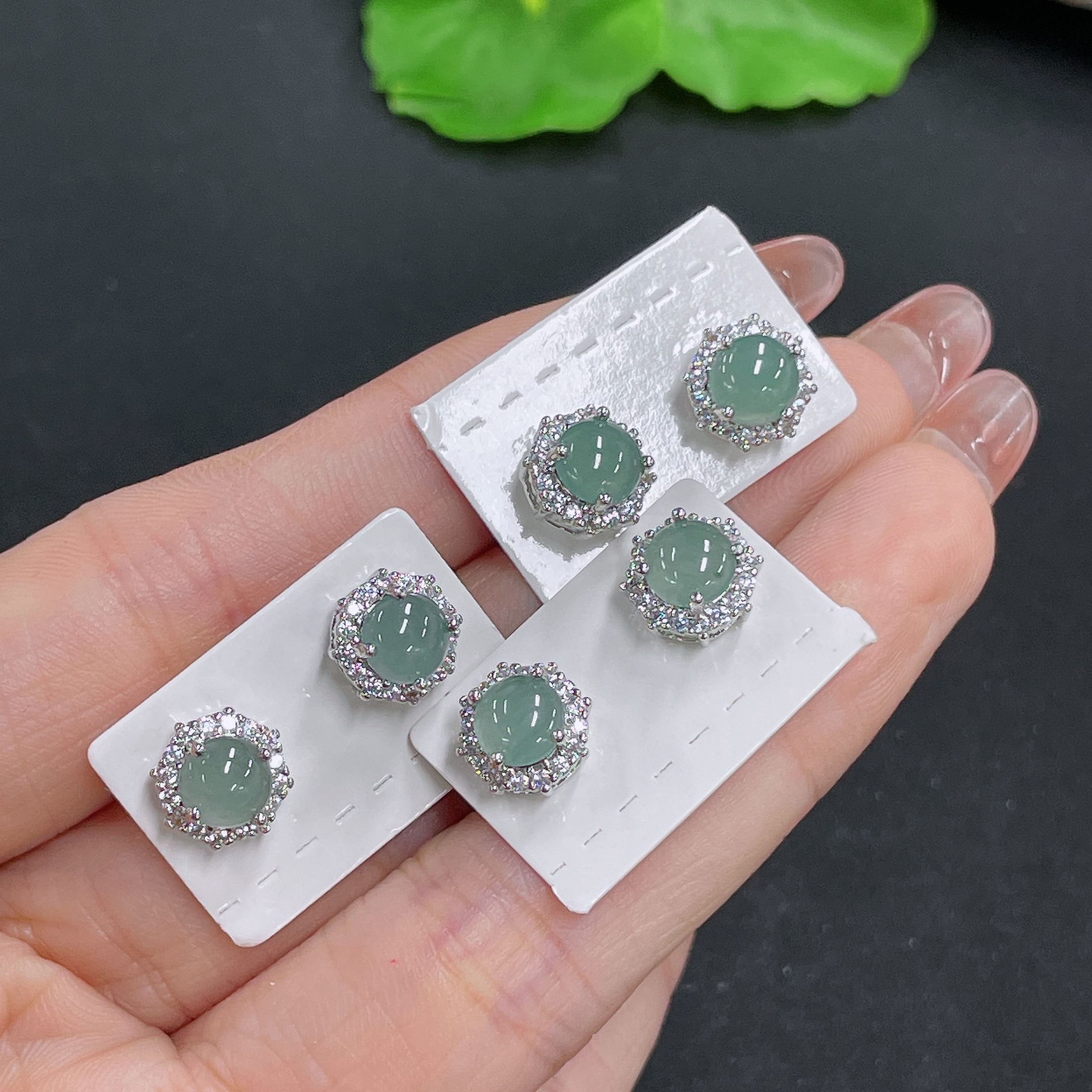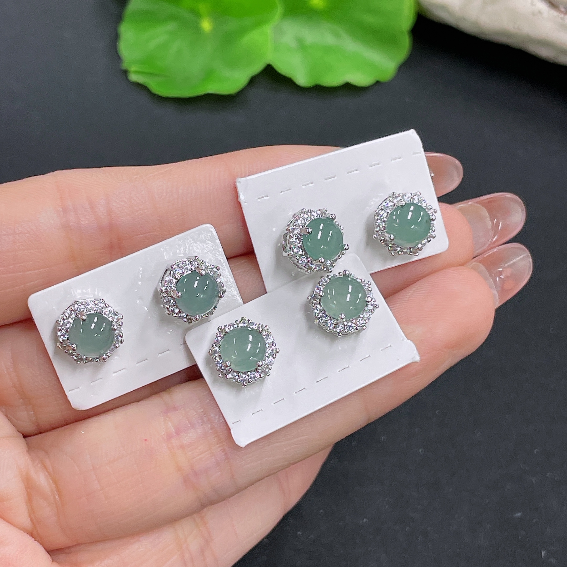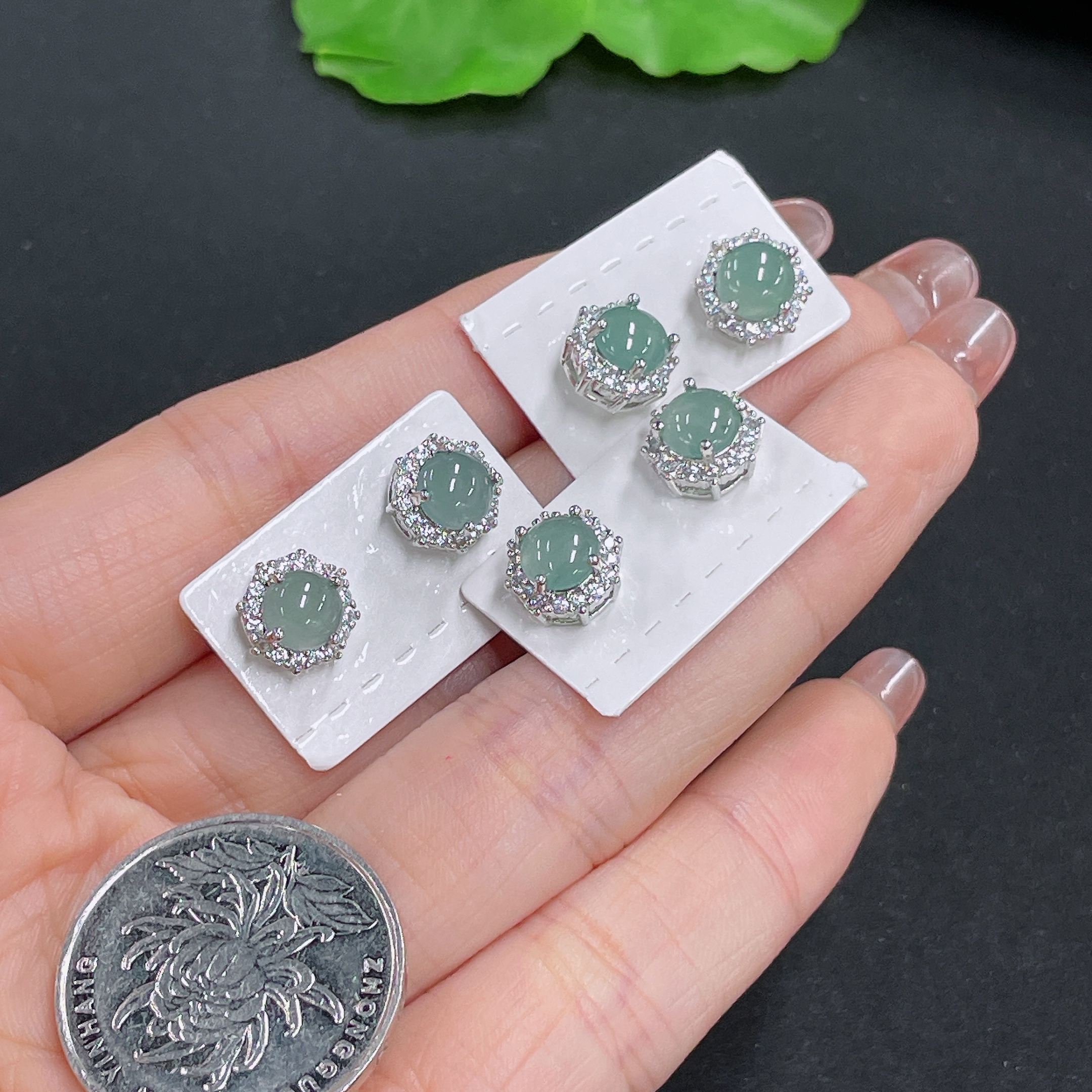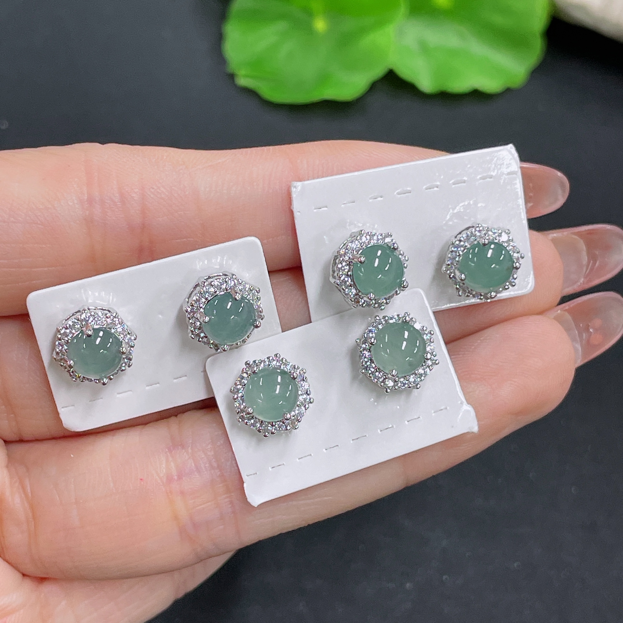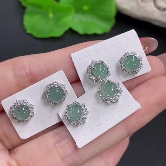 Jadeite Inlaid Earrings Sell as a Lot (Non-Gold Inlaid)
