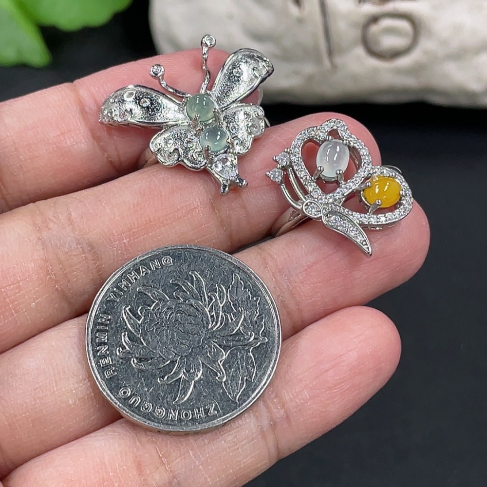 Jadeite Inlaid Ring Non-Gold Sell as a Lot