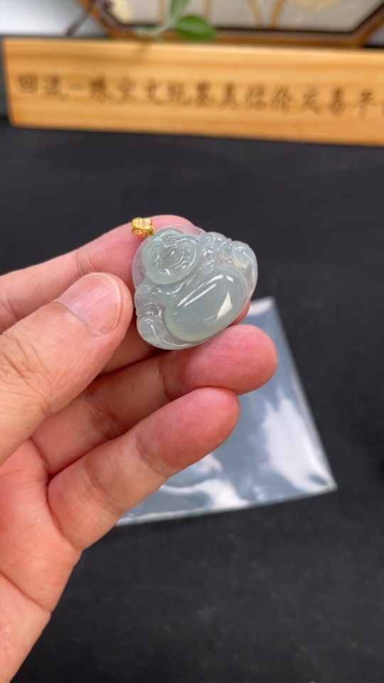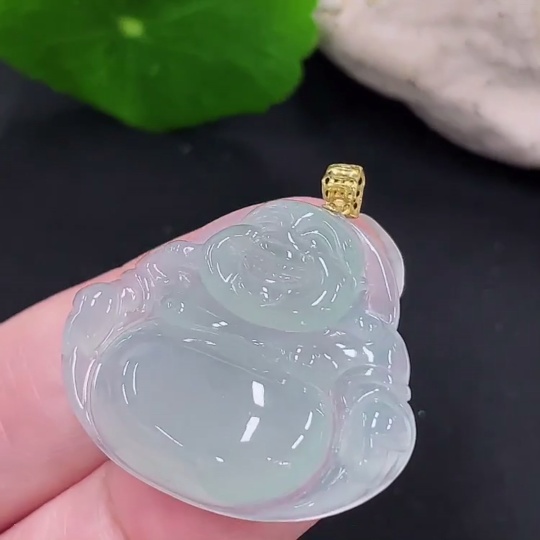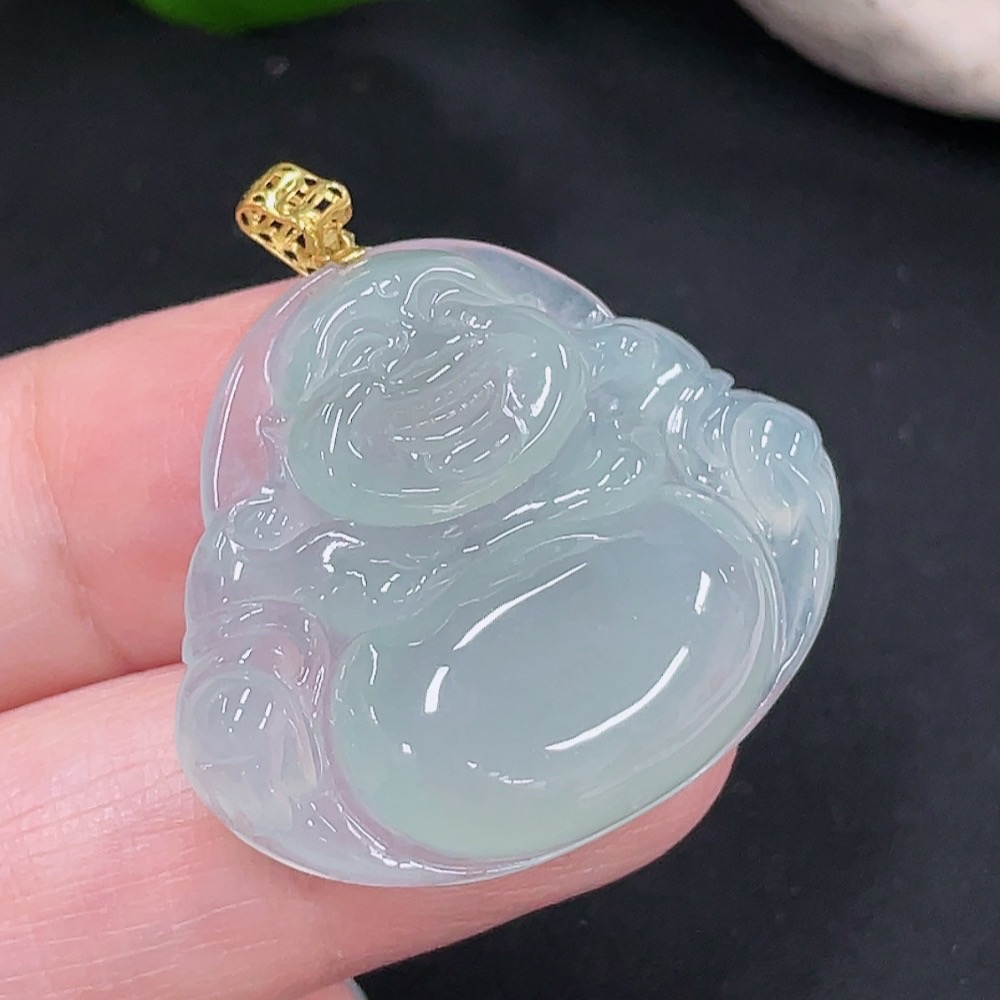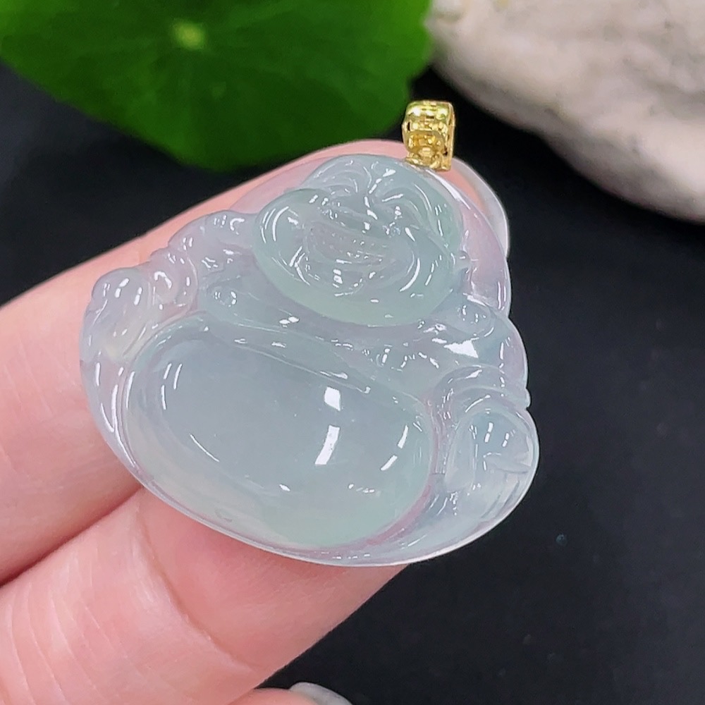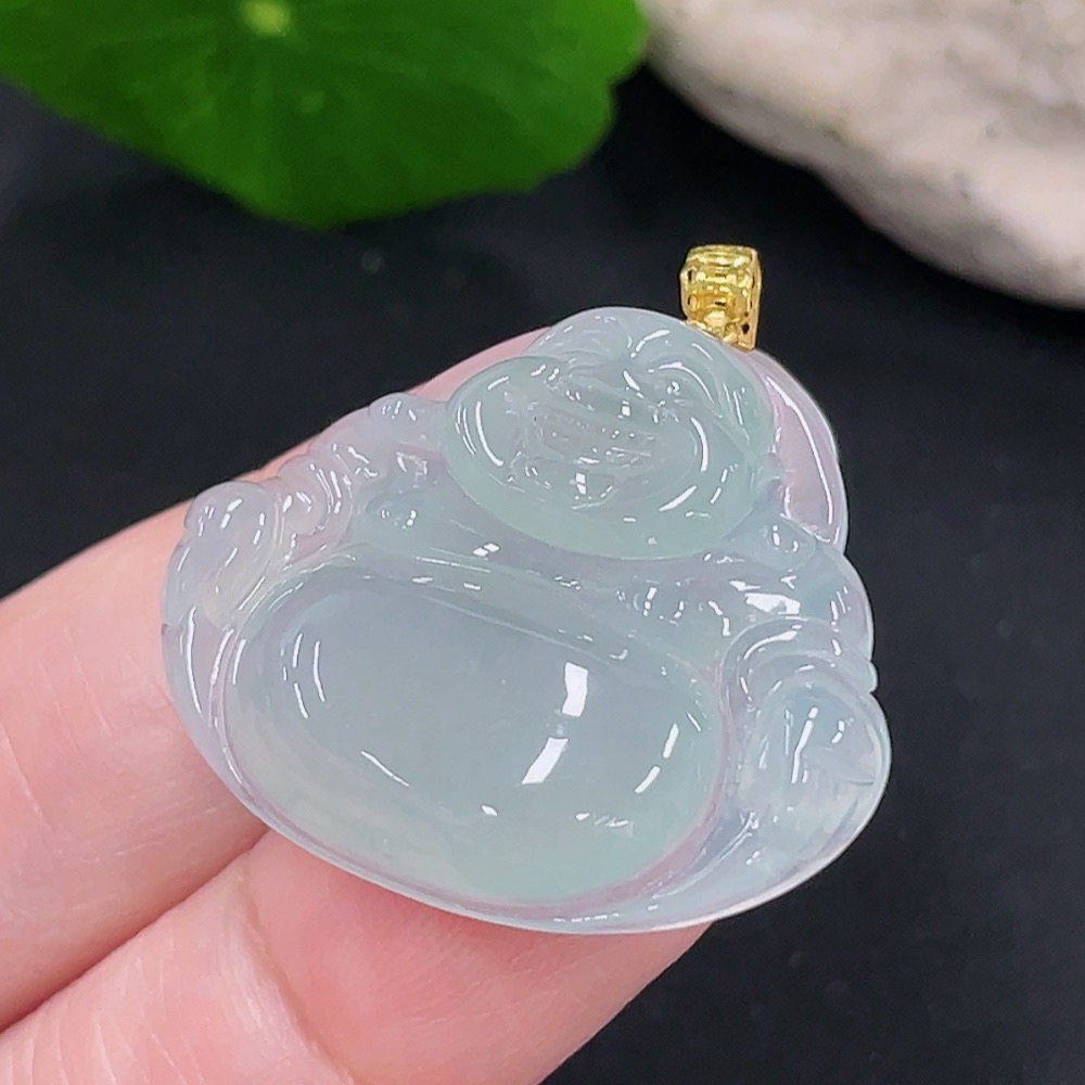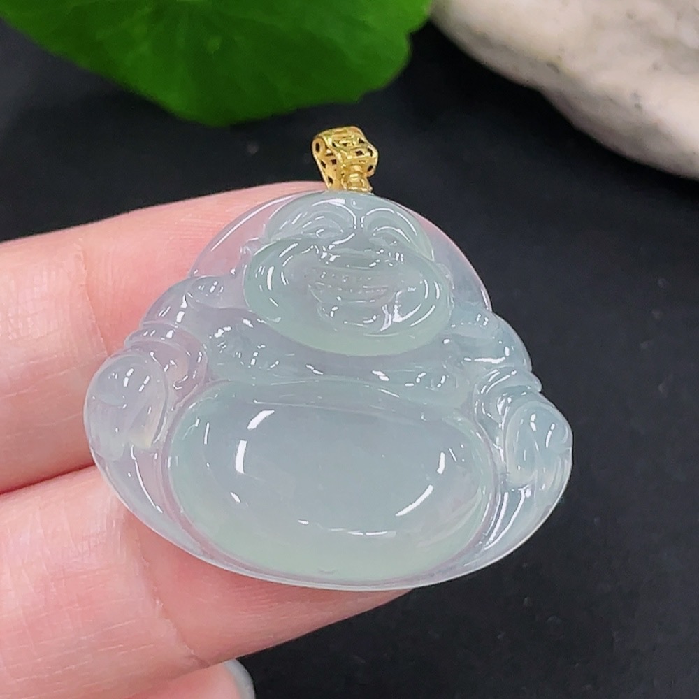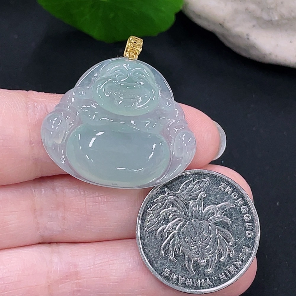 Jadeite Buddha Pendant 18K Gold Total Weight Approx. 7g