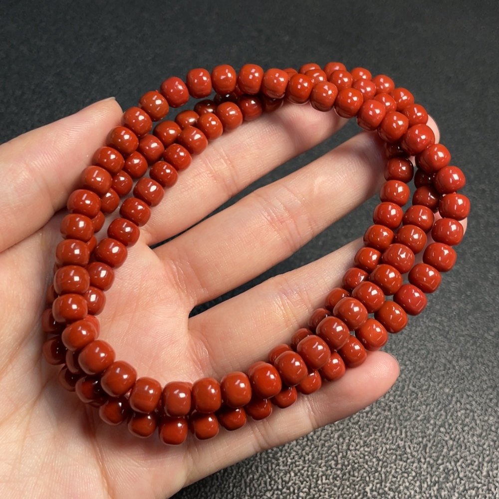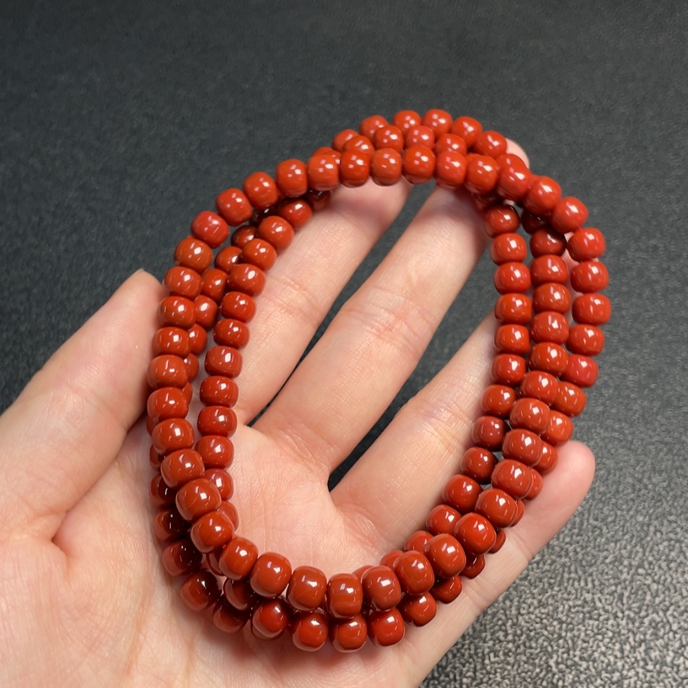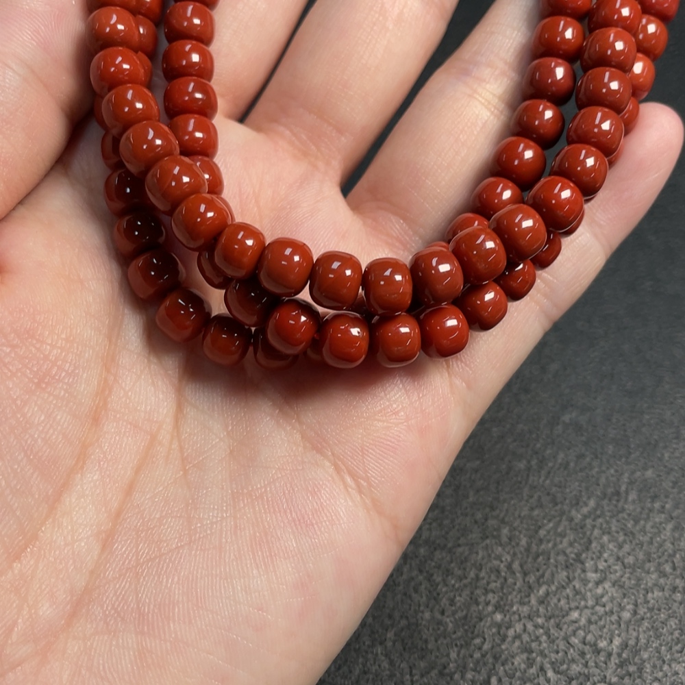 Red Agate Bead Necklace with Visible Organic Matter, Total Weight Approx. 49.07g, Size About 6.5mm