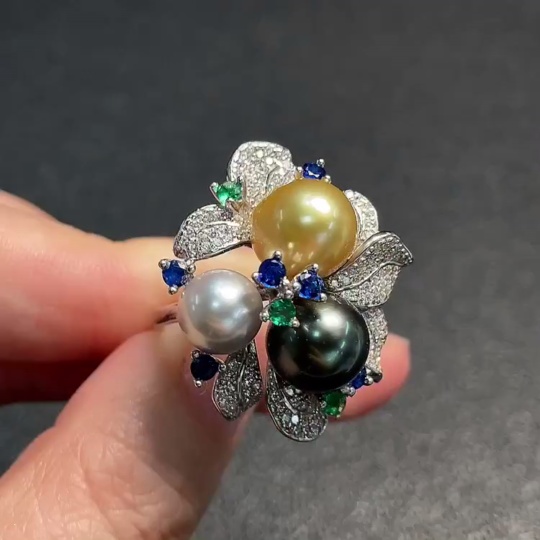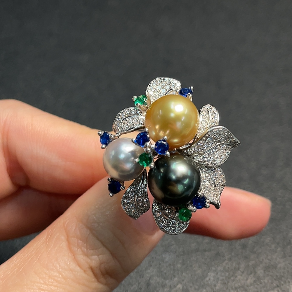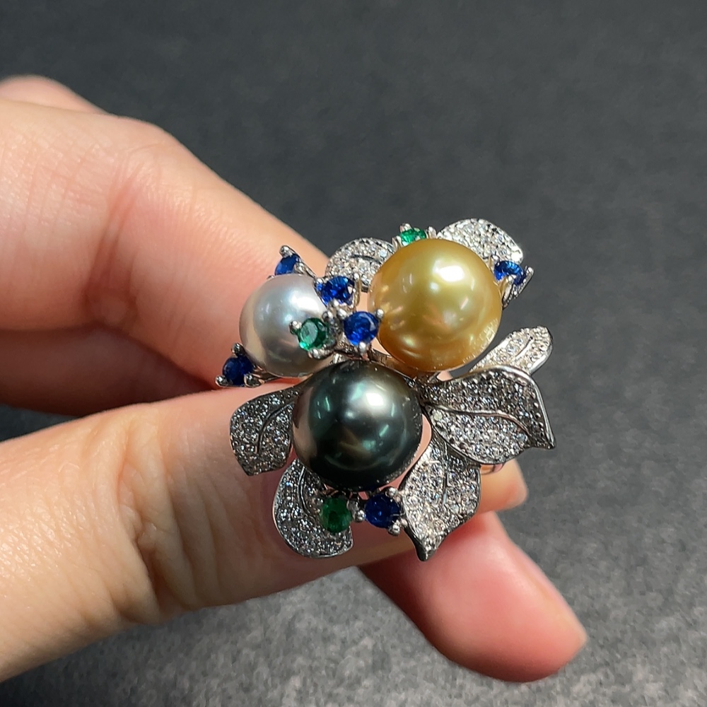 Seawater pearl ring, color origin undetermined, adjustable, non-gold, total weight approximately 9.80g, size about 7.7-9.6mm