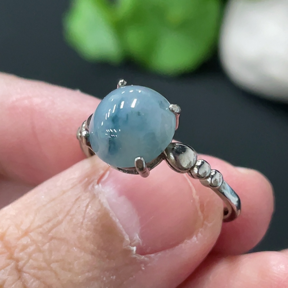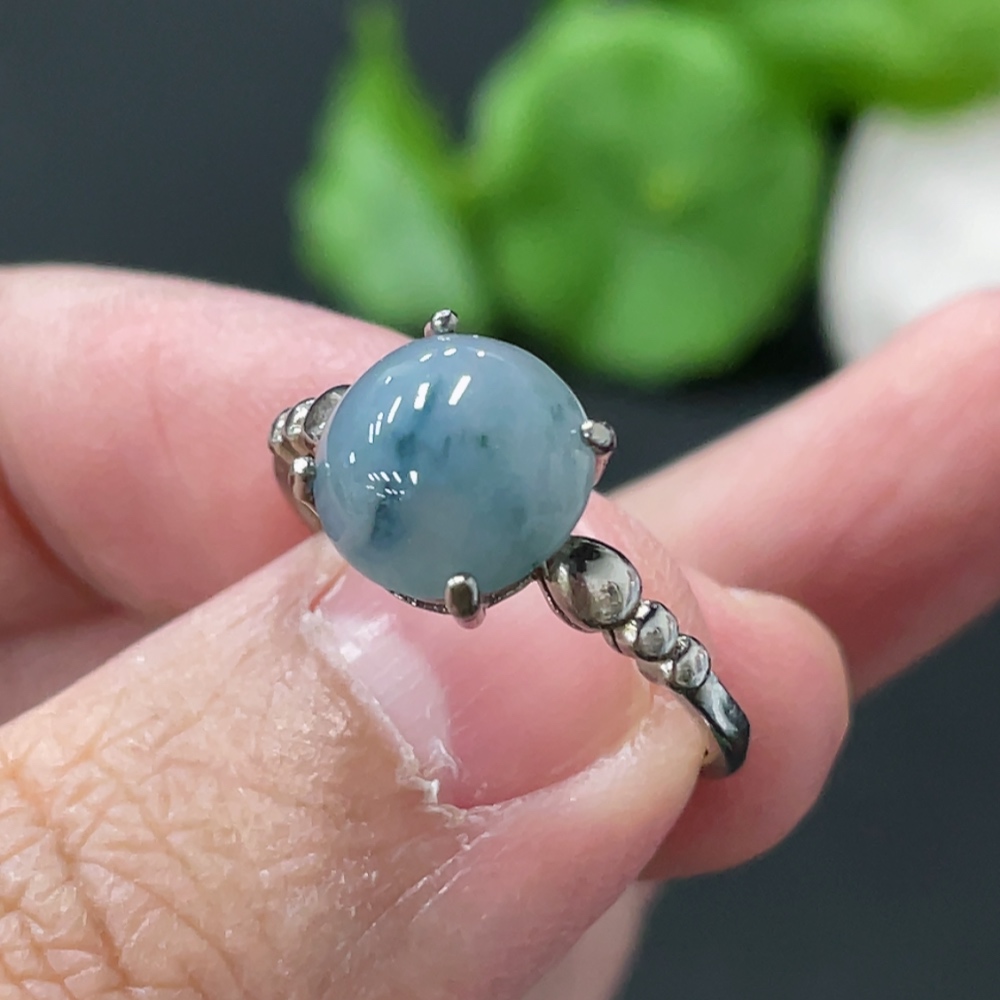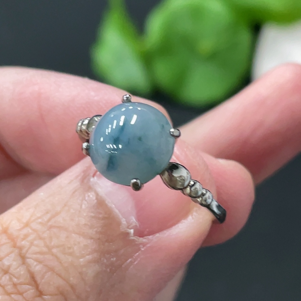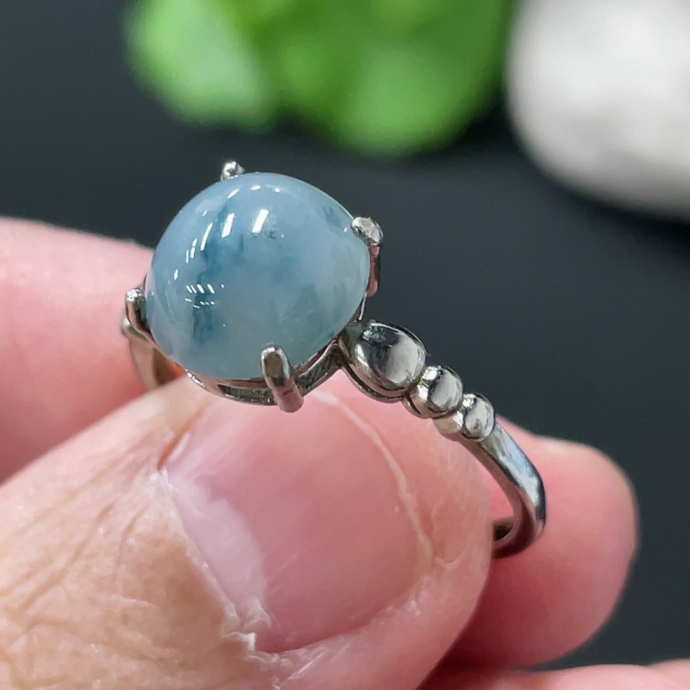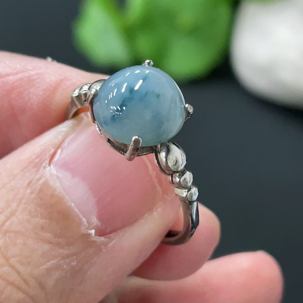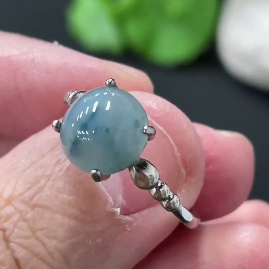 Jadeite Cabochon Ring Non-Gold Setting Adjustable Size Total Weight Approx. 2.2g