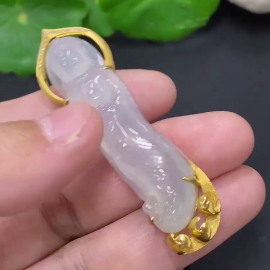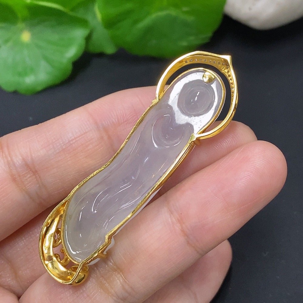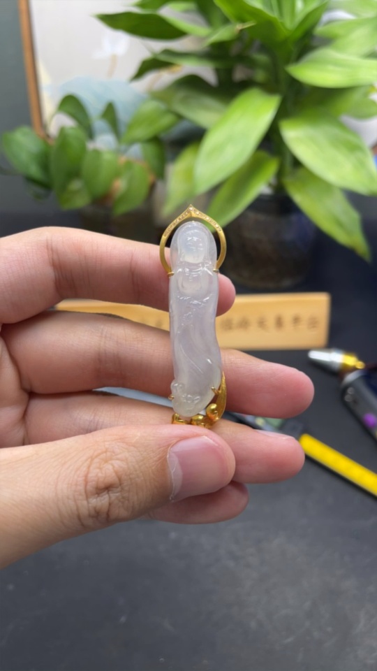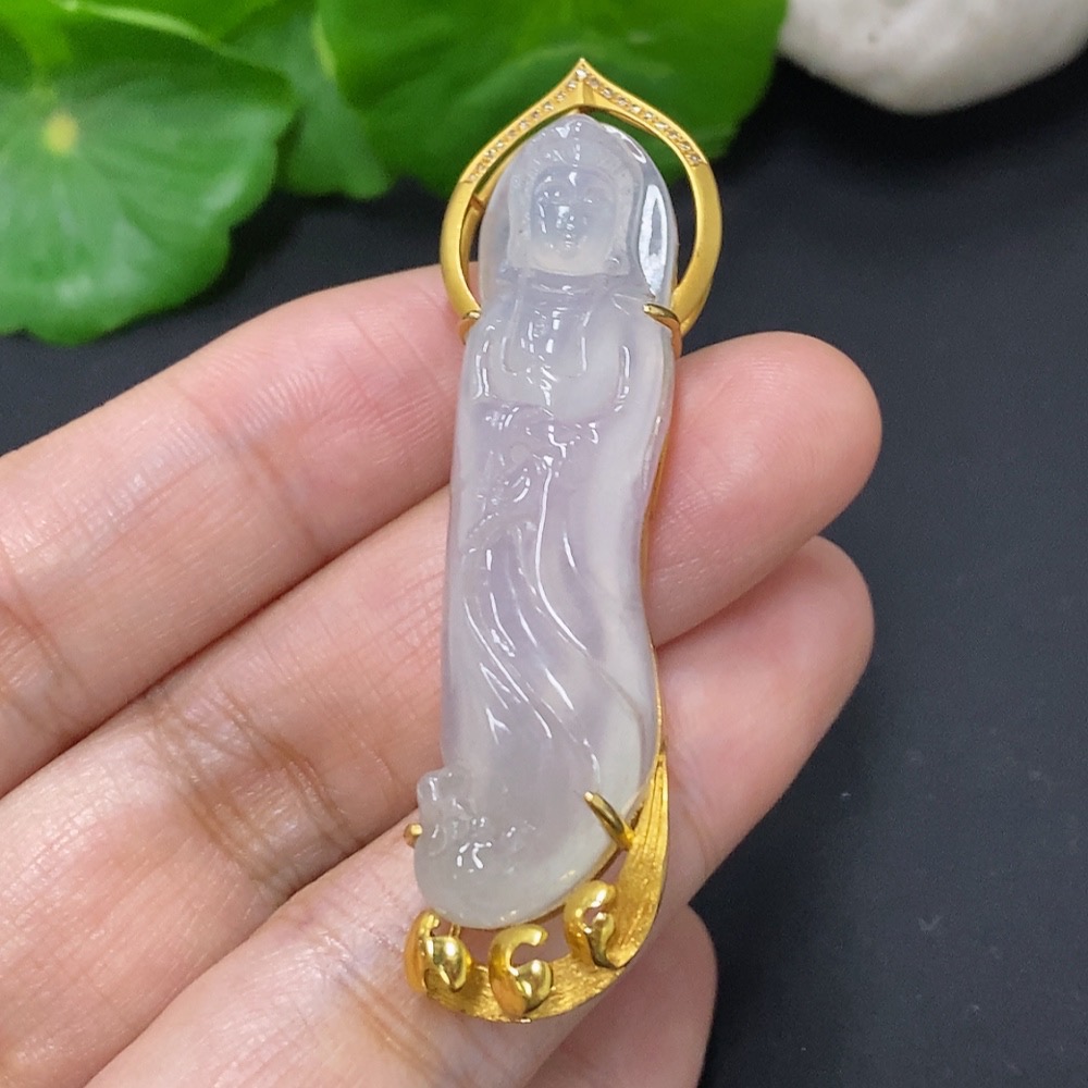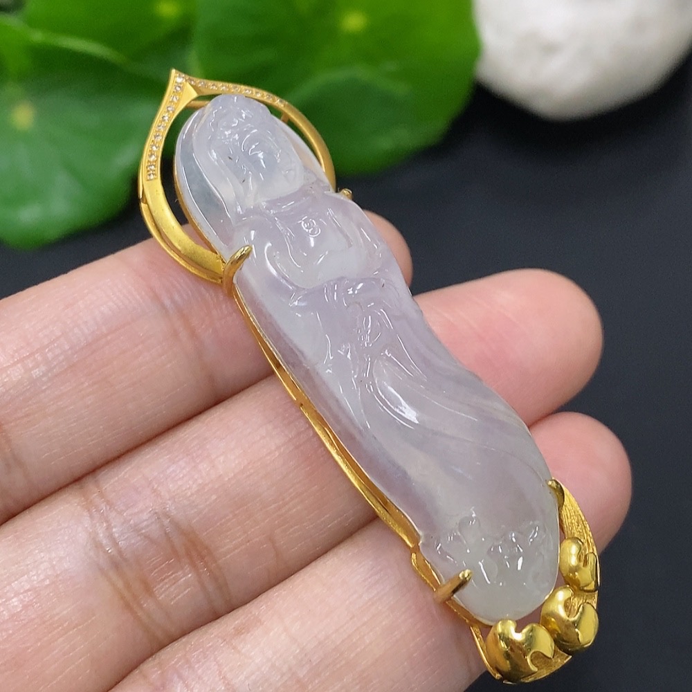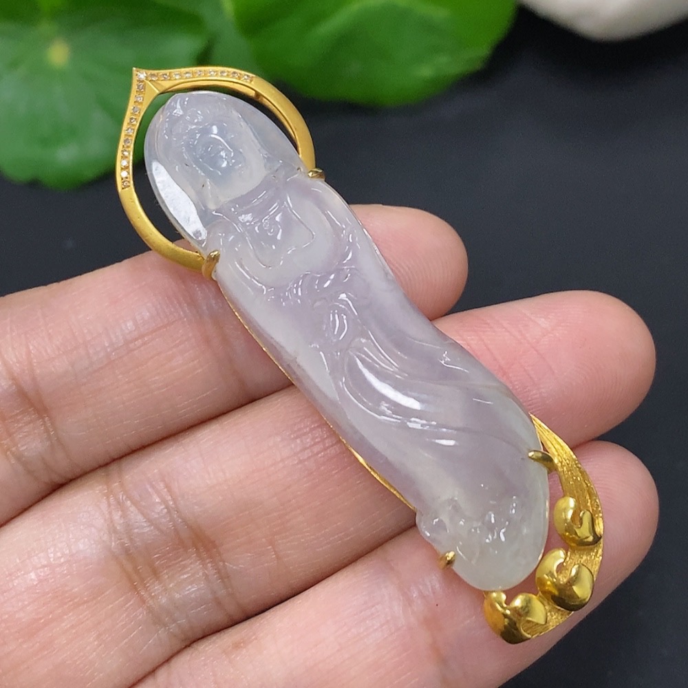 Jadeite Guanyin Pendant 18k Gold Total Weight Approx. 11.3g with Diamond Accents