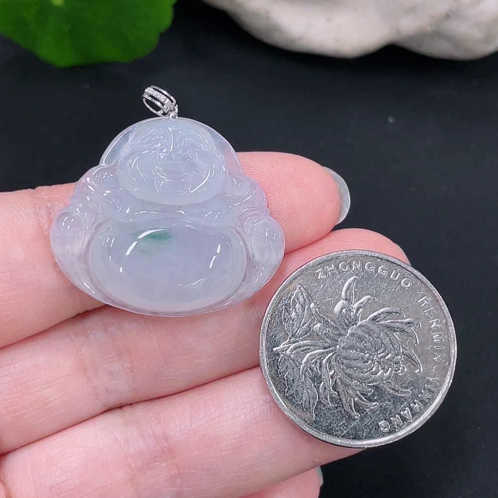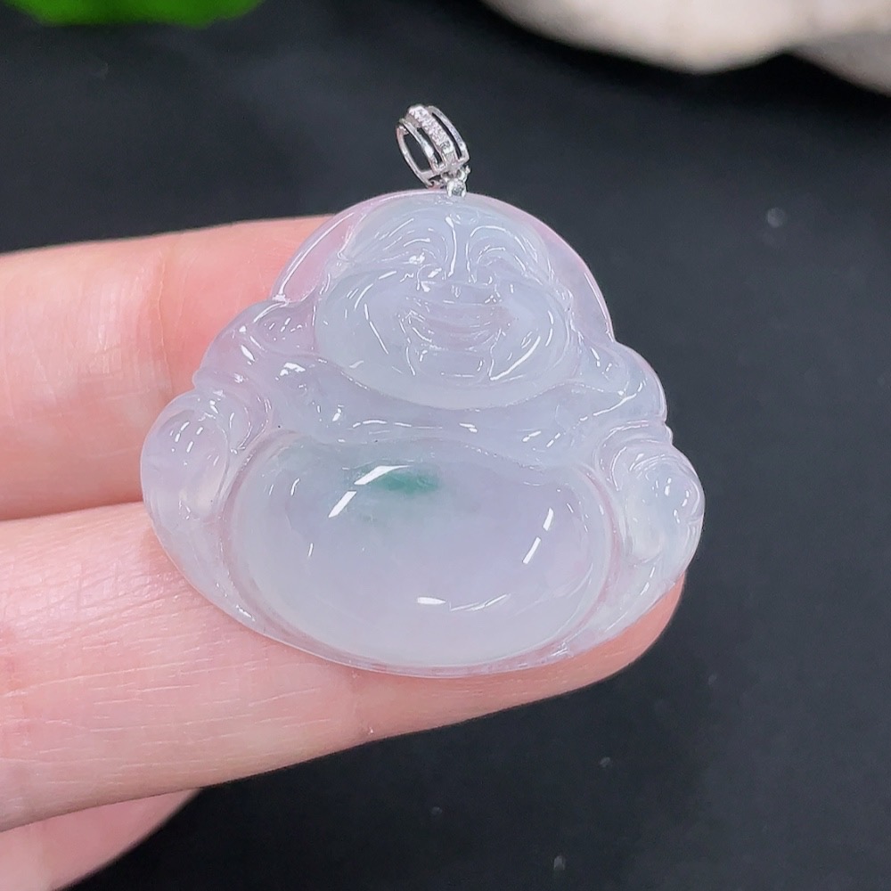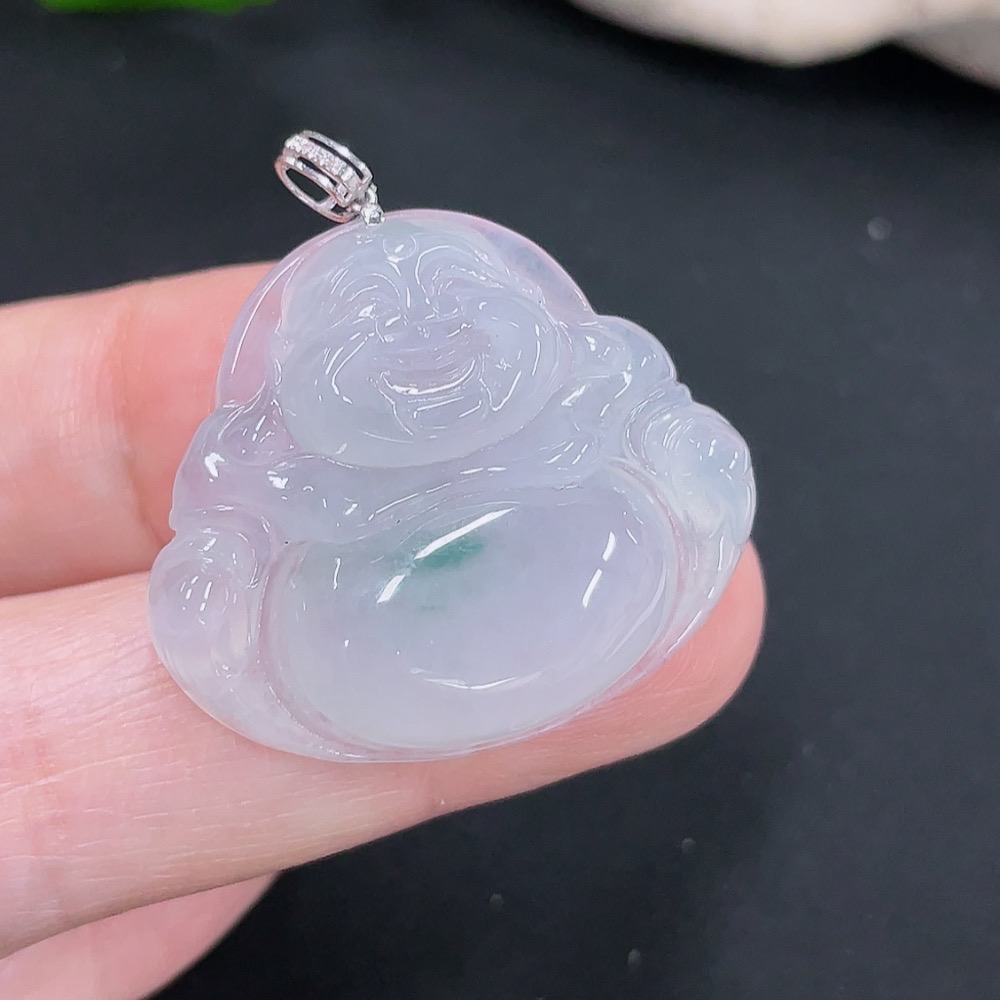 Jadeite Pendant Buddha 18k with Diamond Accent Total Weight Approx. 7.15g