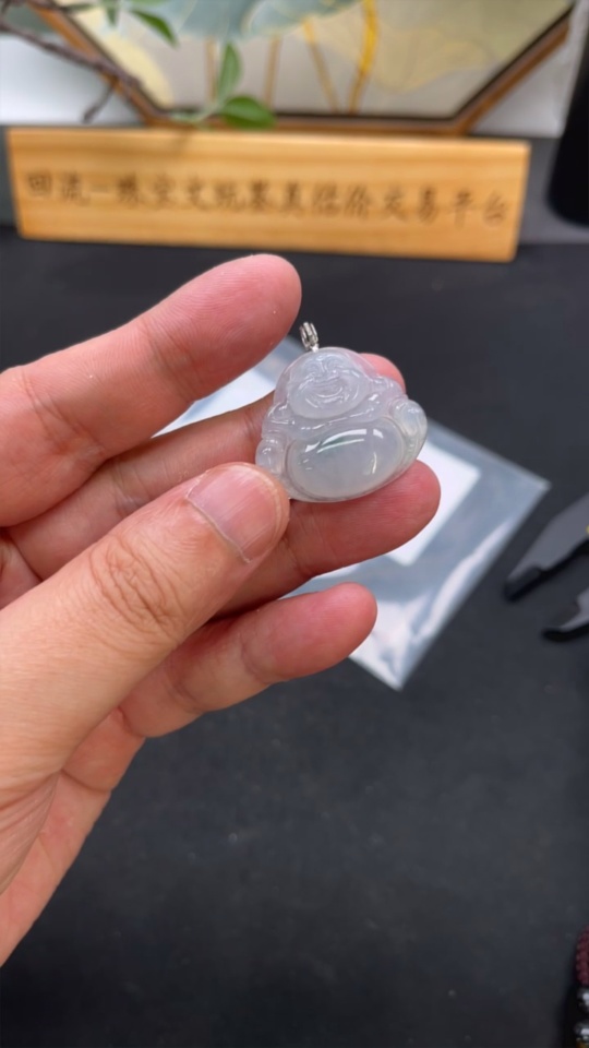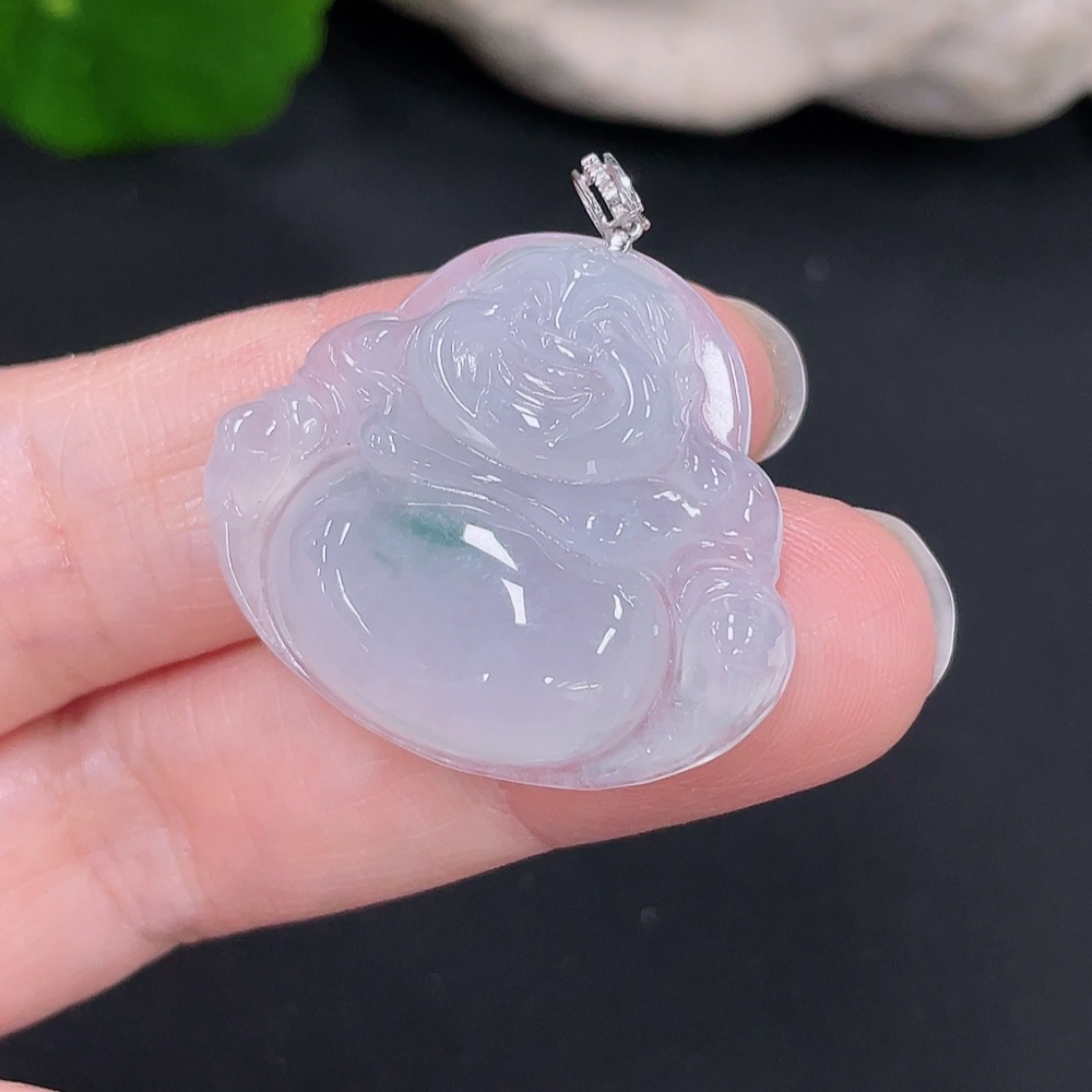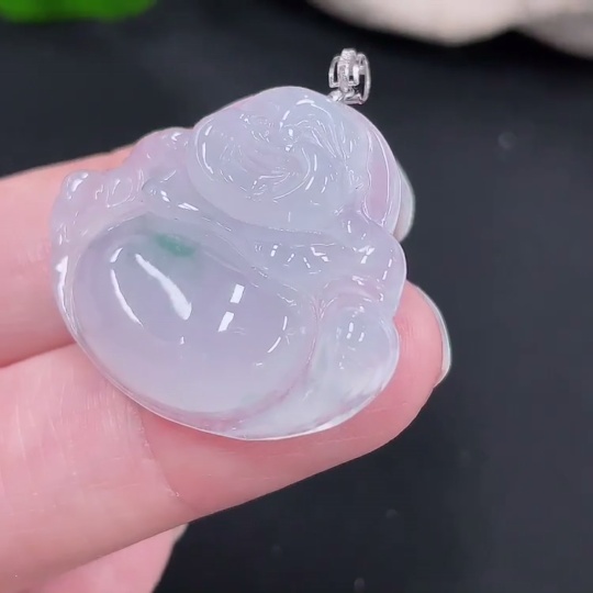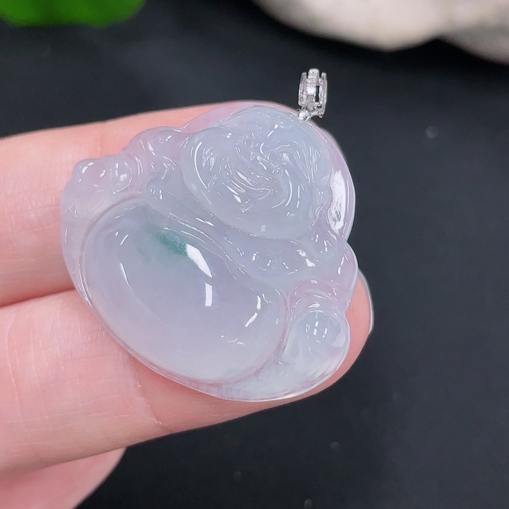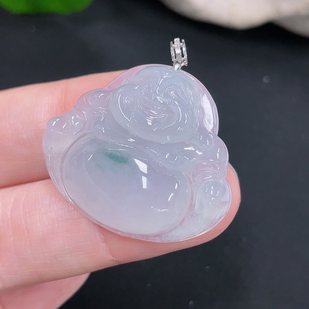 Jadeite Pendant Buddha 18k with Diamond Accent Total Weight Approx. 7.15g
