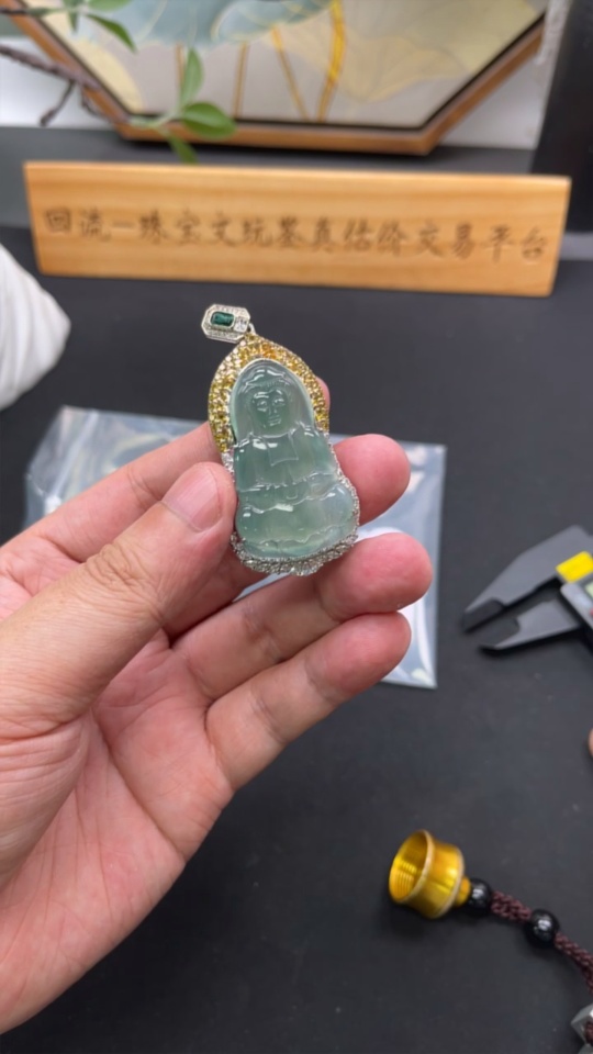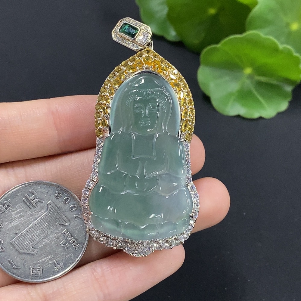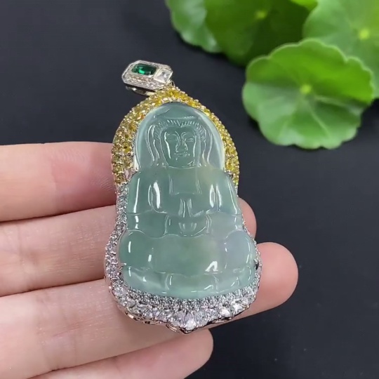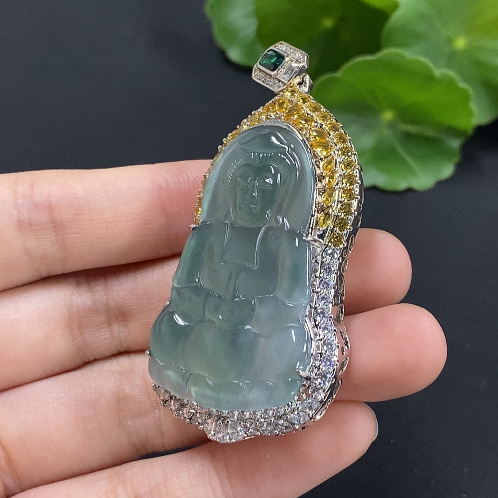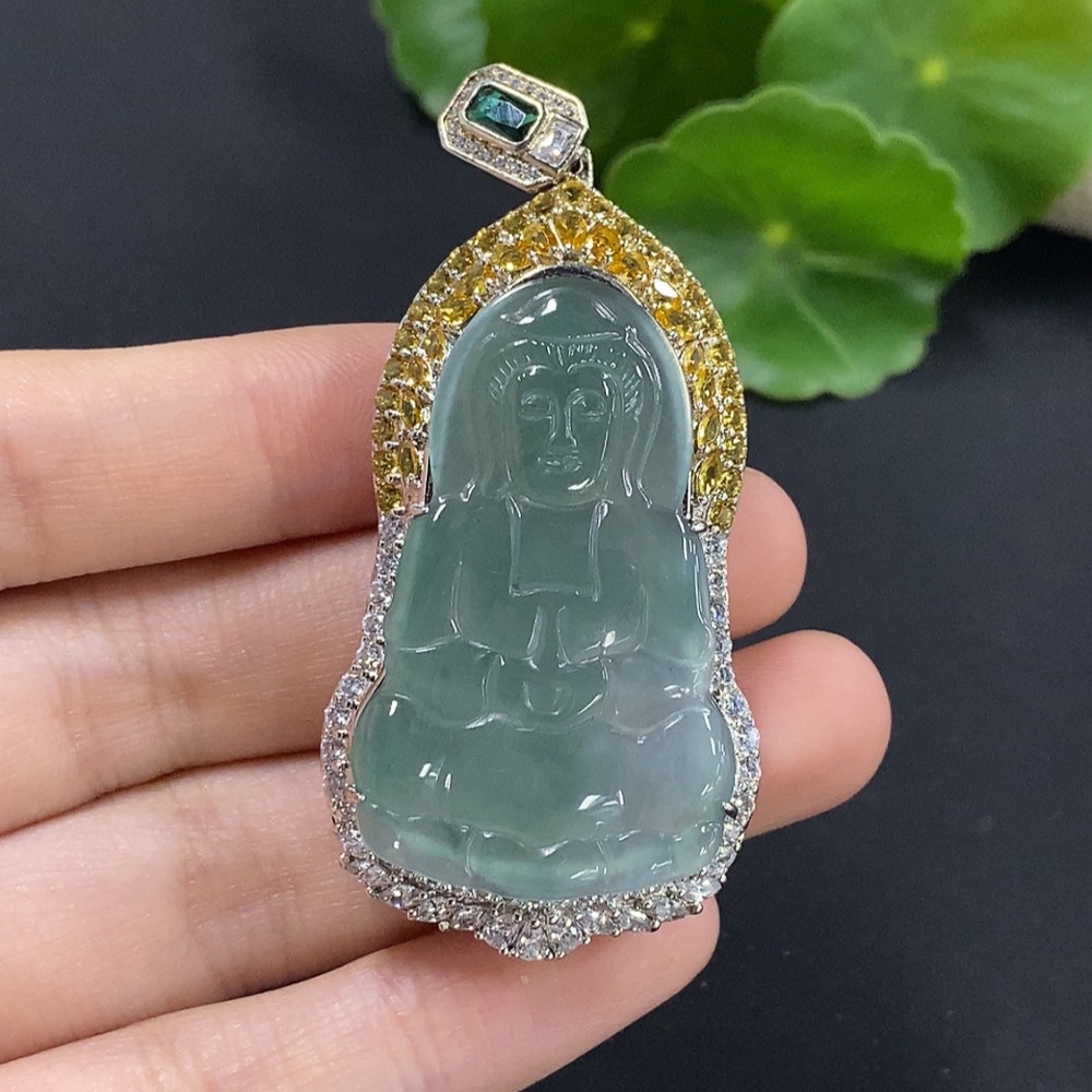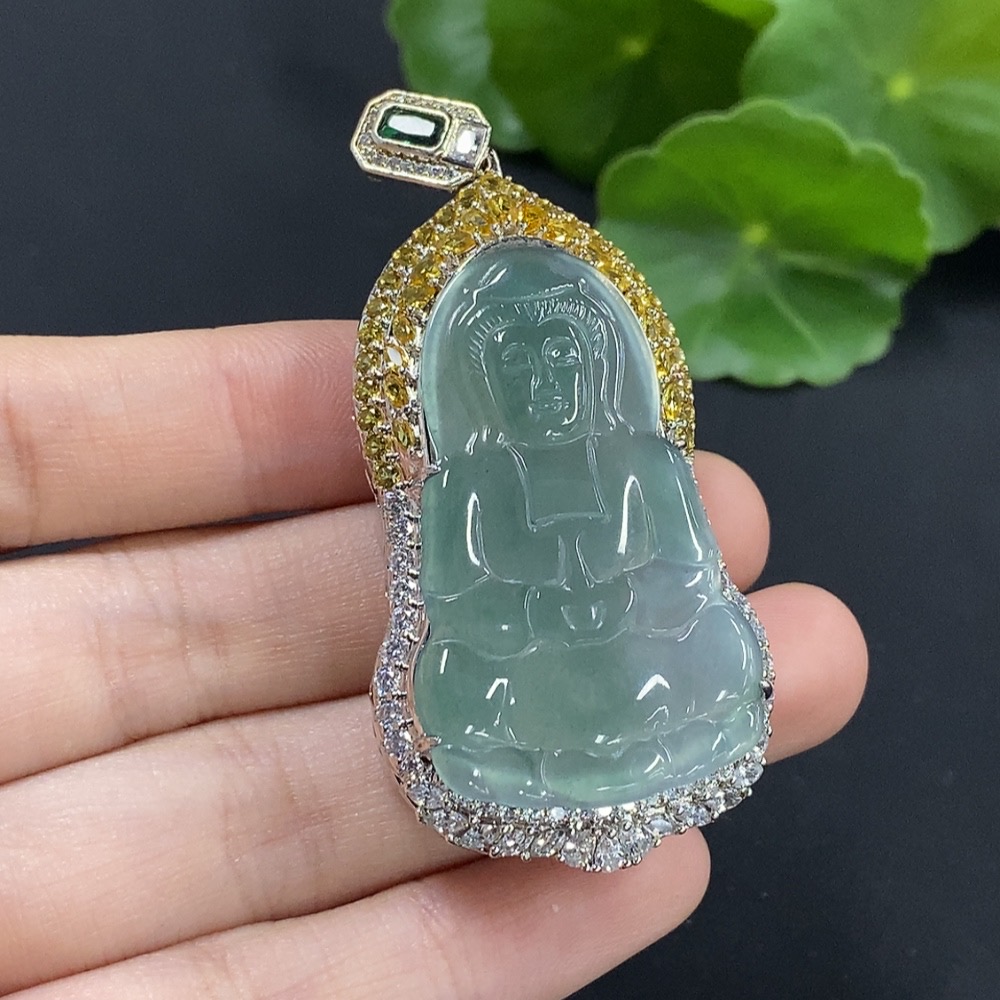Jadeite Guanyin Inlaid Pendant Non-Gold Inlaid Total Weight About 18.79g
