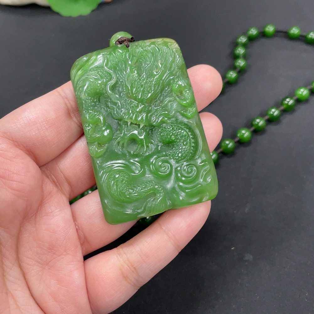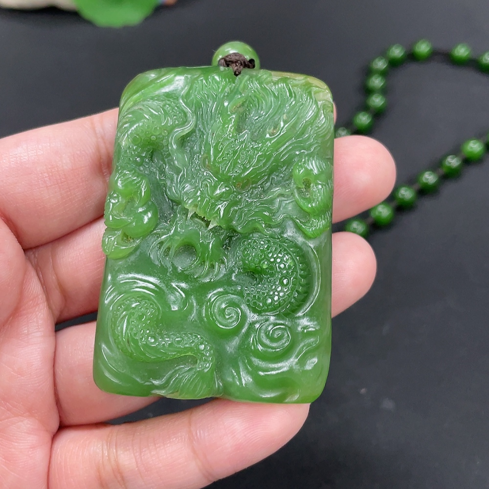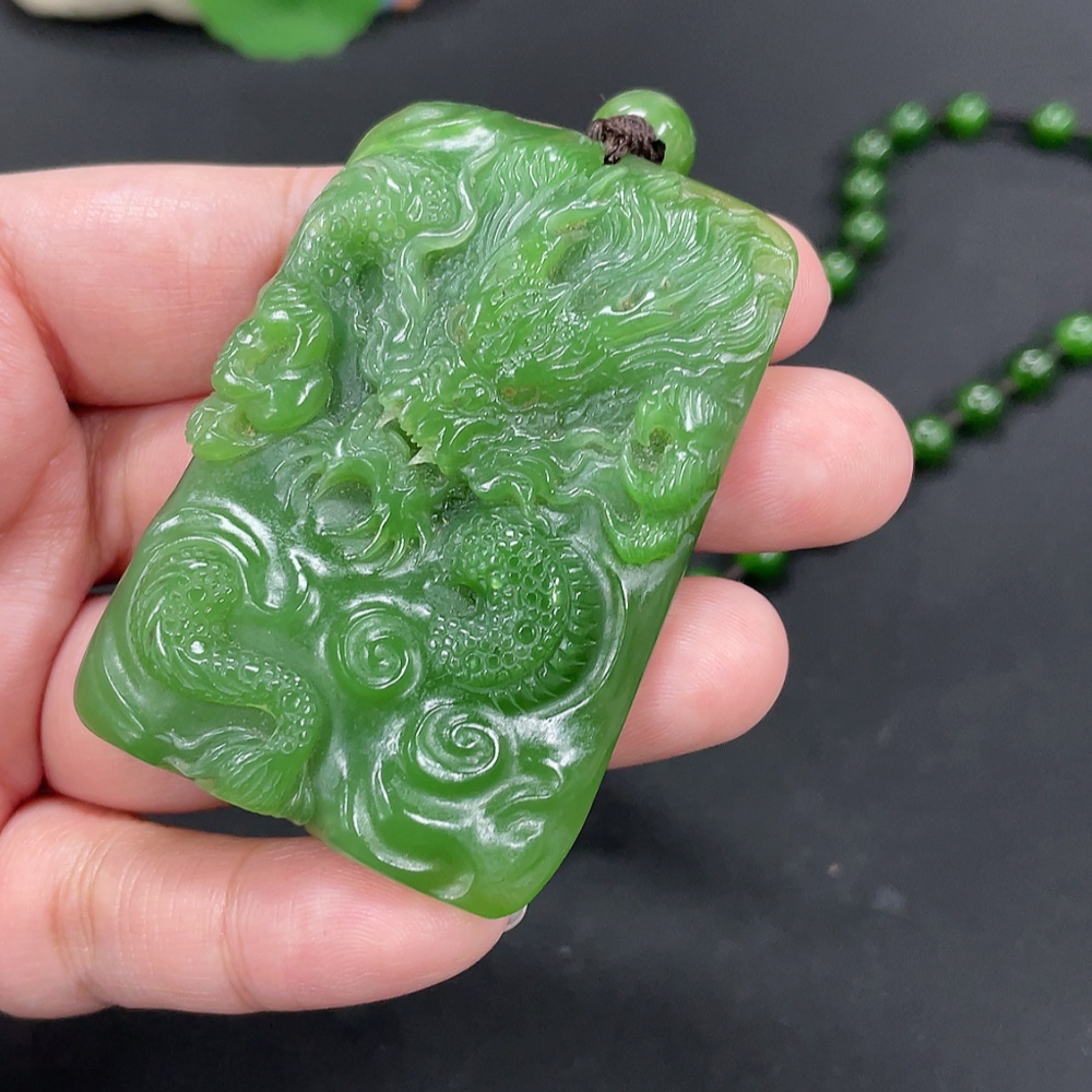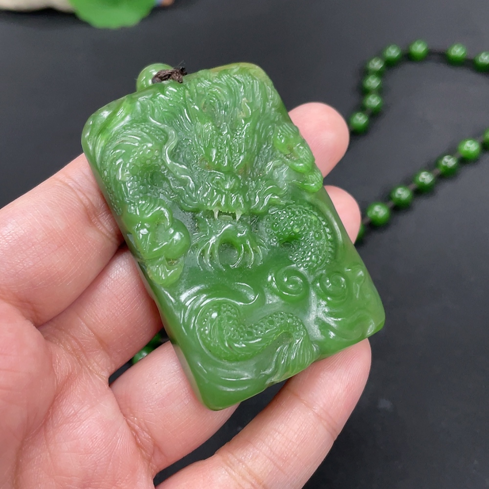 Hetian Jade Pendant Dragon Total Weight Approx. [Including Chain] 104.9g