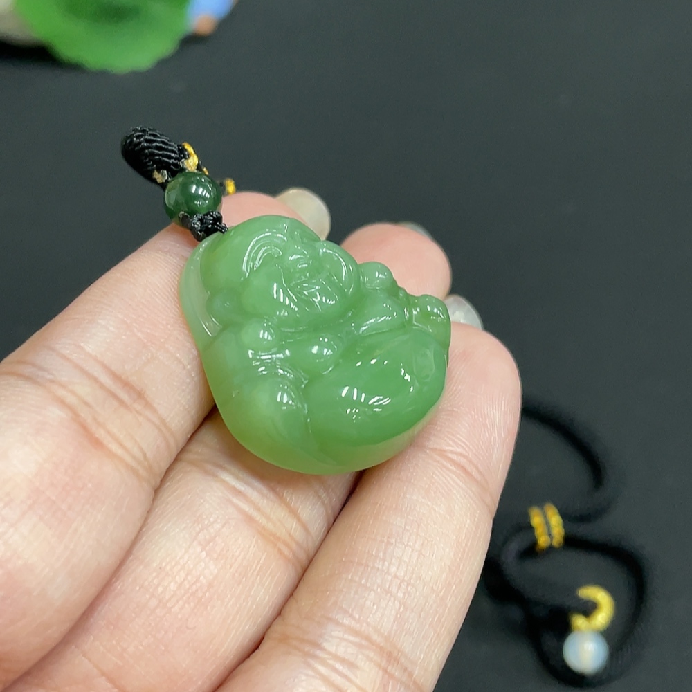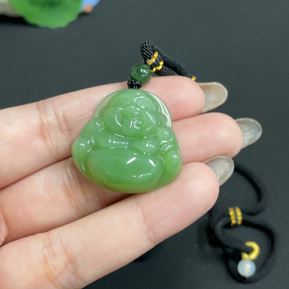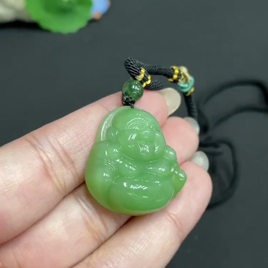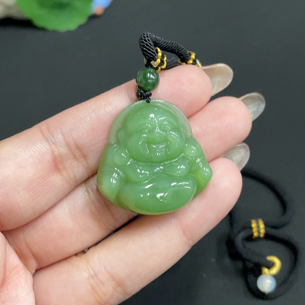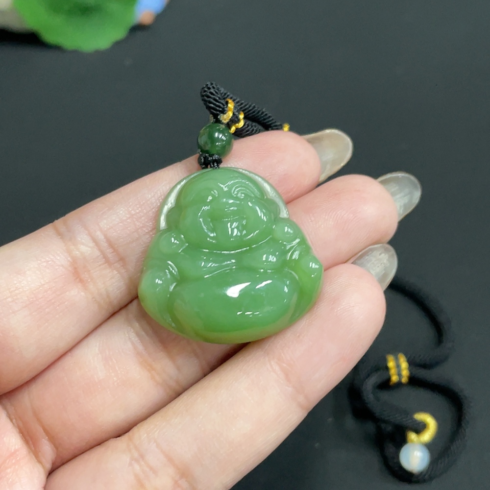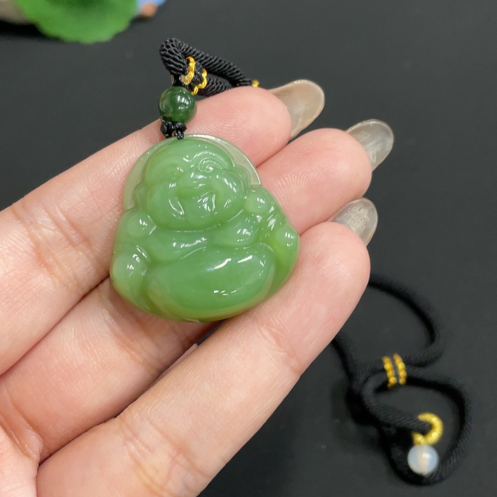 Hetian Jade Jasper Pendant Buddha with Non-Hetian Jade Beads Total Weight Approx. [Including Rope] 17.1g