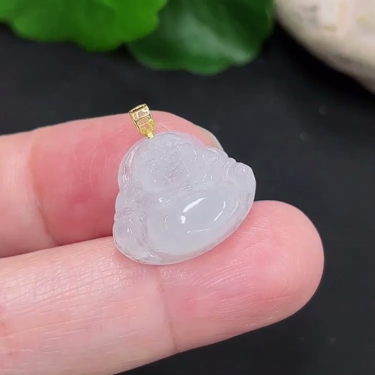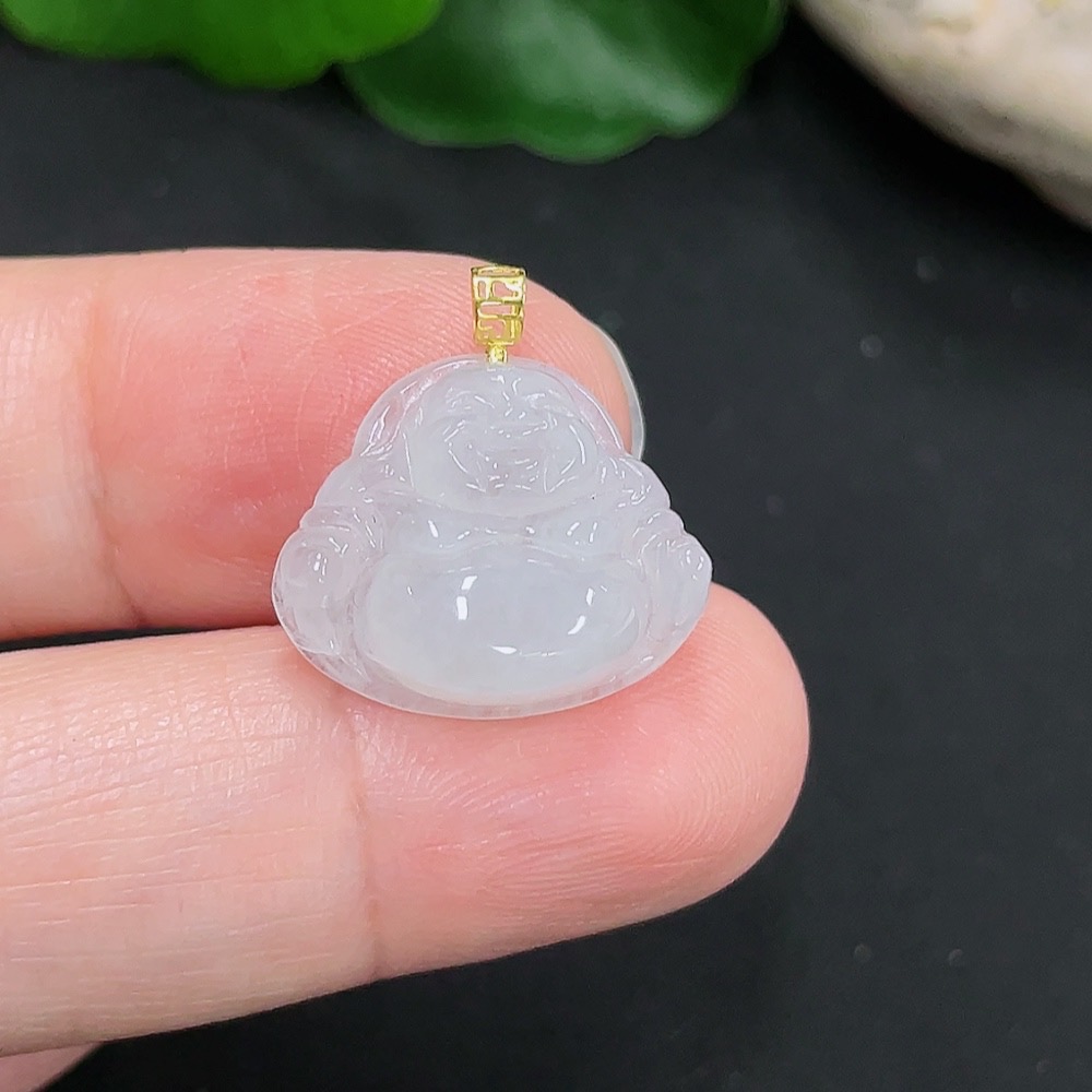 Jadeite Buddha Pendant 18K Gold Total Weight Approx. 1.8g
