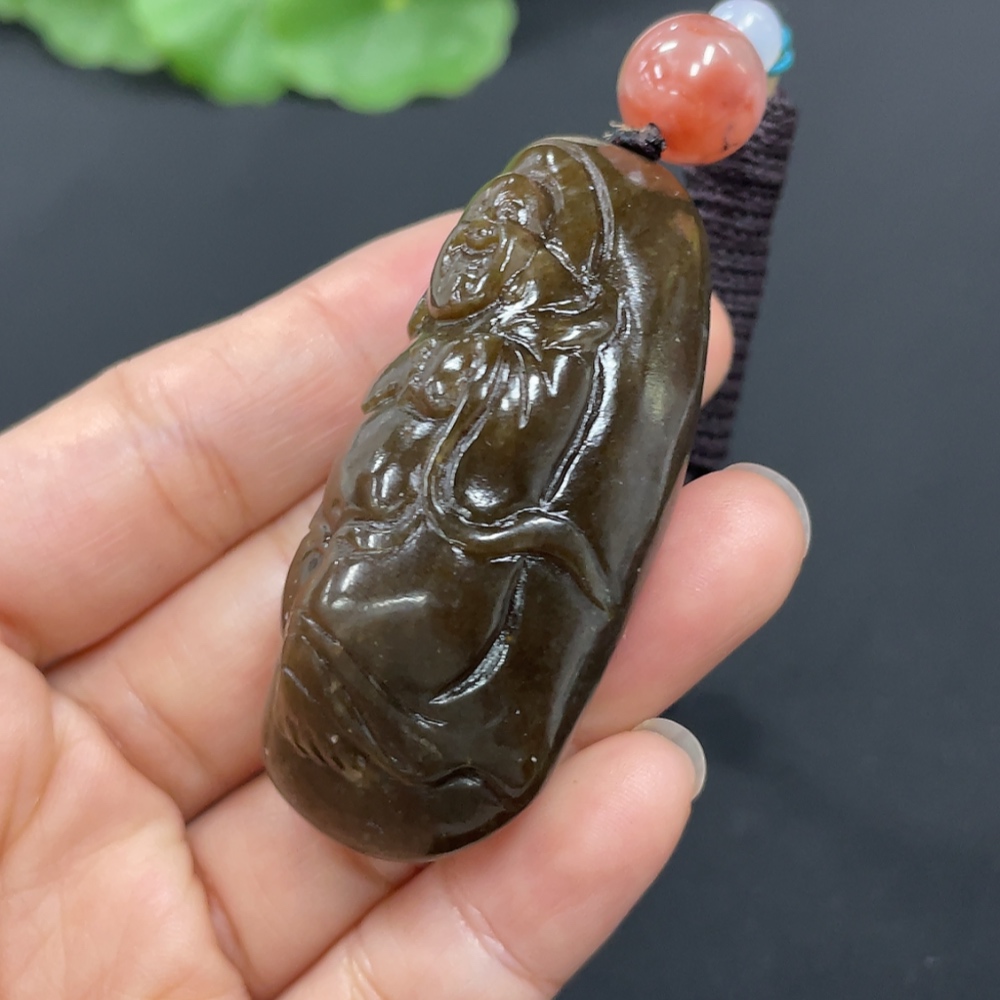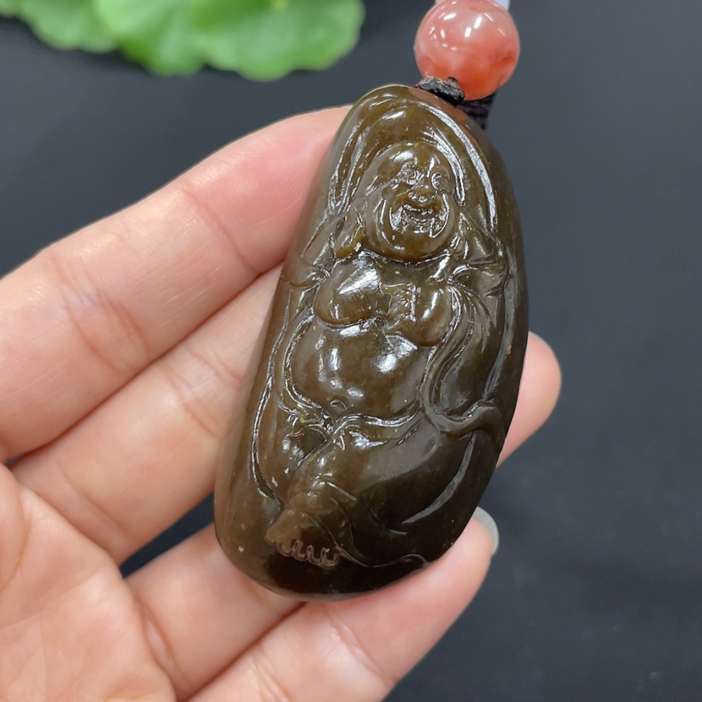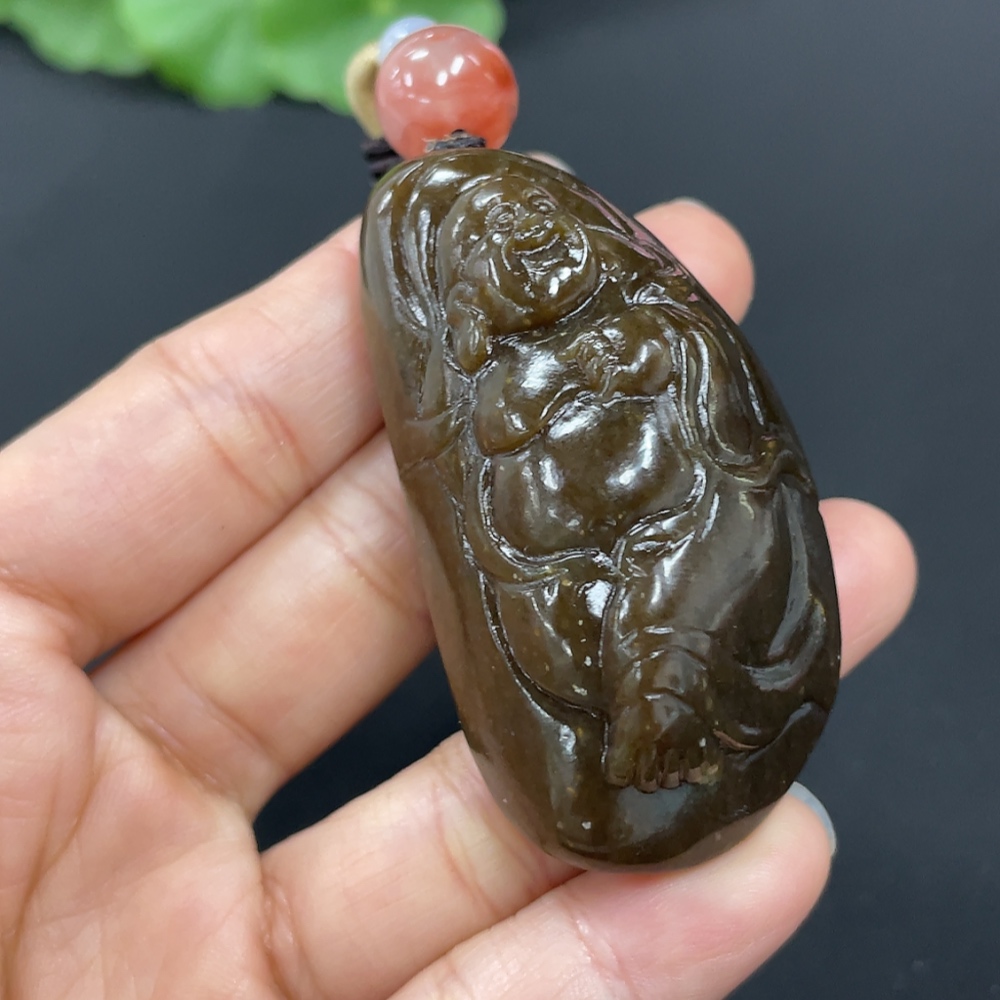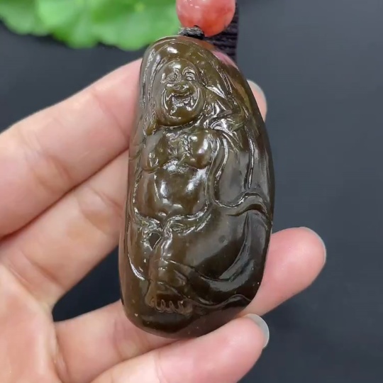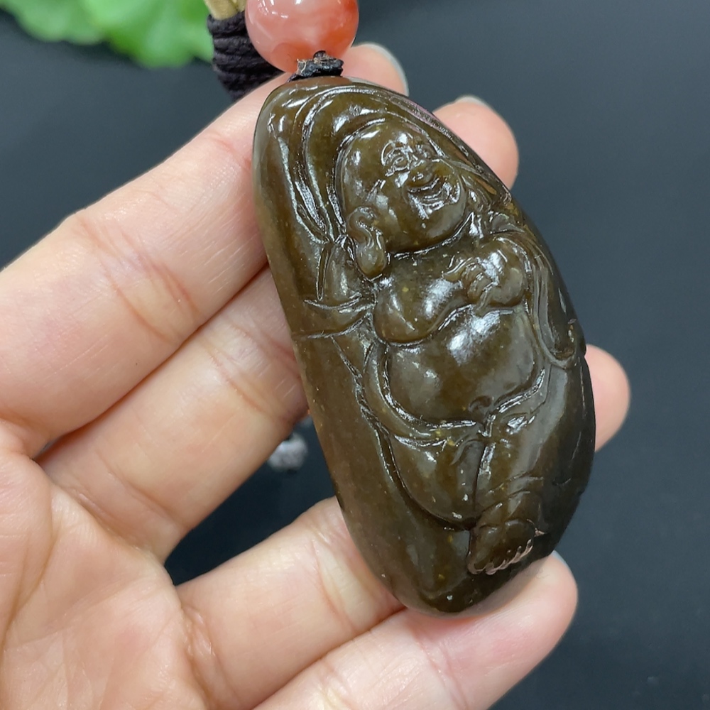 Hetian Jade Pendant - Buddha, Total Weight (including rope): Approx. 53.6g, Beads Not Hetian Jade