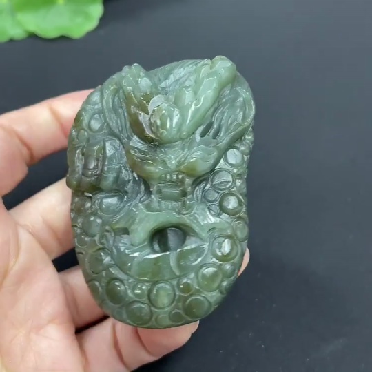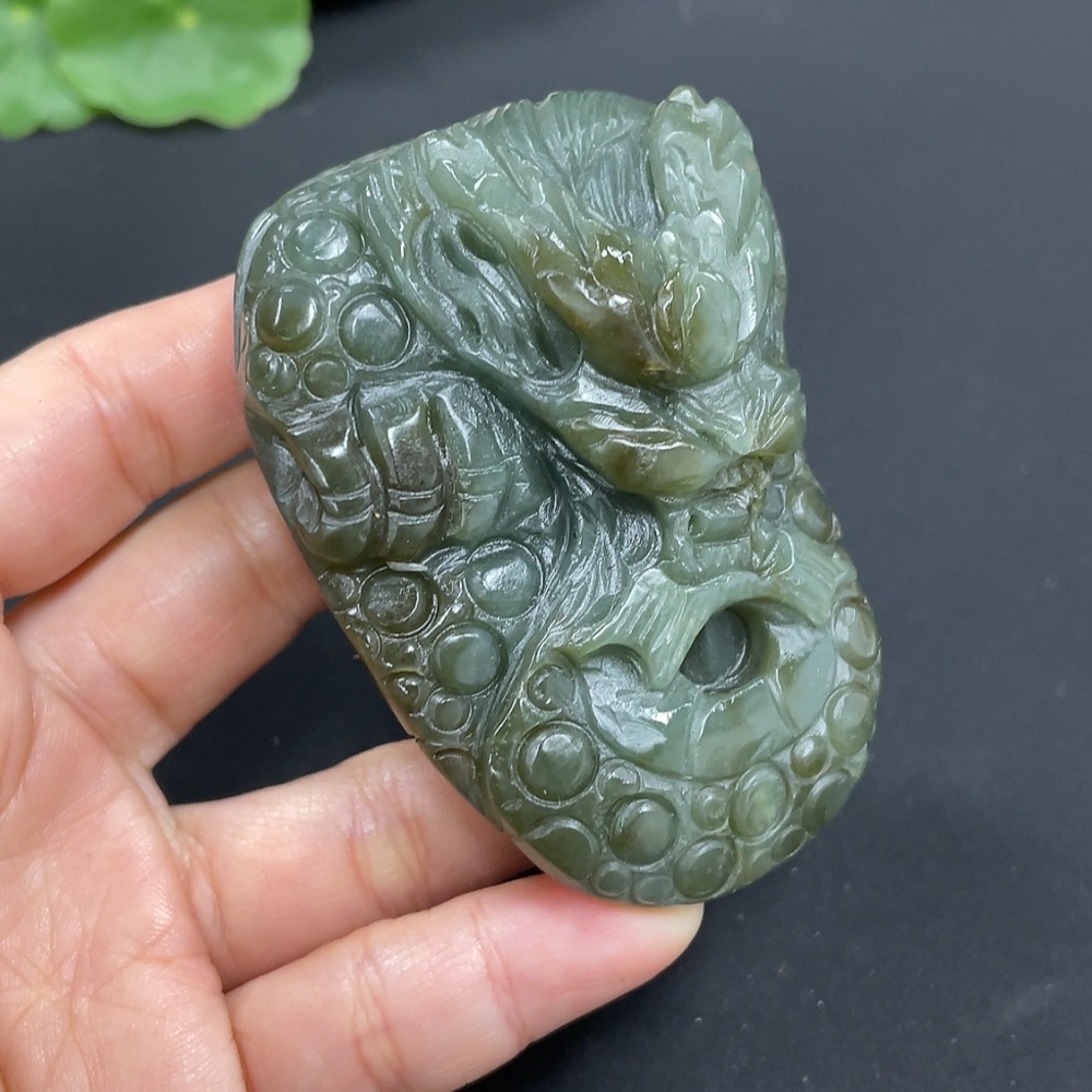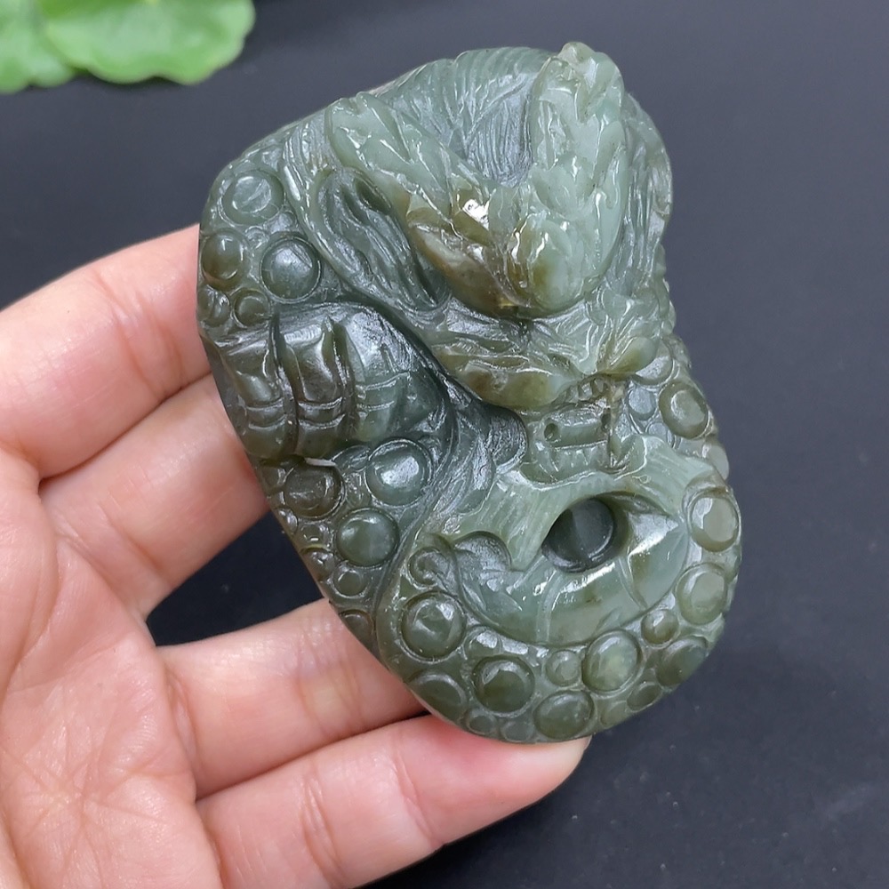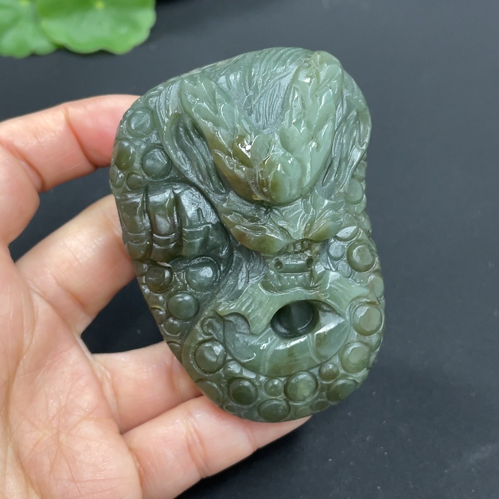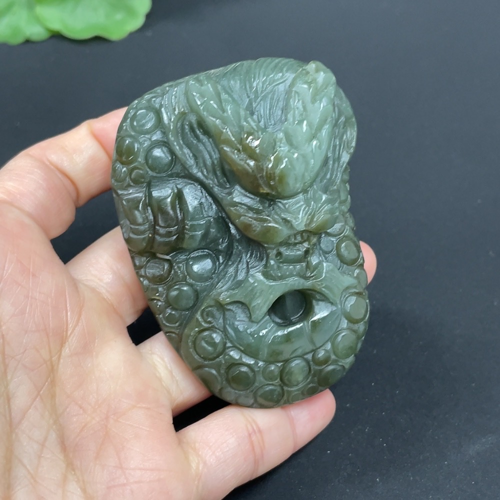 Hetian Jade Handheld Carving "Dragon Roaming the World" Total Weight Approx. 126.1g