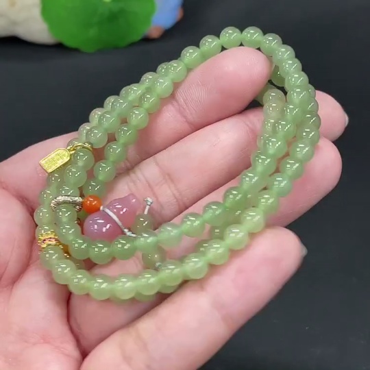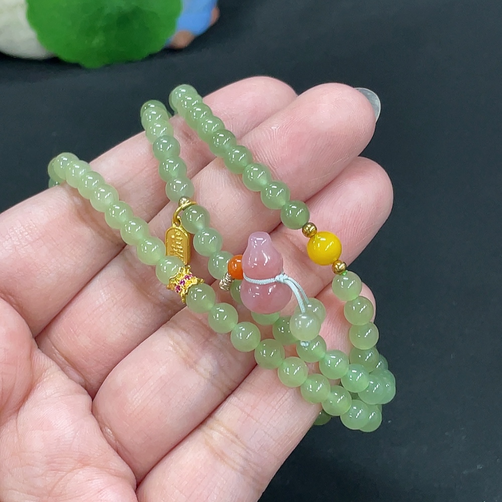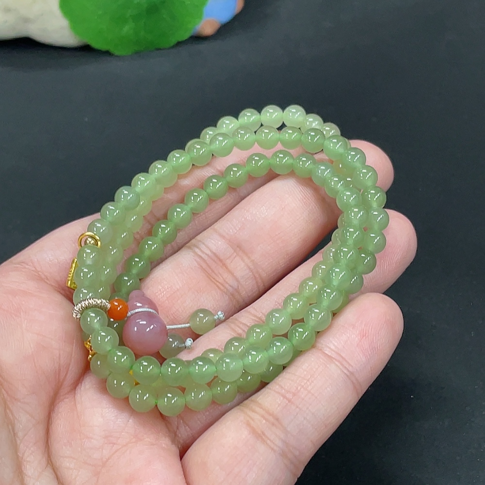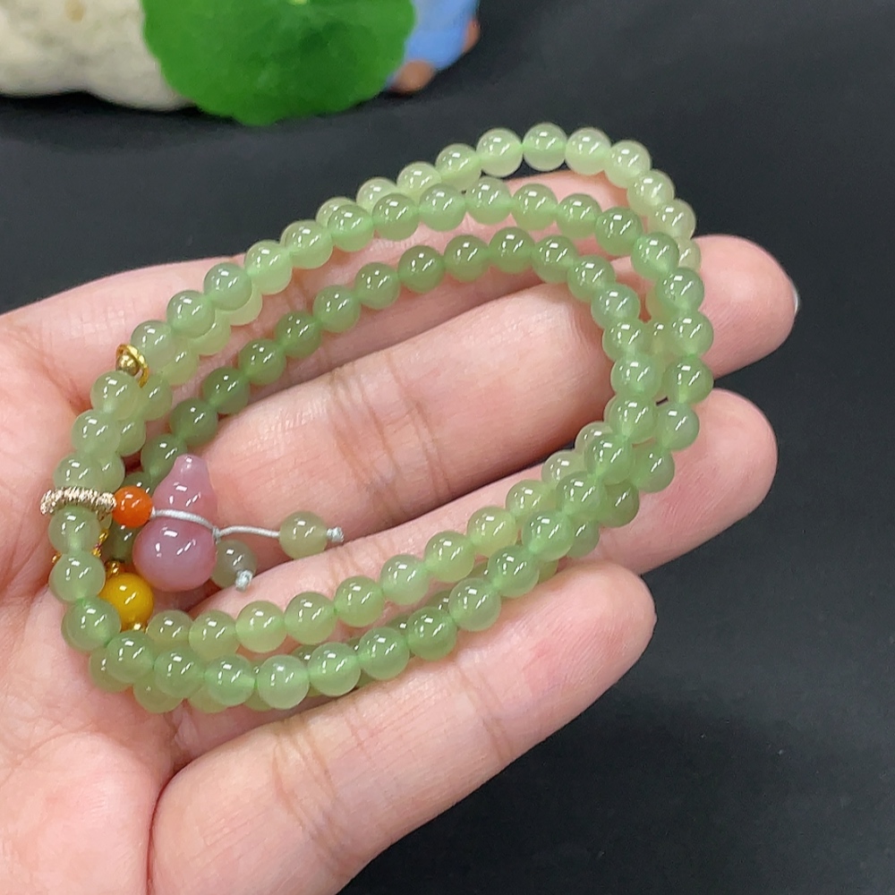 Hetian Jade Bead Necklace, approx. 4.8mm, total weight approx. 22.2g, non-Hetian Jade accessory beads
