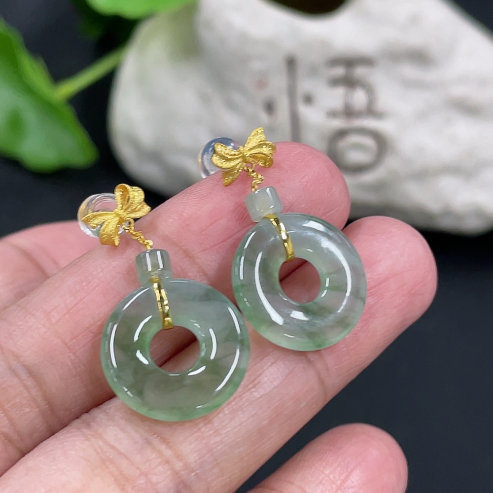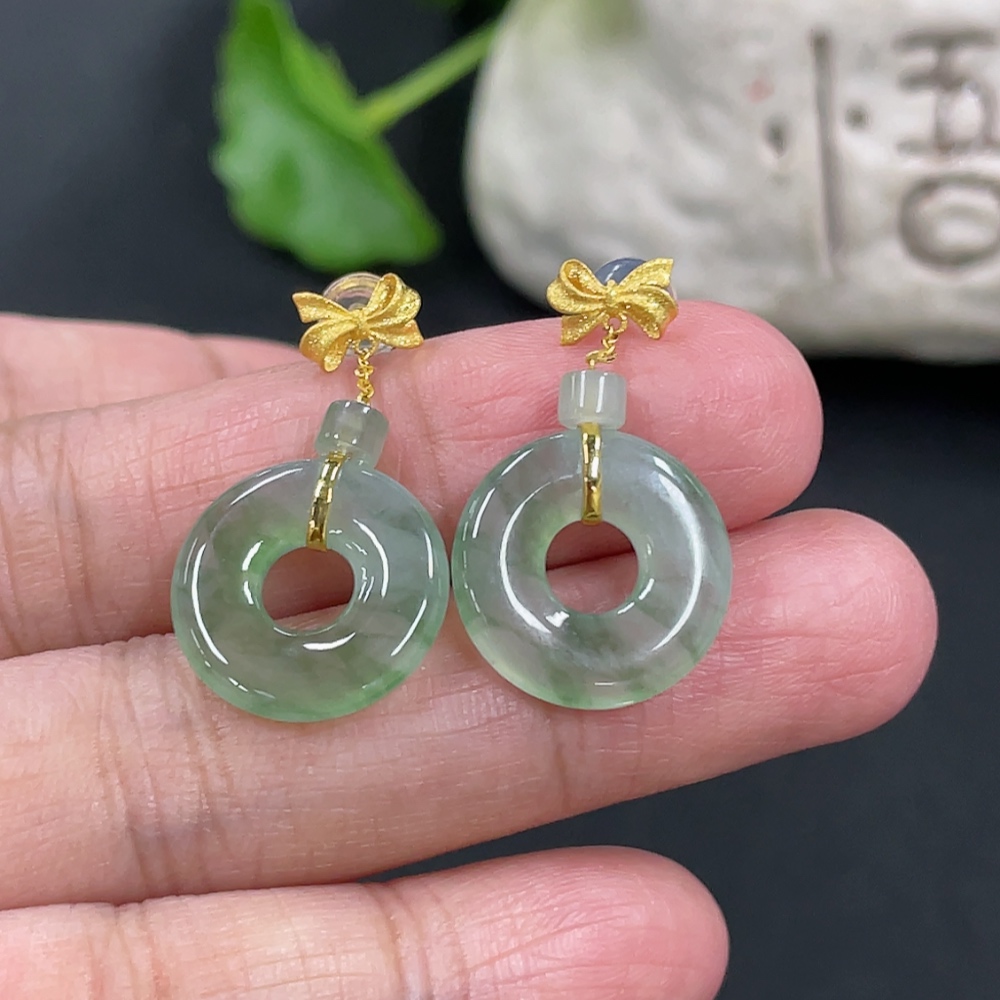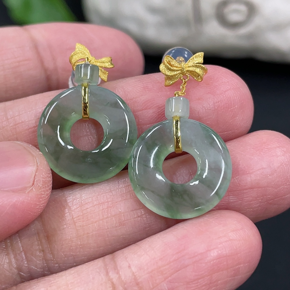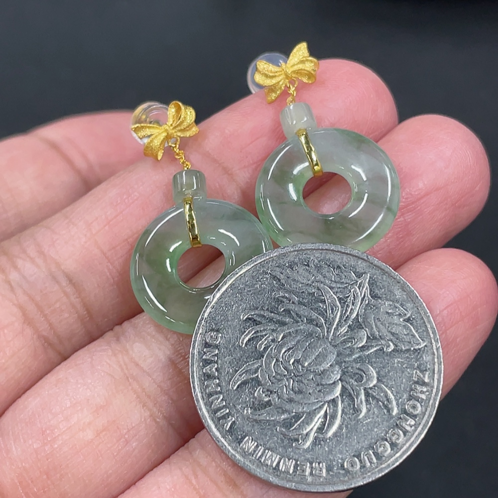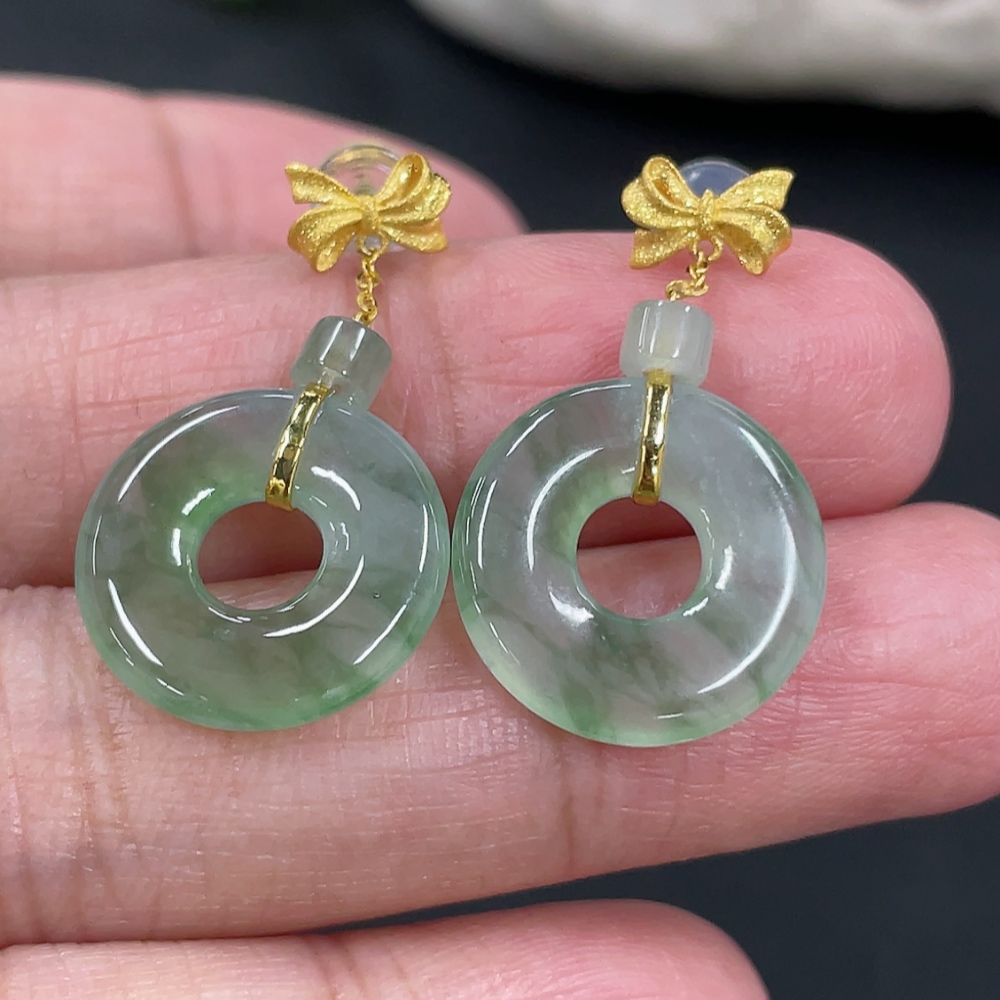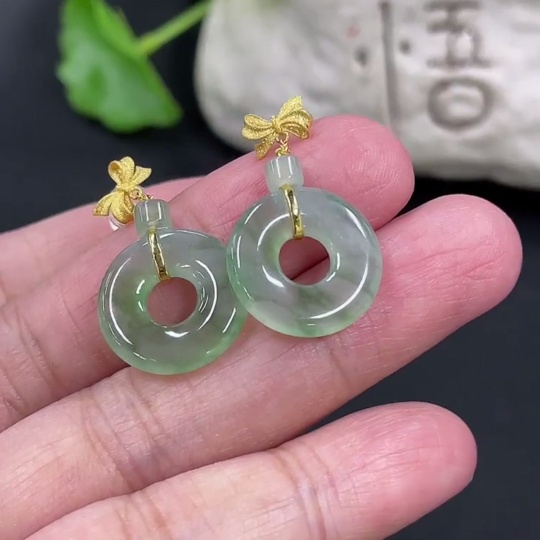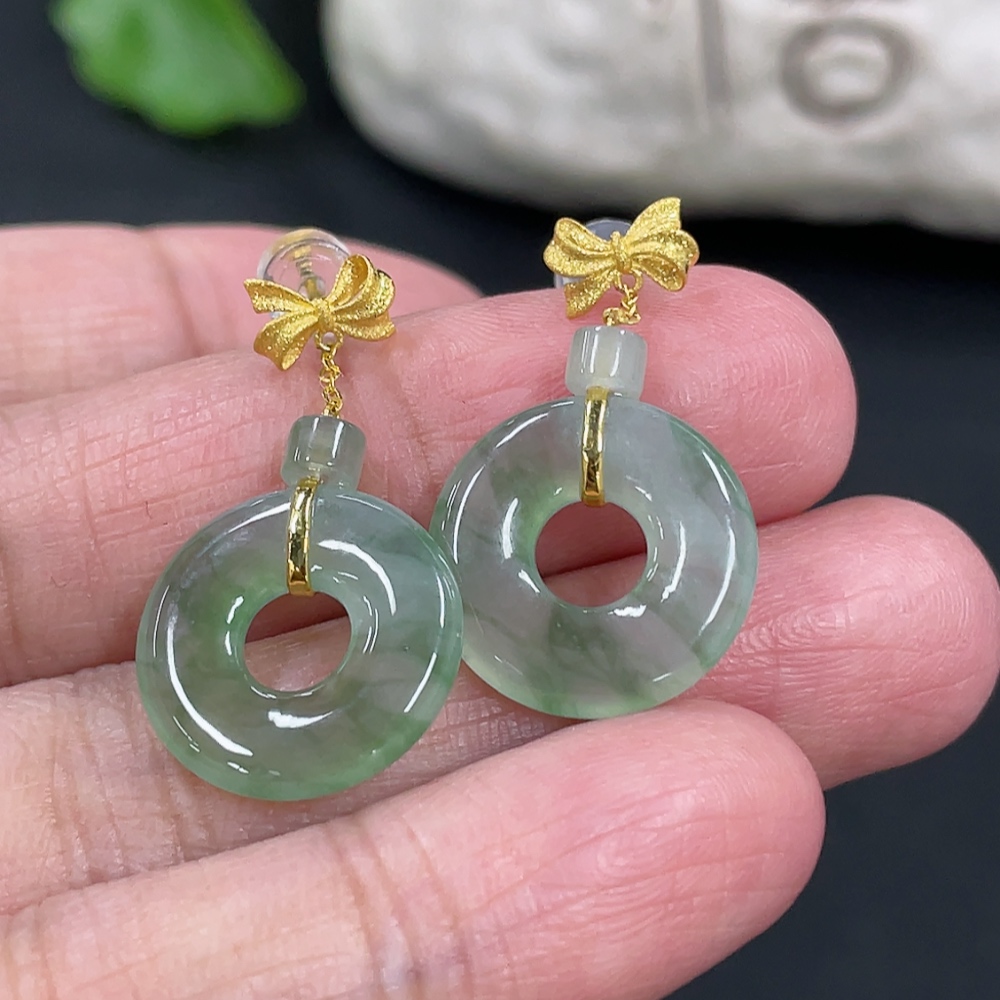 Jadeite Donut Stud Earrings Pair 18k Gold Setting Approximately 3.2g Without Ear Backs