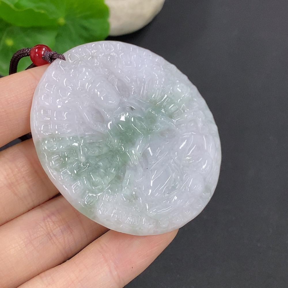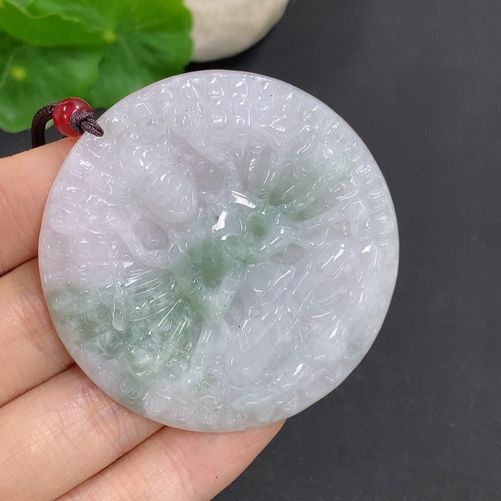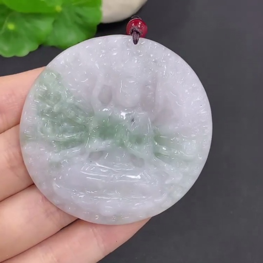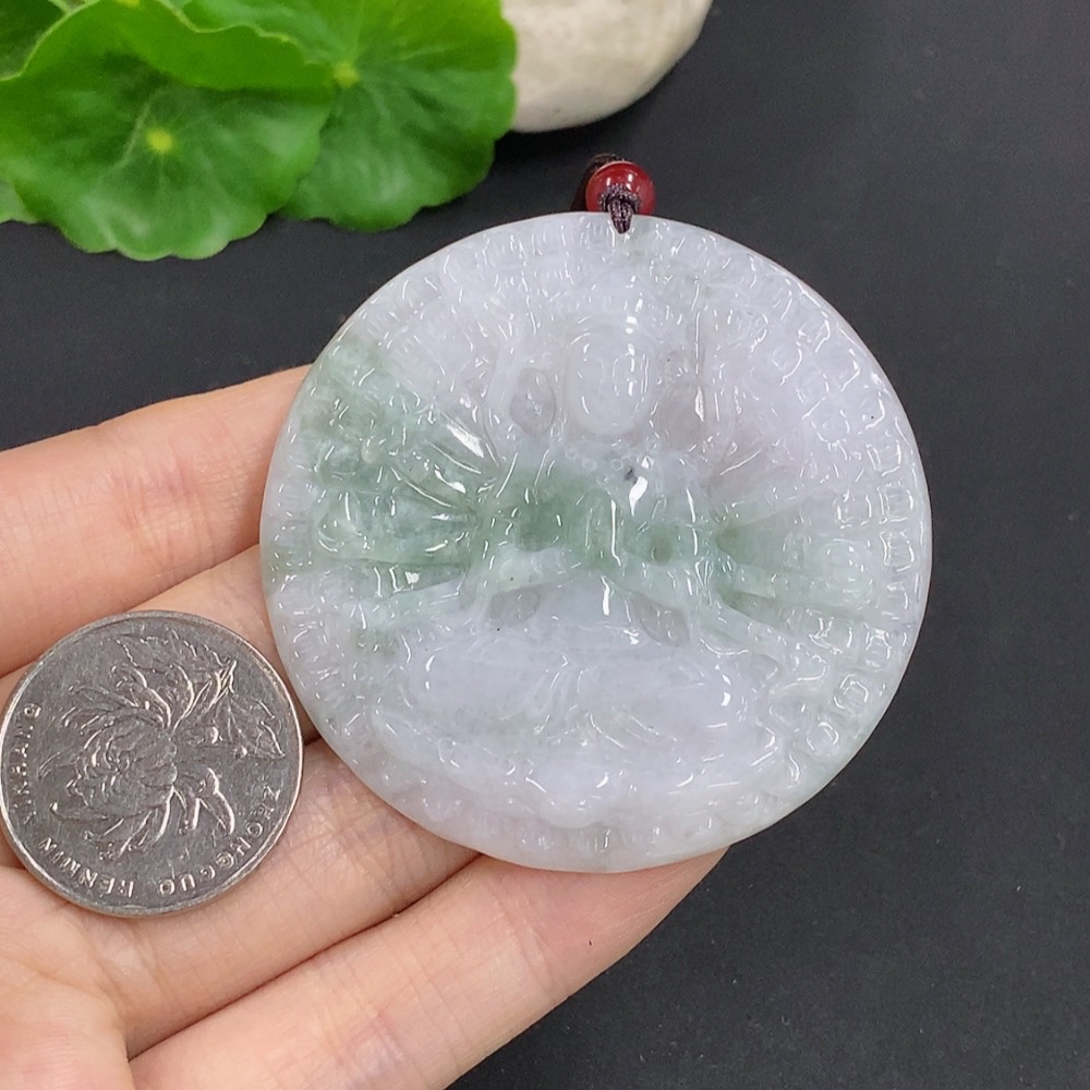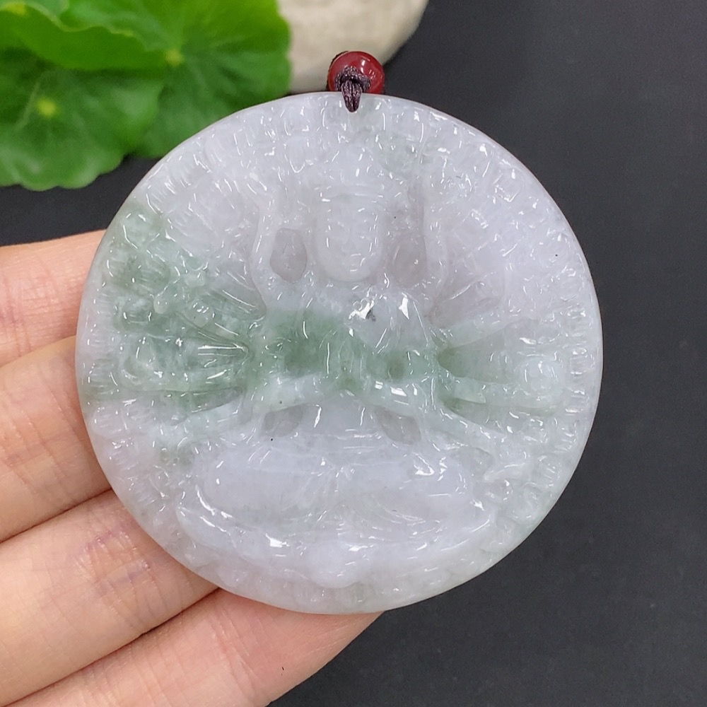 Jadeite Thousand-Handed Guanyin Pendant, Total Weight Including Rope Approximately 34.1g