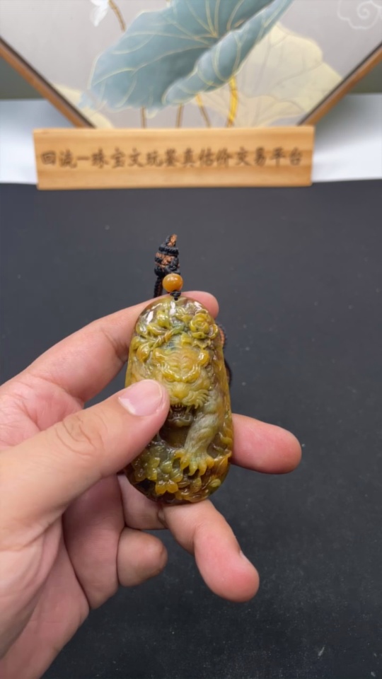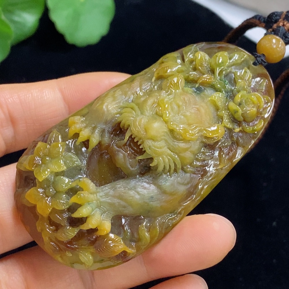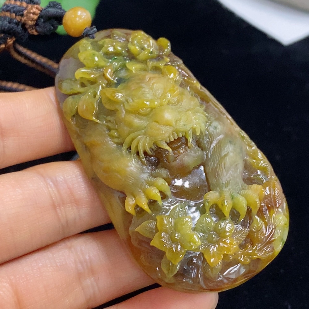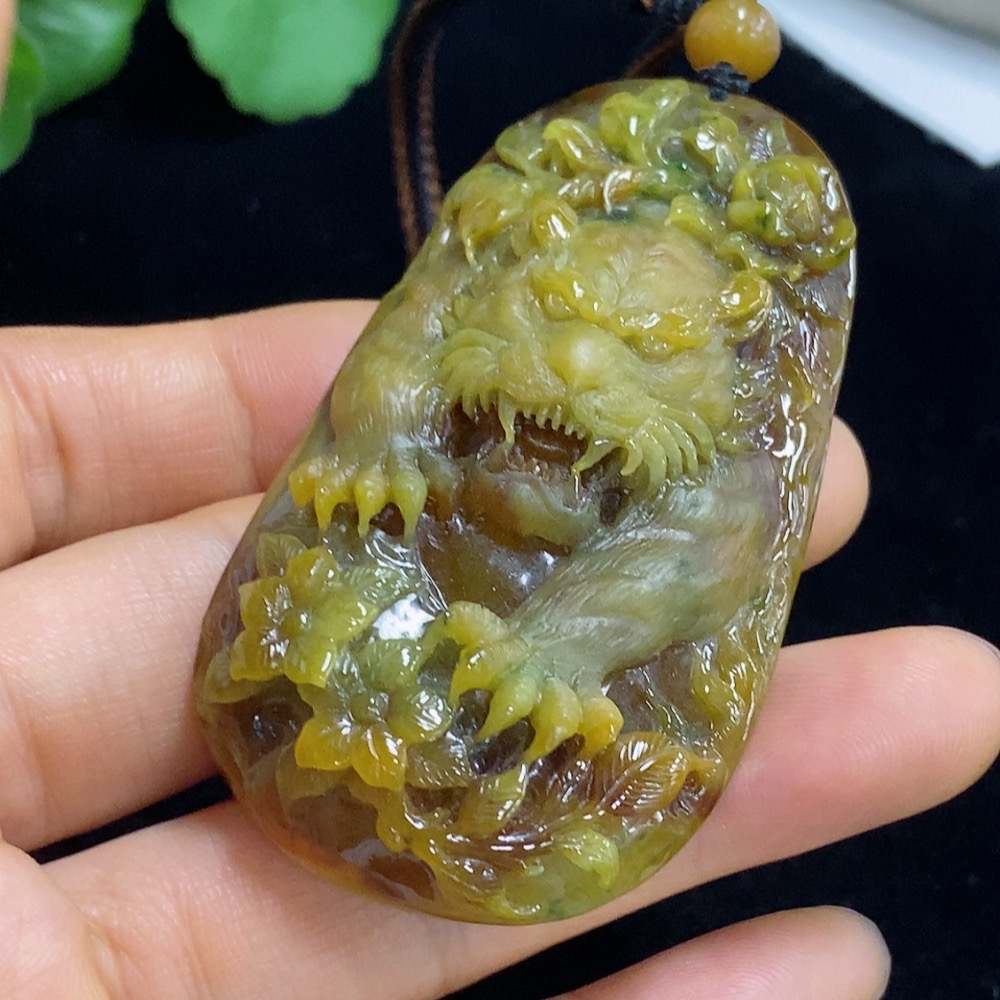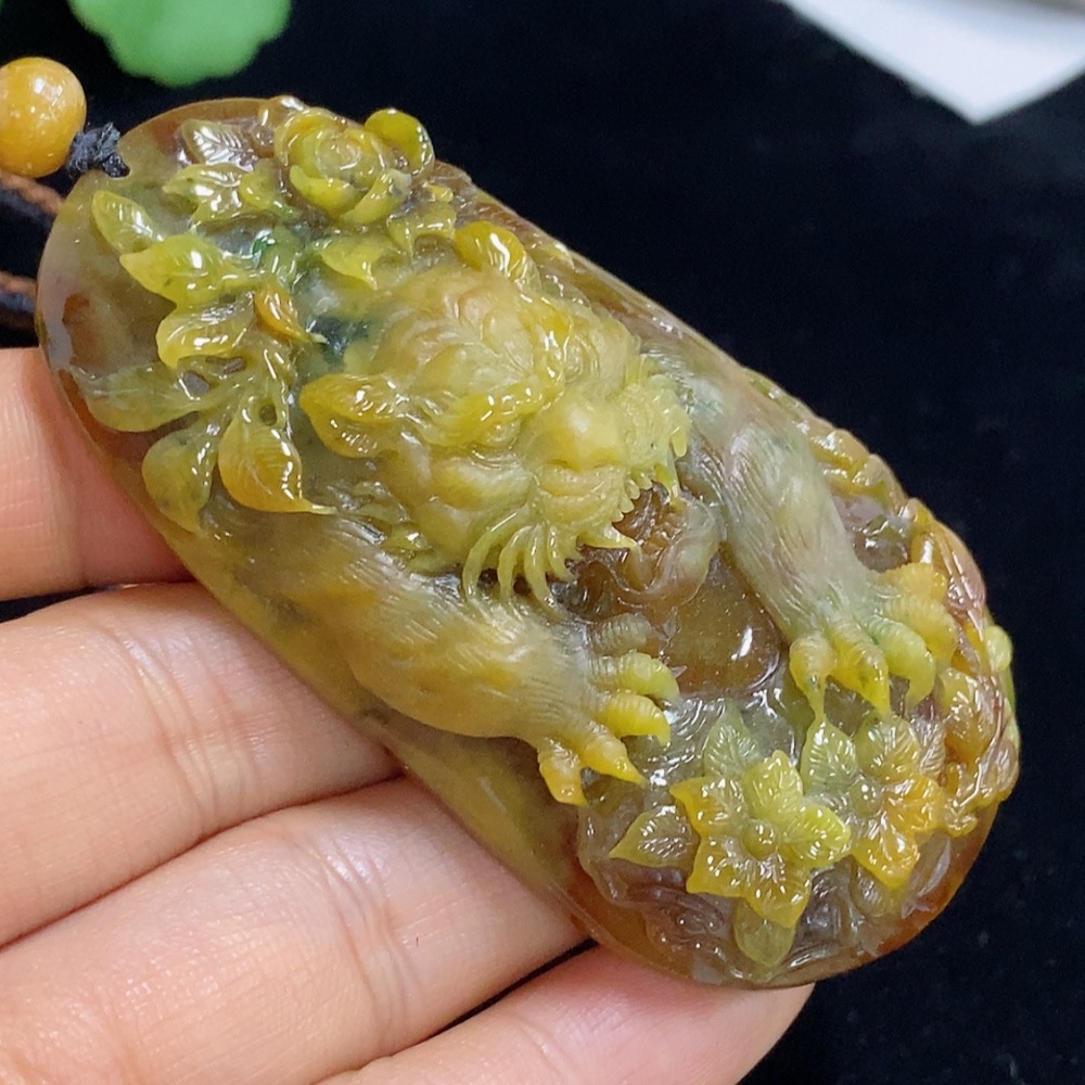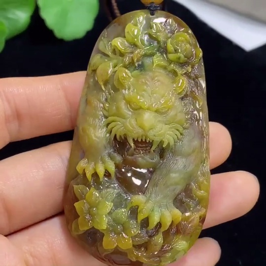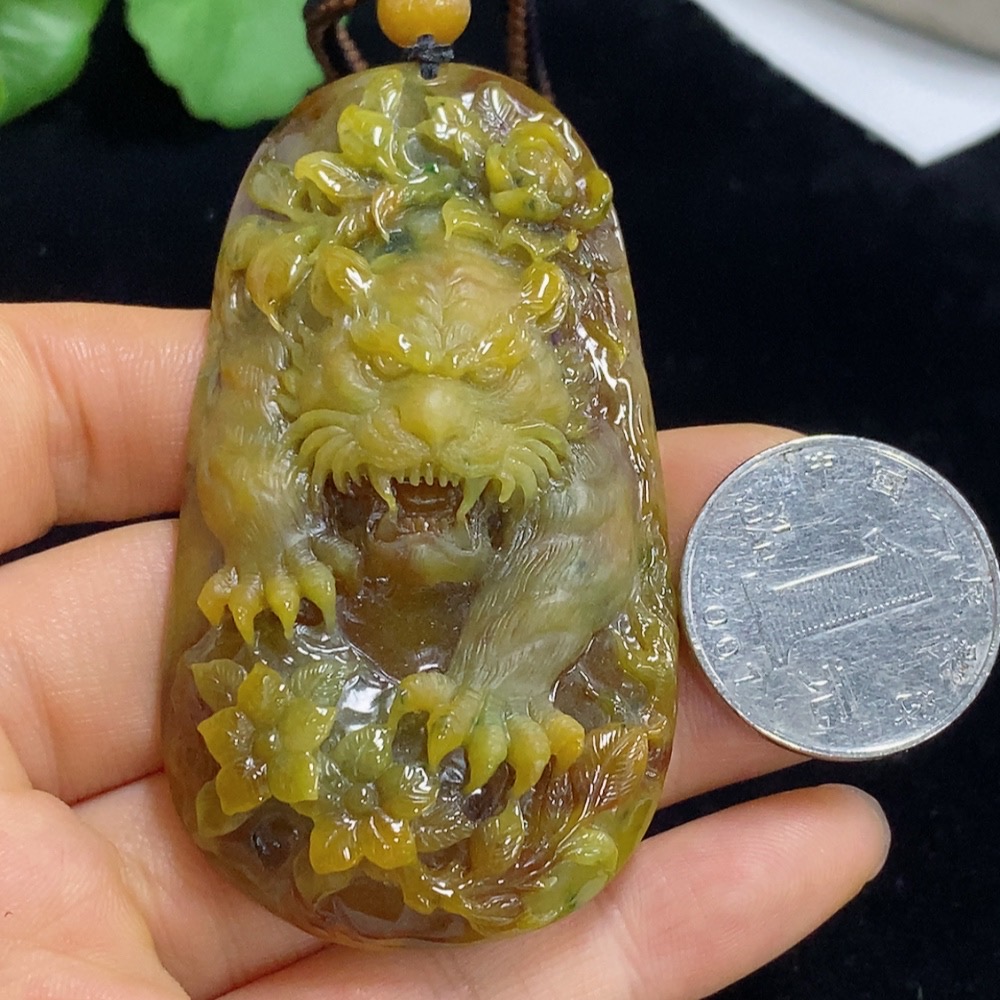Jadeite Tiger Pendant with a total weight of approximately 66.05 grams (including rope weight)