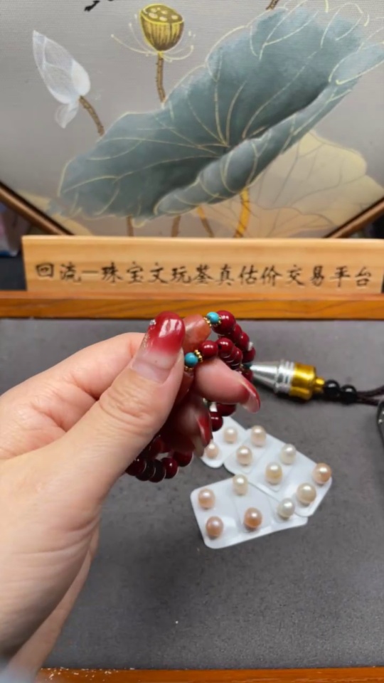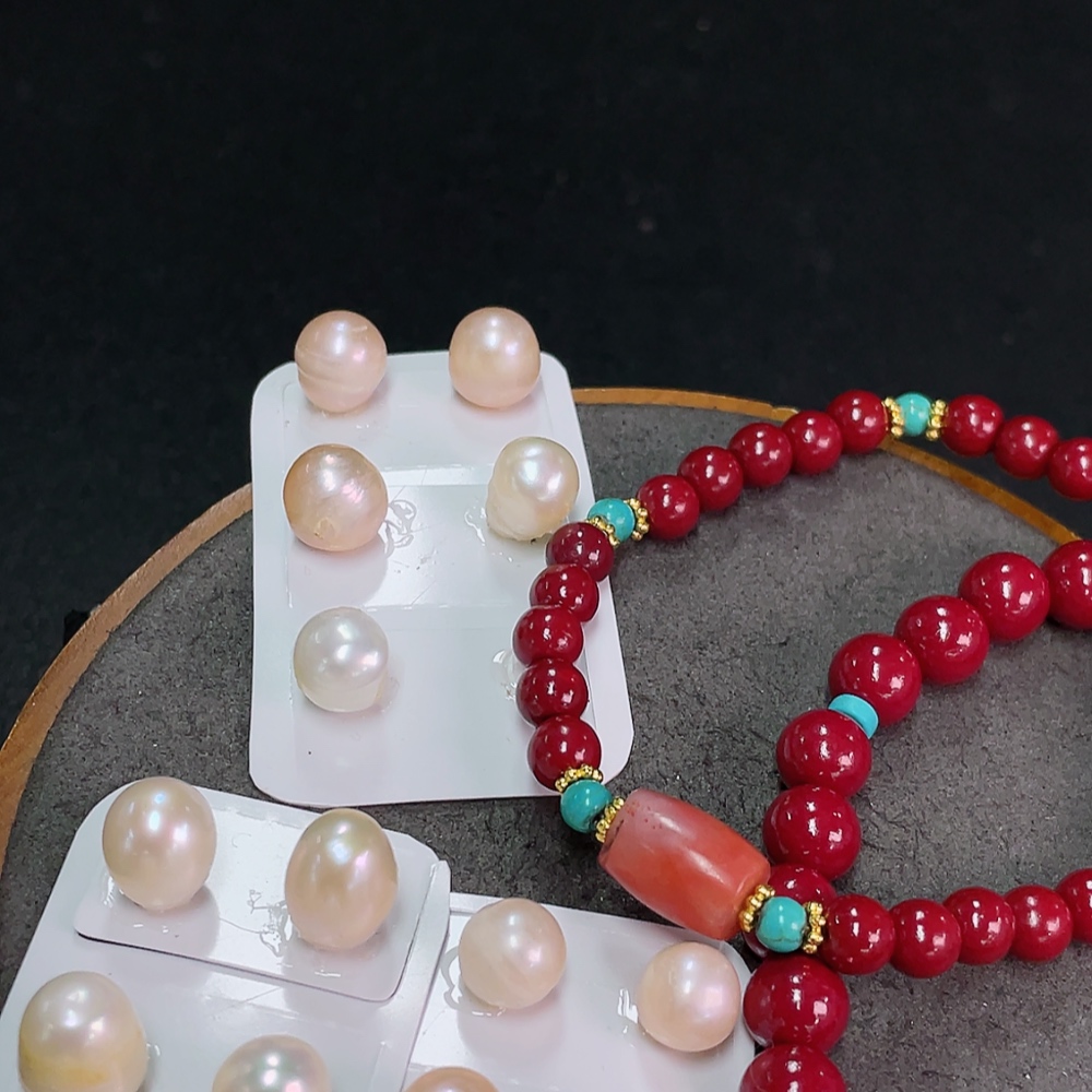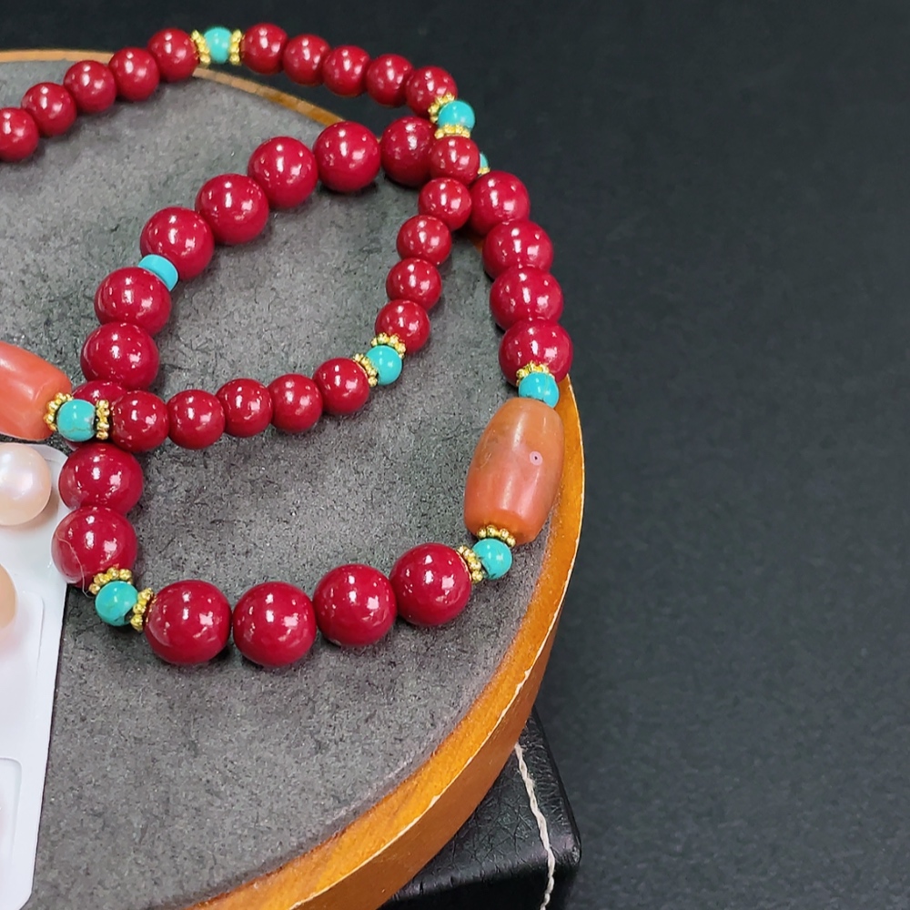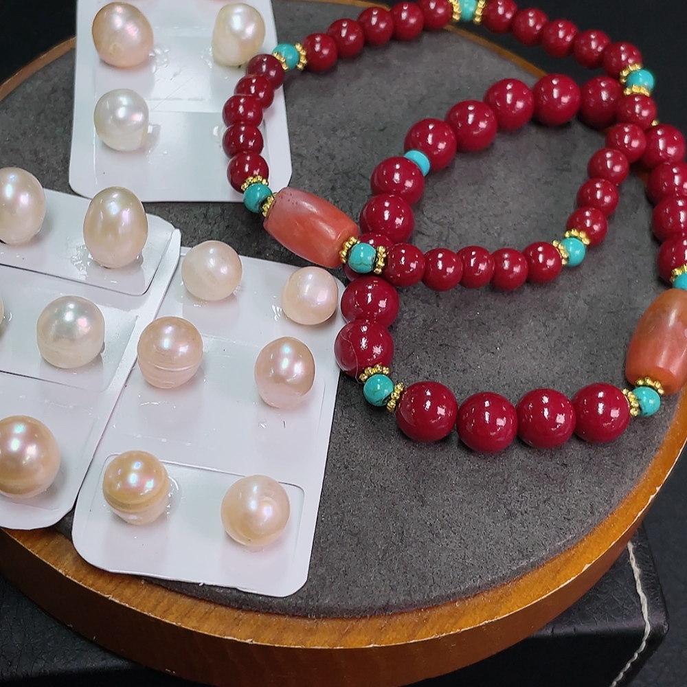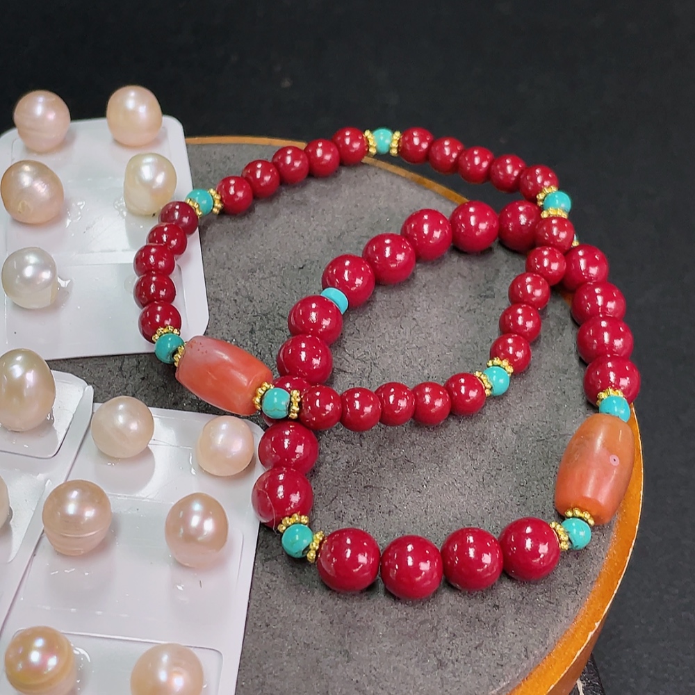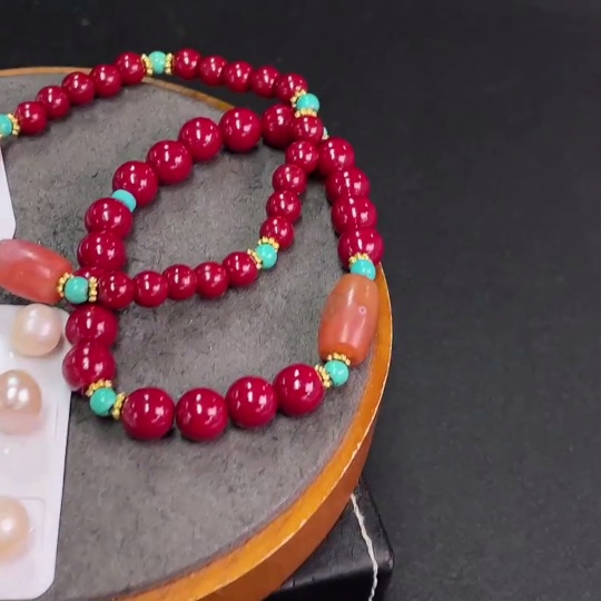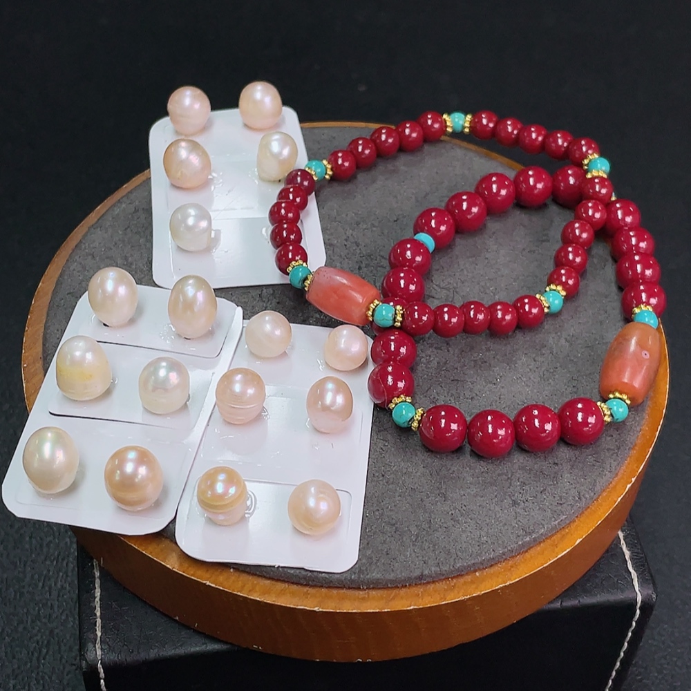 South Red Agate Bracelet with Visible Organic Matter, Paired with Non-Natural Chain + Loose Pearl Beads, Non-Gold, Total Weight Approx. 47.9g, Including Paper Tag, Sell as a Lot