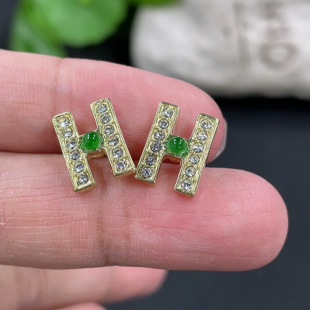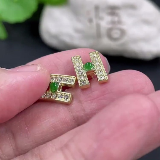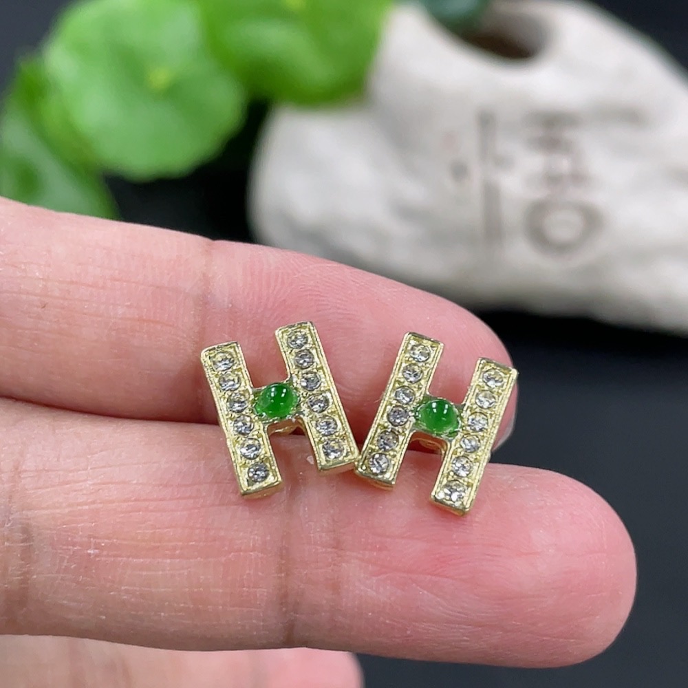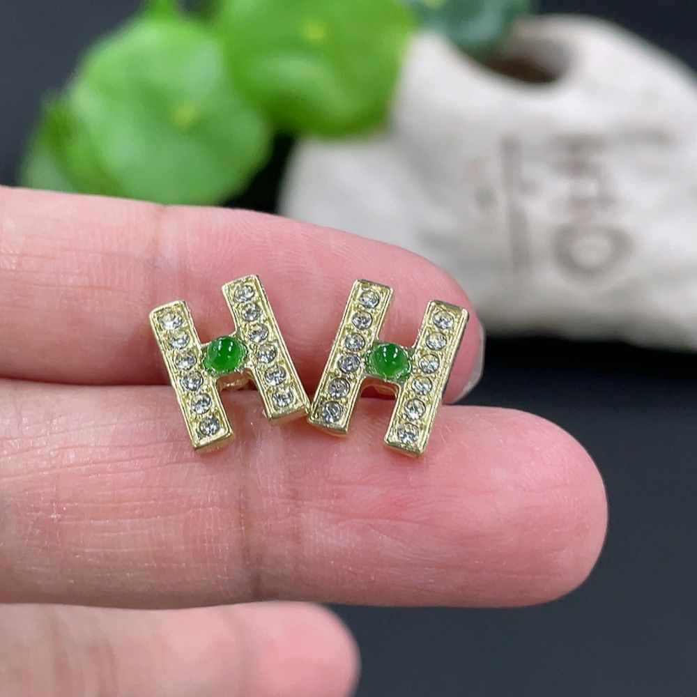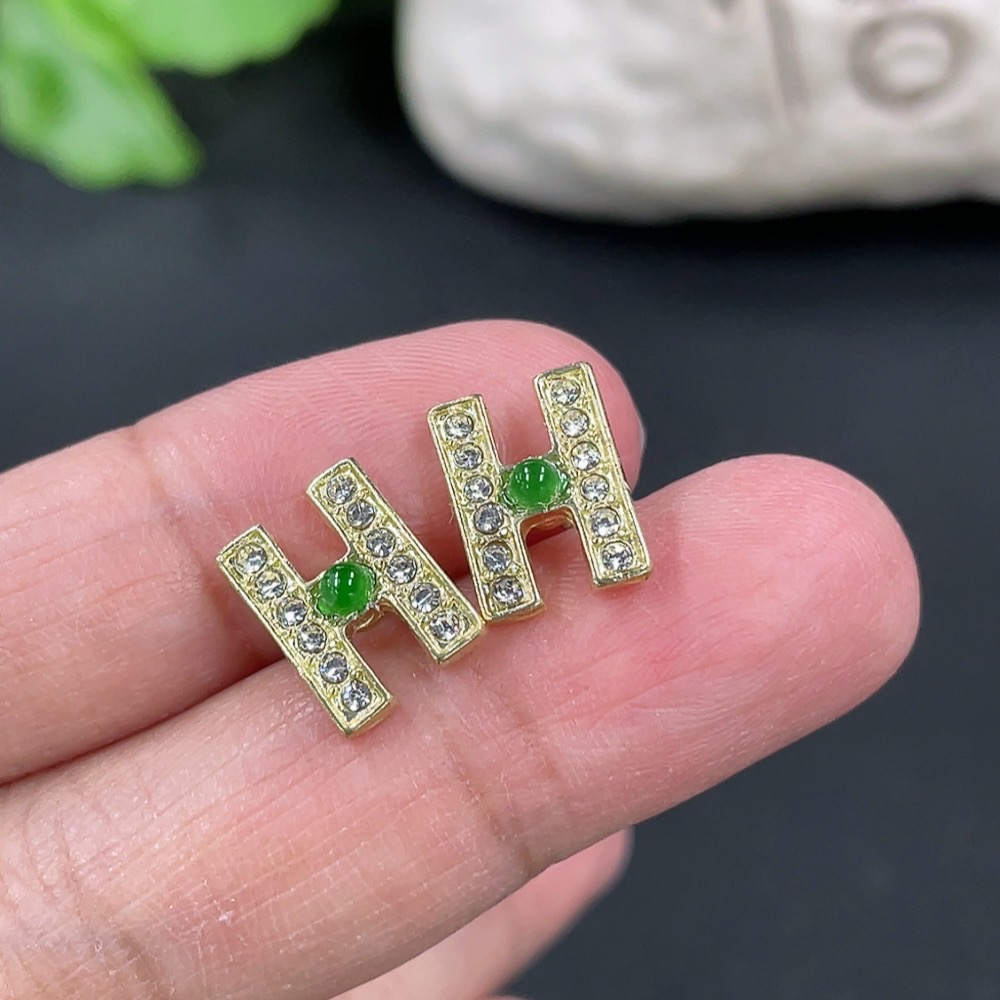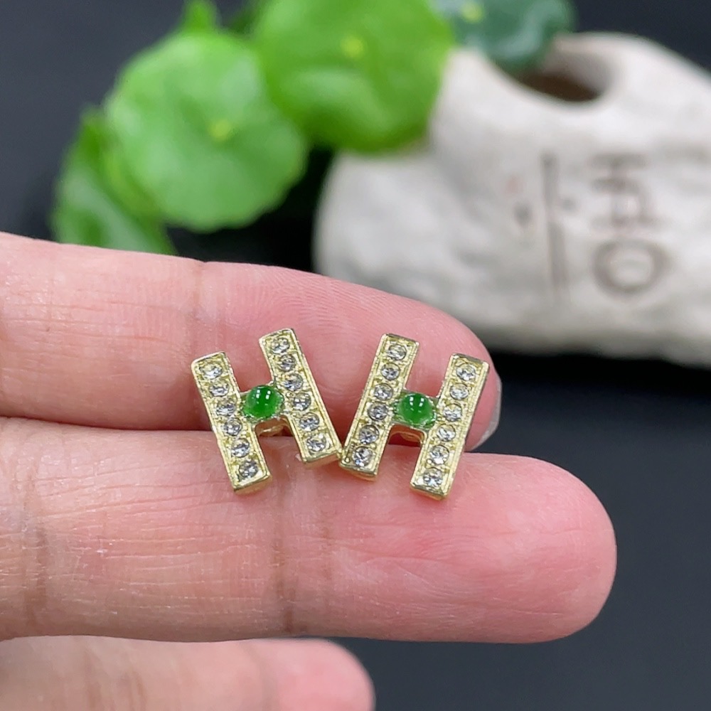 Jadeite Inlaid Earrings Non-Gold Total Weight Approx. 1.77g