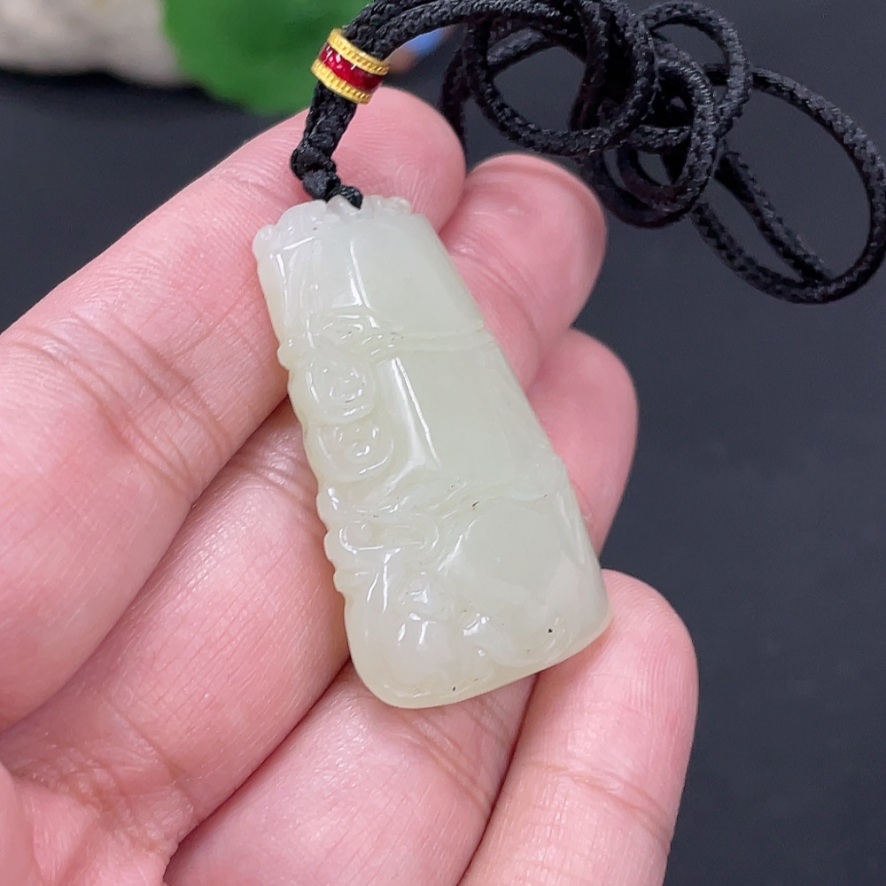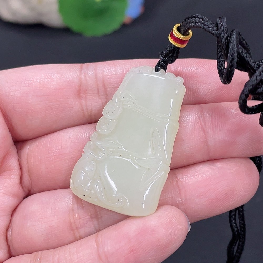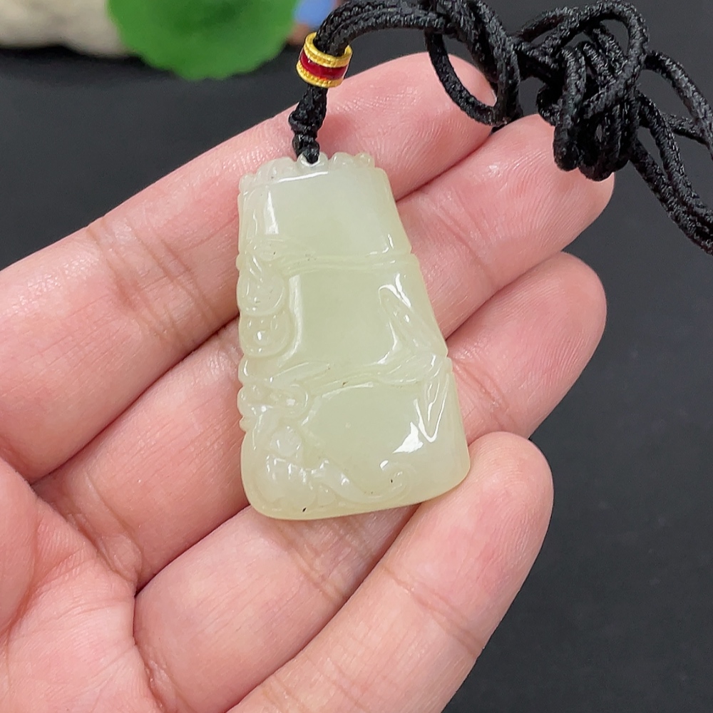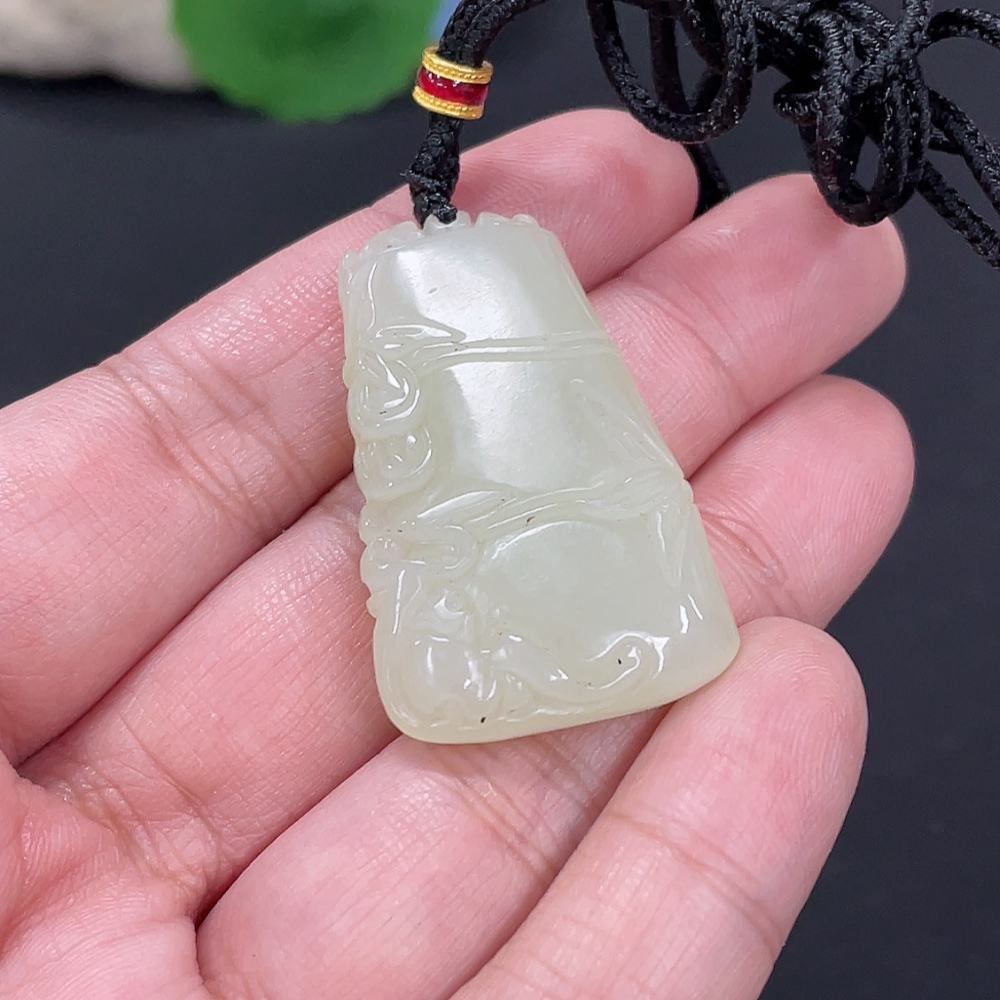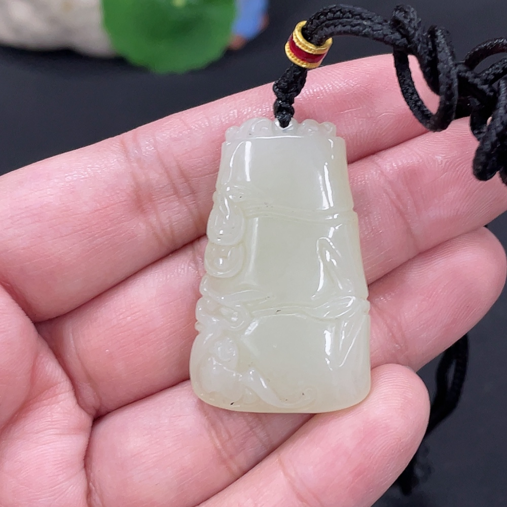 Hetian Jade Pendant Bamboo Announcing Peace