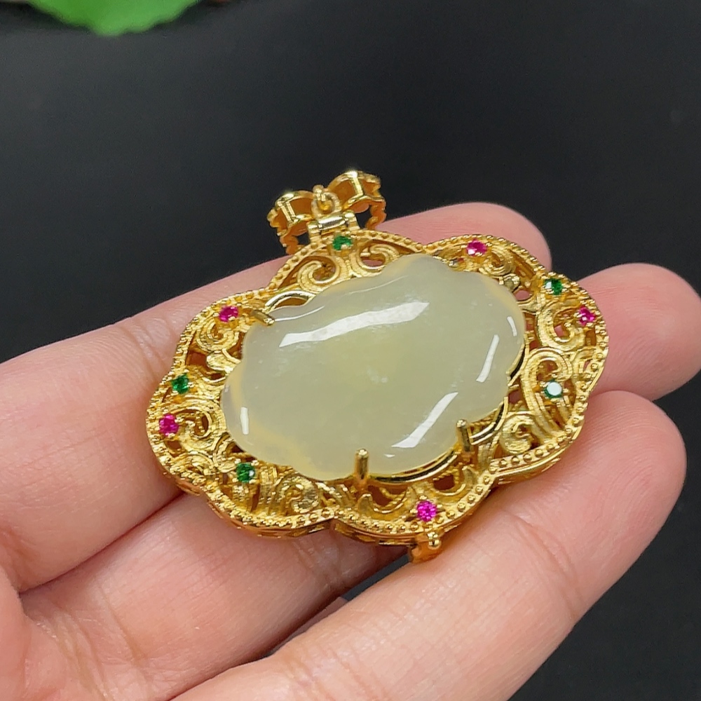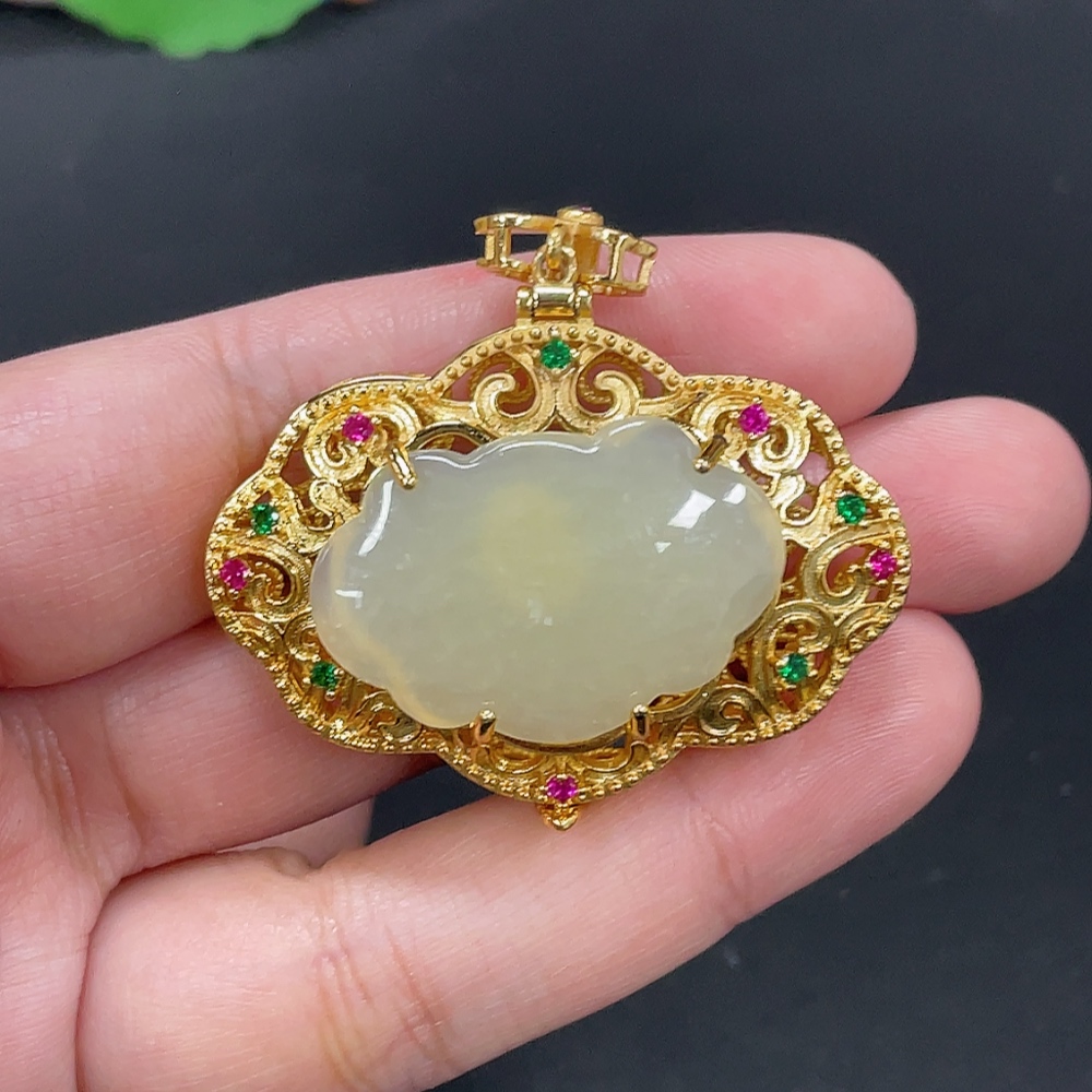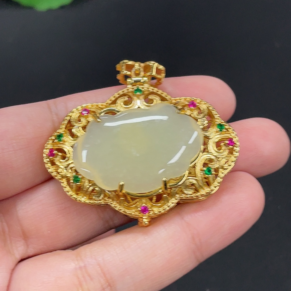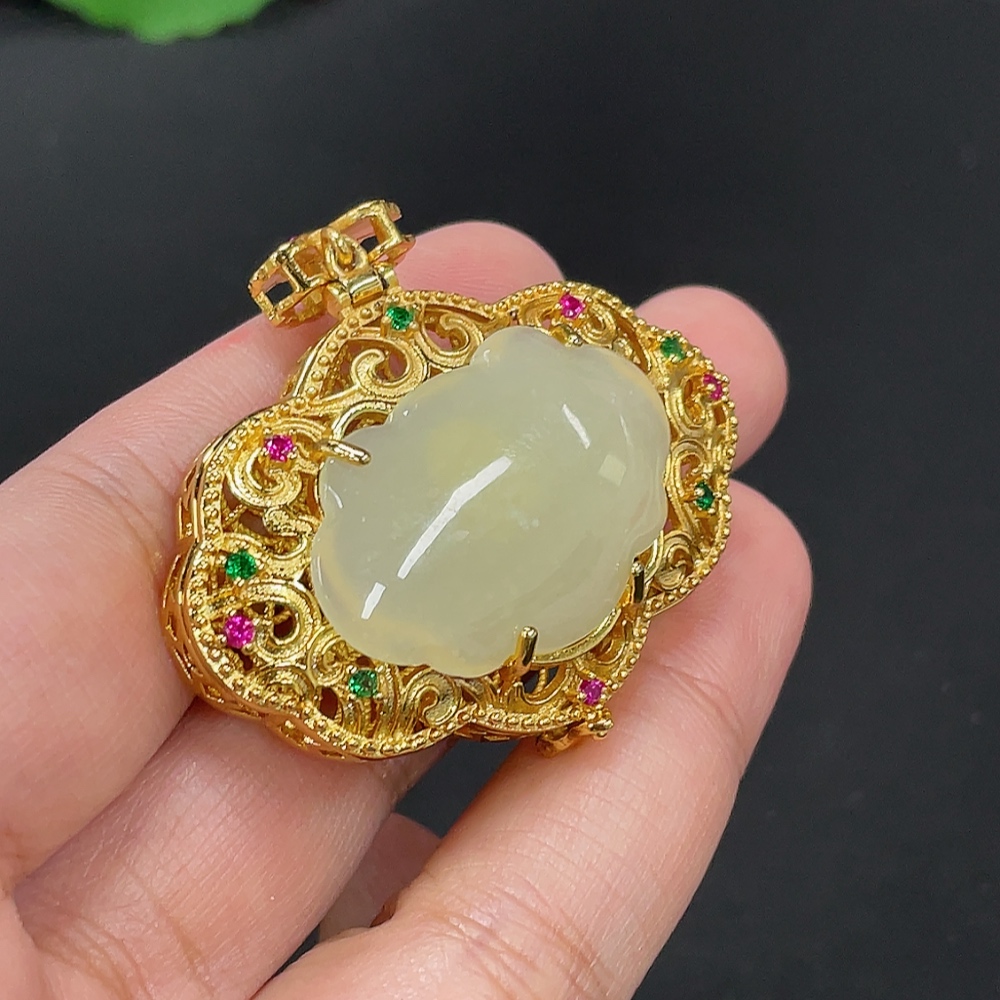 Hetian Jade Inlaid Pendant Total Weight Approx.14.5g Non-Gold