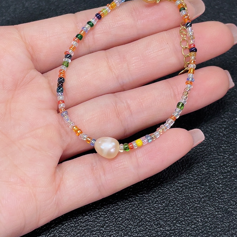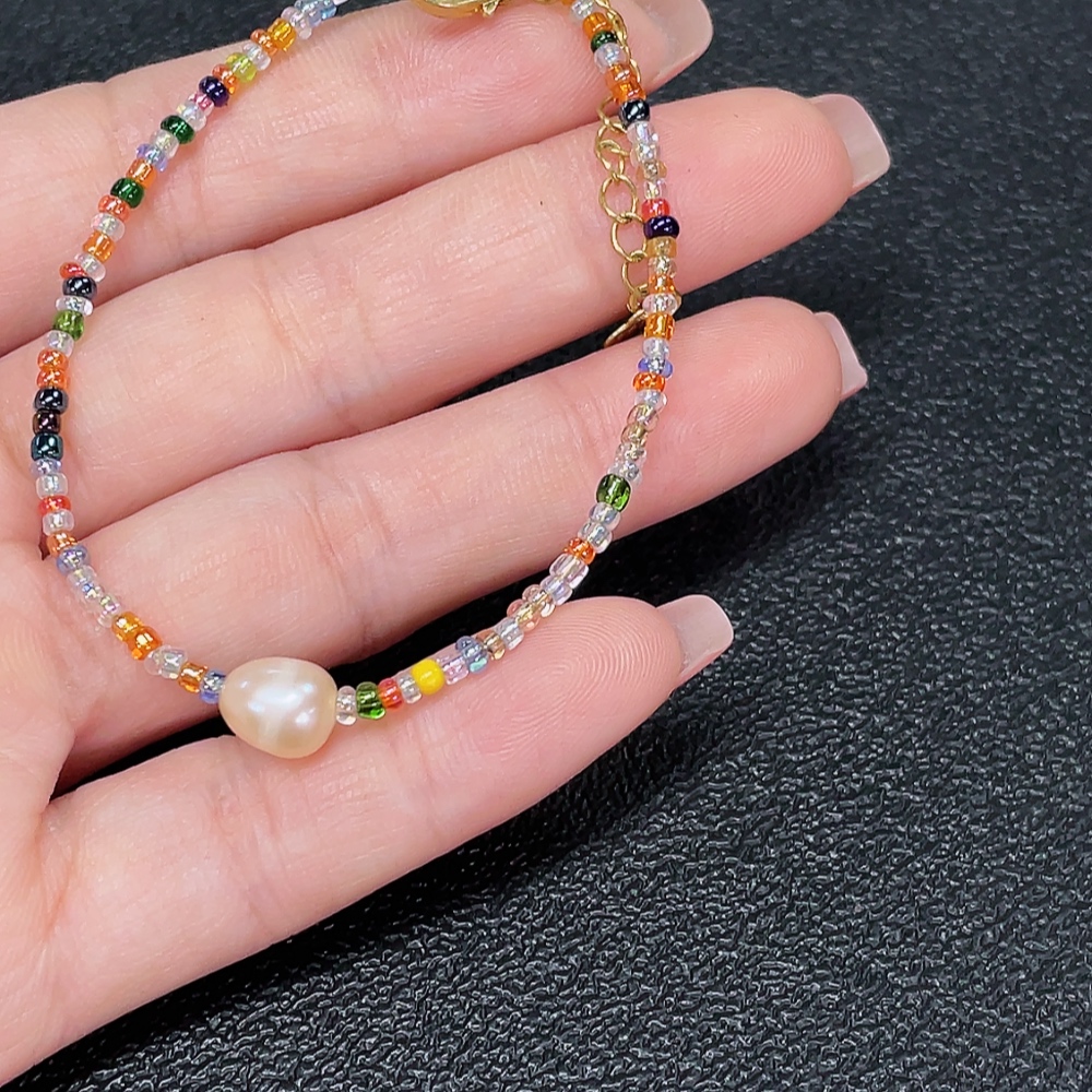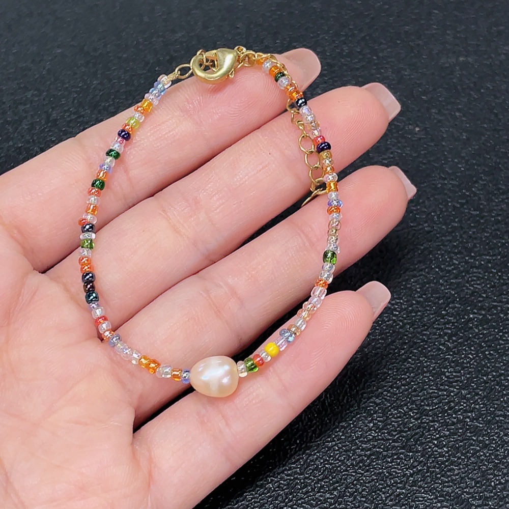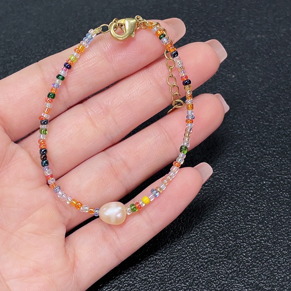 Pearl bracelet with non-natural and non-gold accent stones, total weight approx. 2.43g, stone size approx. 6.7mm (mixed stones)