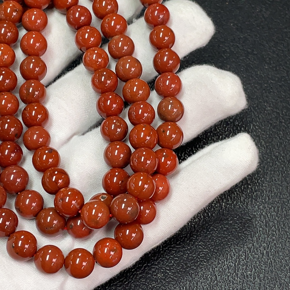 Red Agate Bead Strand with Visible Organic Matter, Total Weight Approx. 70.02g, Size About 8.8mm